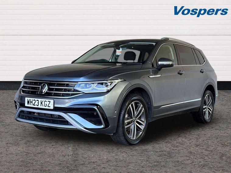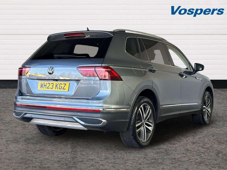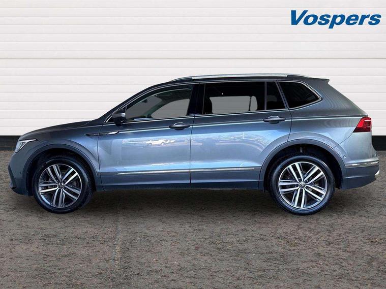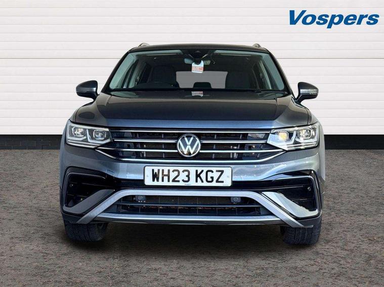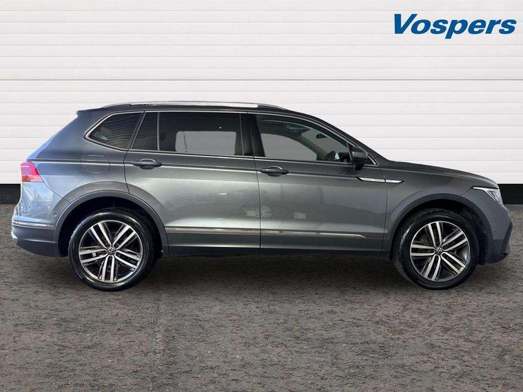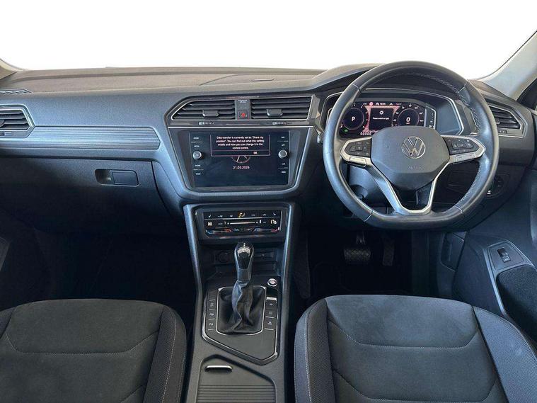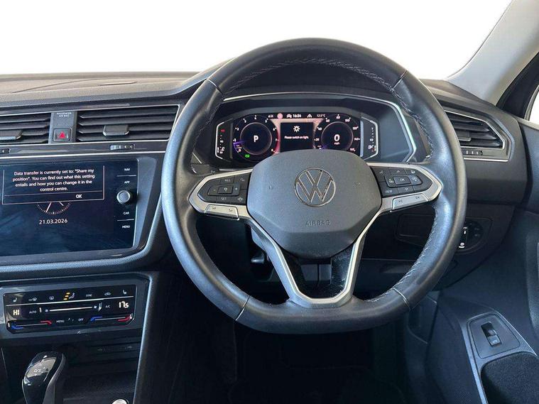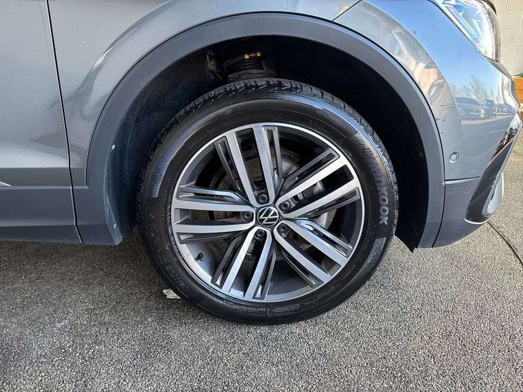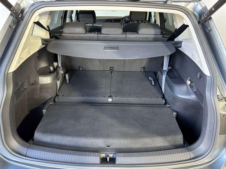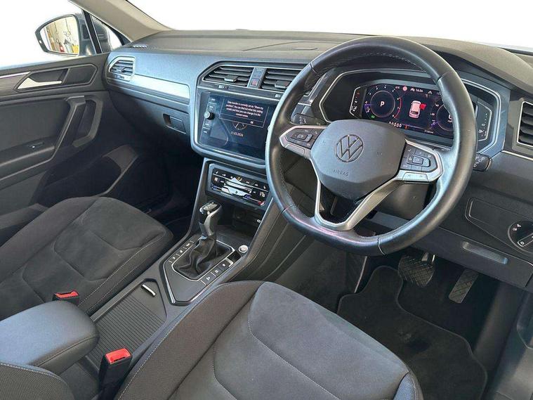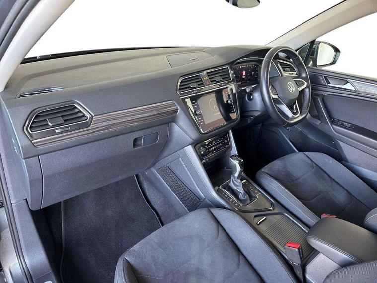 Adaptive cruise control, App-Connect, Digital cockpit pro, Driver alert system, Driver profile selection, Dynamic road sign display, eCall emergency call service, Electric boot lid, Lane change system side assist and rear traffic alert, Lane keeping system Lane Assist, Mobile phone interface comfort with inductive charging feature, Multifunction front facing camera, Power assisted speed sensitive steering, Speedo and rev counter, electronic odometer, trip, service interval display and exterior temperature gauge, Front wheel drive, Start-stop system with battery regeneration (recuperation - energy recovery during braking), 2 USB-C ports in the front, 1 USB-C charging socket on the center console in the rear, 8 Speakers, DAB Digital radio, Diversity antenna for FM reception, Auto dimming interior rear view mirror, Automatic headlight control system, Body coloured comfort bumpers, Chrome mouldings on side window, Coming/leaving home lighting function, Exterior badge deletion, Exterior mirror housings painted in silver, Heated windscreen washer jets, IQ light adv HBC, dyn light assist LED matrix headlamps, DH range, dark red LED rear combo light, poor weather, CL, LED headlamp with LED DRL and DCL - PXC, Privacy glass, Rain sensor, Rear fog light, Rear side wing doors, Rear wiper, Silver roof rails, Third brake light, Tilting and sliding panoramic sunroof, 12-volt outlet in centre console rear and luggage compartment, 12V socket in centre console, 3 head restraints in rear, 3 individual folding 2nd row seats, 3rd row 2 individual seats, Air Care Climatronic 3 zone automatic climate control with enhanced air filter and controls in the rear, Door and side trim panel, Drawers under front seats, Driver and front passenger seat height adjustment, Foldable front passenger seat backrest, Front + rear carpet mats, Front centre armrest, Front footwell illumination, Heated front seats, Illuminated scuff plates, ISOFIX anchorage points for mounting 2 child seats on rear seats and i-Size child seats, Leather gearshift handle, Leather-wrapped heated multi-function steering wheel with paddle shift, LED interior light with switch off delay/dimmer and 2 front/rear LED reading lights, Sun visors with illuminated vanity mirrors, Ambience pack - Tiguan Allspace, Driver assistance package - Tiguan Allspace, Easy open and close pack with safelock - Tiguan Allspace, 3 point seat belt for centre rear seat, 3 rear three point seatbelts, ABS+EBD+Brake assist, Driver and front passenger safety-optimised head restraints, Driver's and front passenger's airbag with front passenger's airbag deactivation switch, Electronic parking brake, Electronic Stability Control (ESC) inc EDL (Electronic Differential Lock) and ASR (Traction Control), Height adjustable front 3 point seatbelts + pretensioners, Manual rear child locks, Pedestrian monitoring, PreCrash preventive occupant protection Front and rear, Rear disc brakes, Side airbag in front and rear with curtain airbag, Two tone horn, Warning buzzer for seatbelts if unfastened, Anti theft alarm system with interior monitoring, backup horn and towing protection, Anti-theft wheel bolts, Electronic steering lock, Remote central locking with 2 remote folding keys, Chequered flag tinanium decorative inserts,