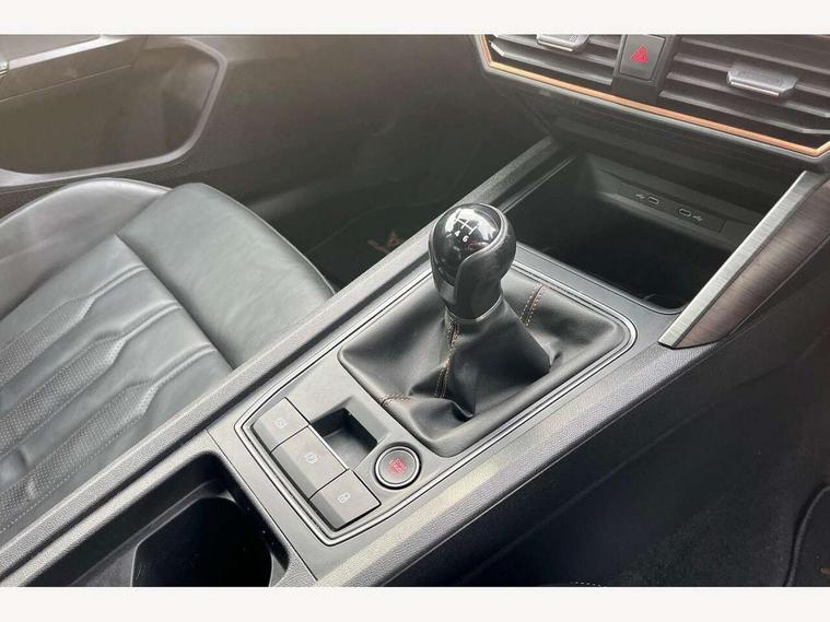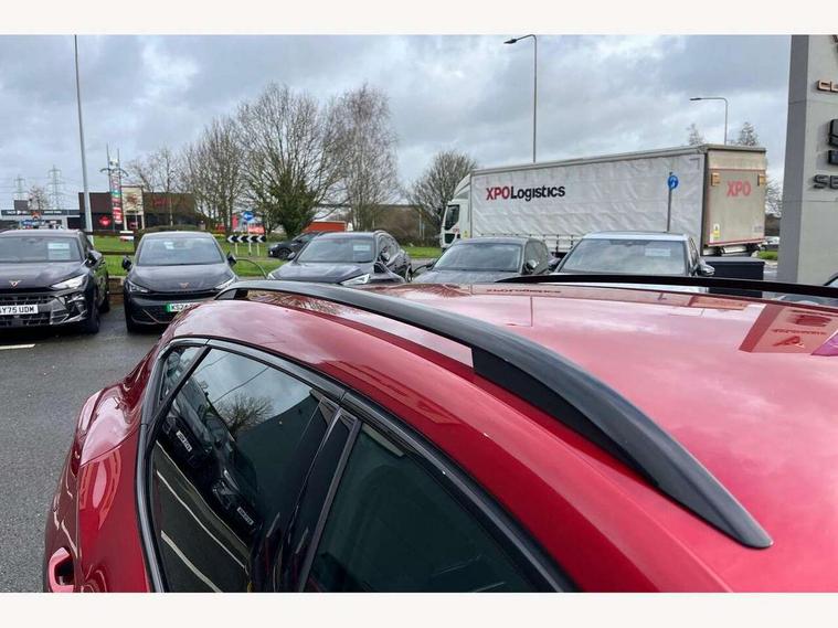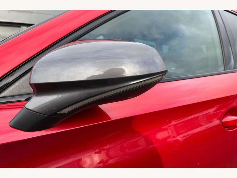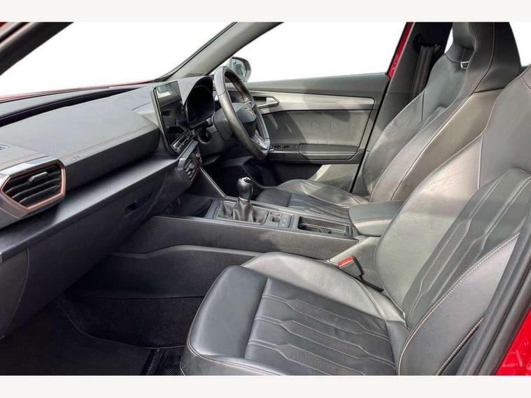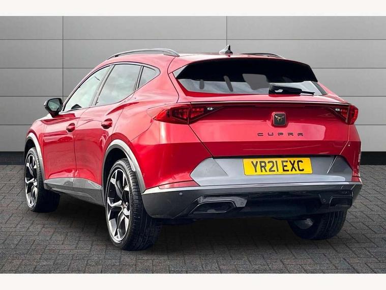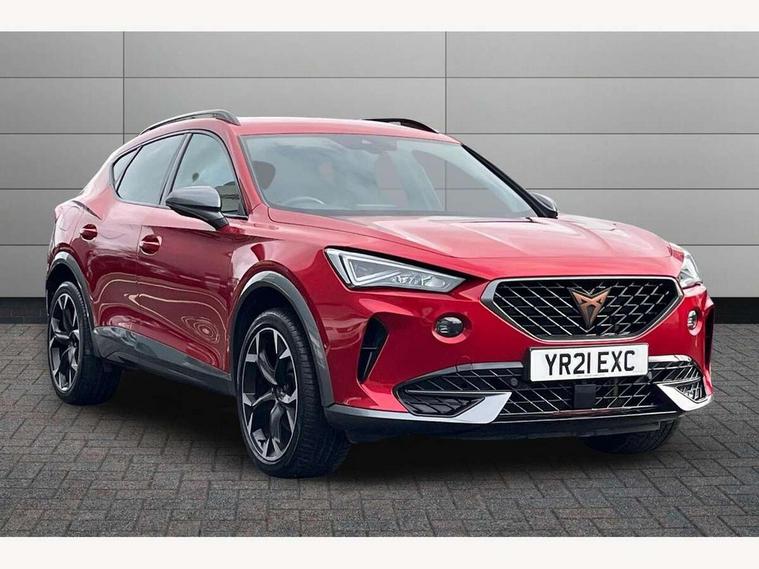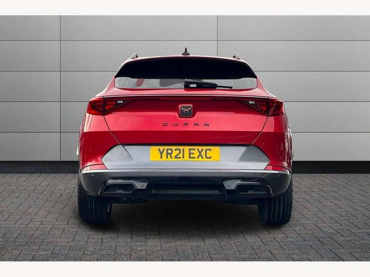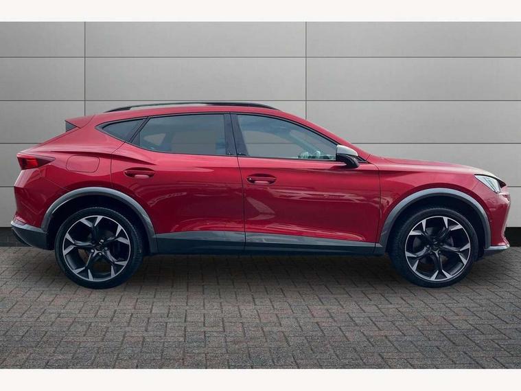 Digital cockpit and configurable dashboard, Driver alert system, Driving profile selection, Forward collision warning with automatic braking, Lane assist, Park assist (inc front/rear parking sensors), PAS, Predictive adaptive cruise control with speed limiter, Rear view camera, RPM, trip computer, outside temp gauge, instrument light brightness, low fuel warning light, lights on reminder, gearshift indicator, Service interval indicator, Start/stop system with regenerative braking, Wireless apple carplay, Wireless phone charger, Electronic locking differential and dynamic traction support, Standard suspension, 2 front and 2 rear USB type C sockets, Auxiliary input socket, DAB radio, Auto dimming rear view mirror, Body colour door handles, Body coloured bumpers, Dark grey wing mirror, Daytime running light with automatic headlight control and coming home feature, Dynamic headlight range control, Electric front/rear windows, Electrically adjustable, heated and folding door mirrors, Front fog lamps with cornering function, Gloss black roof rails and window surrounds, LED Headlights, LED Taillights with dynamic indicator, Rain sensing wipers, Rear diffuser with black simulated exhaust pipes, Rear wash/wipe, Tinted rear windows, Welcome lights, 12v power supply in centre console, 12v socket in loadspace, 2 front and 2 rear reading lights, 230V socket, 60/40 split rear bench seat with armrest and mechanical seat release, Black headlining, Dust/pollen filter, Front and rear head restraints, Front centre armrest, Heated steering wheel, Height/reach adjust steering wheel, Illuminated interior front door sills, Illuminated sunvisor with mirror, Interior ambient lighting, Isofix, Leather multi function steering wheel, Luggage tie-down hooks, Three zone climate control, Three zone climate control with control panel in rear, Variable luggage/load compartment floor, Wraparound lighting, Genuine Nappa leather Pack - Cupra, Navigation system pack - Formentor, Safety and driving pack (M) - Formentor, 3 point seatbelts on all rear seats, ABS, Brake control system - ESC and brake booster, Child proof door locks, Driver and front passenger airbags with front passenger airbag de-activation, Electronic parking brake, Front and rear disc brakes, Front side curtain airbags, Hill hold control, Seat belt reminder for front and rear seats, Tyre pressure monitoring system, Anti theft alarm system, Keyless entry and start system (KESSY), Locking wheel bolts, Copper and aluminium interior detailing, 19" Exclusive machined sport matt black and silver alloy wheels with 94W tyres,