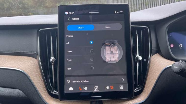 11.2" centre console touch screen, 12.3" Progressive Driver Display, 360 degree surround view parking camera with side proximity sensors, Adaptive cruise control, Adjustable steering wheel force, Android auto (Wired), Apple carplay (wired), Bluetooth handsfree system, Driver alert control with lane keeping aid, Emergency services call system, Front and rear park assist, Google Automotive Services, Intelligent speed assistance, Oncoming Lane Mitigation, PAS, Power operated tailgate with handsfree opening and closing, Service interval indicator, Speed limiter, Speed sensitive steering, Trip computer, Volvo cars services with app, Volvo on call with App, Wireless/Inductive Mobile Phone Charging, 8 speed automatic transmission with start/stop + manual change functions, Active four-C chassis + four corner adaptive damper with electronic rear air suspension, DAB Digital radio, Premium sound by Bowers and Wilkins, dirac live, dolby pro logic II surround sound, 14 speakers/1100W output and fresh air subwoofer, Steering wheel remote infotainment controls, Active bending headlights with adaptive shadow technology, Adaptive brake lights with high level LED brake lights, Auto dimming interior + exterior mirrors, Automatic headlight levelling system, Automatic LED Headlights + Active high beam incorporating daytime running lights, Dark tinted windows for rear side windows and cargo area, Electric adjustable/heated/auto power folding door mirrors, Electric front+rear windows, Front aluminium tread plates, Headlight cleaning system, High gloss black door mirrors and window surround, High gloss black front and rear bumper decoratives, High gloss black mesh front grille with high gloss black surround, Home safe and approach lighting, Integrated roof rails in high gloss black, LED front fog lights with static cornering light function, Power glass tilt and slide panoramic sunroof with sun curtain, Puddle lights, Rain sensor with automatic windscreen wiper activation, Rear side wing doors, Rear wiper, Roof antenna, Roof spoiler, Tinted windscreen, Visible VIN plate, 12V socket in front tunnel console and luggage compartment, 3 seat bench in 2nd row, 4 Zone electronic climate control, A-pillar parking ticket holder, Air purifier particulate matter (PM) 2.5 filter, B Pillar ventilation, Bright metal luggage scuff plate, Centre console cupholders and storage, Charcoal floor mats, Front and rear courtesy lights, Front and rear door pocket illumination, Front cupholder illumination, Front footwell illumination, Front reading lights, Front seat cushion extensions, Glovebox compartment with illumination, Head restraints for all seats, Heated front seats, Heated steering wheel, Height/reach adjustable steering column, Illuminated luggage compartment, Illuminated vanity mirrors + ticket holder, Inner door release handle illumination, ISOFIX attachment on outer rear seats, Load cover, Load protection net, Multi directional lumbar support, Power driver seat with memory + exterior mirrors memory, Power folding rear headrests, Power passenger seat with memory, Rear armrest with cupholder, Rear footwell and front and rear side step illumination, Rear reading lights, Rear seat concealed storage, Single front passenger seat, Tailgate illumination and ambient door lighting, Underfloor stowage compartment, Versatile split folding rear seat - 60/40, Driver assist pack without Adaptive cruise control - XC60, 5 three point seatbelts, City safety with steering support with Pedestrian + cyclist + front collision warning with full auto brake and rear auto brake, Drivers knee airbag, Dual stage driver/passenger airbags, Electronic parking brake with auto hold, First aid kit, Front seats SIPS airbags, Hill descent control - Off-road drive mode, Hill start assist, IC (Inflatable Curtains) - Full Length, Passenger airbag cut-off device, Power child locks on rear doors, Run off Road Mitigation, Run off Road Protection, Seatbelt reminder and pretensioners, SIPS (Side Impact Protection System), Slippery road and hazard light alert, Stability and Traction Control with Spin control, Engine Drag Control and Corner Traction Control, Tyre pressure monitoring system, Vehicle deceleration control with Anti-lock Brake System, Electronic Brake Distribution and Emergency Brake Assist, Warning triangle, WHIPS whiplash protection system - front, Anti-theft alarm including immobiliser/volume sensor + level sensor, Key integrated remote control central locking + fuel flap with deadlocking system and auto open/close power windows, Keyless Drive (includes Keyless Entry and Keyless Start), Locking wheel nuts, Private locking for tailgate, Tailored instrument panel with contrast stitching, Summer tyres,