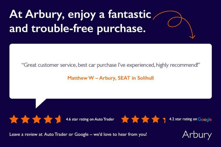 8" Digital cockpit, Colour multi-function on board computer display, Cruise control system with speed limiter, E-call, Outside temperature gauge, PAS, Self parking functionality (includes front and rear parking sensors), Start/stop system, Tailgate, Trip computer, Wireless full link smartphone integration, Wireless phone charger, Steering wheel mounted audio/phone controls, Black wheel arch surrounds, Body colour bumpers, Chrome front grille frame, Chrome roof rails, Chrome side window trim, Daytime running lights, Door mirrors with welcome light silhouette, Dynamic headlight range control with self adjusting whilst driving, Electric adjustable/heated/folding door mirrors, Front and rear electric windows, Full LED headlamps with lens and LED front fog lamps with cornering function, LED rear tail lights with dynamic indicators, Rear fog lights, Rear side wing doors, Rear wash/wipe, Simulated exhaust pipes, Third brake light, Variable front intermittent wipers, 12V socket in front, 3 seat bench in 2nd row, 60/40 split folding rear seat, Cloth upholstery with front comfort seats, Drawer under right front seat, Dual zone climate control, Front and rear head restraints, Front centre armrest, Front seat back storage pockets, Height adjustable driver and passenger seat with lumbar adjustment, ISOFIX points in outer rear seats with top tether anchorage points, Leather steering wheel and gear knob, Rear armrest and easy back seat release mechanism from boot, Single front passenger seat, Interior lighting pack - Ateca, Navigation system pack with DAB - Ateca, 3x3 point rear seatbelts, ABS, Traction control system (TCS), Electronic stability control (ESC) and Electronic differential lock system (XDS), Airbags - Driver and front passenger airbag with deactivation, front side, two curtain and driver's knee airbags, Electric parking brake with auto hold function, Front and rear seatbelt reminder, Front assist with autonomous emergency braking, Hill hold control, Manual rear child locks, Single tone horn, Tiredness recognition system, Traction control, Tyre pressure monitoring system, Alarm, Keyless entry, Locking wheel bolts, Remote central locking, Chrome interior detailing, 18" Performance machined alloy wheels 36/2 in nuclear grey,