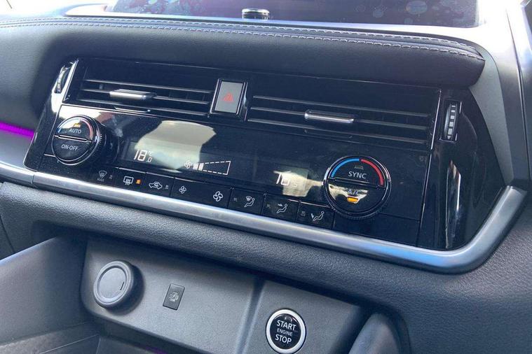 2 front USB-C ports, 2 rear USB-C ports, 360 degree Intelligent around view monitor with moving object detection, Blind spot intervention, Blind spot warning, Drive assist, Drive assist custom mode, Drive modes (sport, normal, eco), Driver drowsiness and attention warning, Electric speed sensitive power steering, Emergency and breakdown call, Emergency lane keep assist, Emergency Stop Signal (ESS), Engine start/stop button, Event data recorder, Front and rear parking sensors, Full Digital 12.3" TFT Digital Combimeter, Google virtual personal assistance, Idle stop/start system, In-car WIFI hotspot, Intelligent Cruise control (ICC), Intelligent forward collision warning, Intelligent speed assist, Lane departure warning system, Nissan connect 12.3 inch touchscreen infotainment system, Nissan connect navigation with google maps, Nissan connect services 2.0 (Google Automotive System), Outside temperature sensor, Rear cross traffic alert, Reversing detection, Wireless Apple CarPlay/Android Auto, Wireless charging pad, Limited slip differential, 6 speakers, AM/FM audio system with DAB, Bluetooth audio streaming, Auto rear wiper when reversing, Body colour mirror caps, Body coloured door handles, Bodyside mouldings, Chrome side window finisher, Electric auto folding door mirrors, Electrically adjustable and heated door mirrors with LED turn indicator, Follow me home headlights, High beam assist, Intelligent auto headlights, LED 3rd brake light, LED daytime running lights, LED Headlights, LED rear lights, One touch front and rear electric windows with remote opening and closing, One touch passenger window, Partially body coloured bumpers, Rear privacy glass, Rear roof spoiler, Rear side wing doors, Rear styling plate, Shark fin antenna, Splash free rain sensing wipers, Super UV and infrared cut glass, Three blink turn signal, 3 bench rear seats in 2nd row, 3 rear headrests, 60/40 split folding rear seat bench, Chrome interior door handles, Cloth upholstery, Dark headlining, Driver seat back pocket, Dual zone automatic climate control with pollen filter, Front door with bottle holders, Height adjustable front headrests, Leather shift knob, Luggage board system, Luggage space lighting, Multifunction steering wheel, Passenger seat back pocket, Rear door bottle holders, RGB ambient light (Full area coverage), Single front passenger seat, Smooth leather steering wheel, Tilt/telescopic adjustable steering wheel, Two rear isofix child seat anchorage points with top tether, 3x3 point rear seatbelt pretensioners + load limiters, Autonomous emergency braking, Child locks on rear doors, Curtain and front side, far side airbags, Driver and passenger airbags, Driver, passenger and 2nd row rear seat belt reminder, Electric handbrake with auto hold function, Front seatbelt pretensioners + load limiters, Height adjustable front seatbelts, Hill start assist, intelligent front emergency braking, Rear automatic braking, Tyre pressure monitoring system, Vehicle dynamic control, Engine immobiliser, Intelligent key with walk away lock and approach unlock functions, Remote central door locking with deadlocking, Thatcham alarm, 18" Diamond cut alloy wheels, Tyre puncture repair kit,
