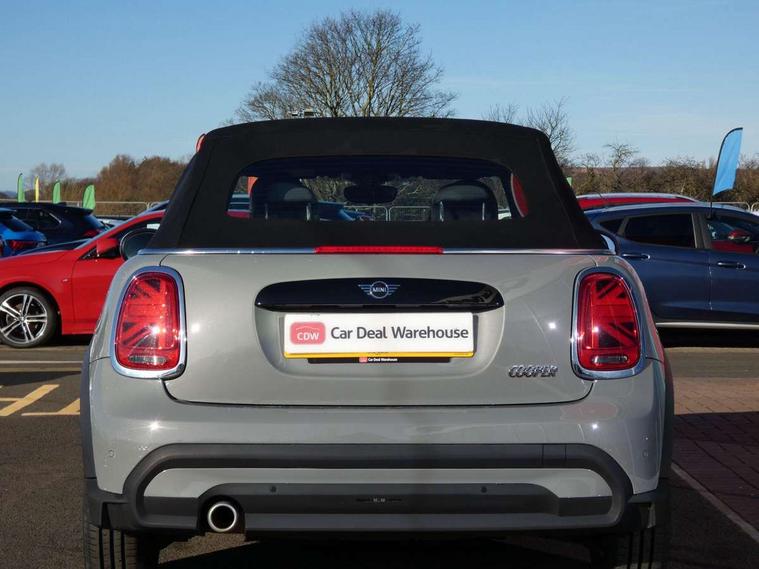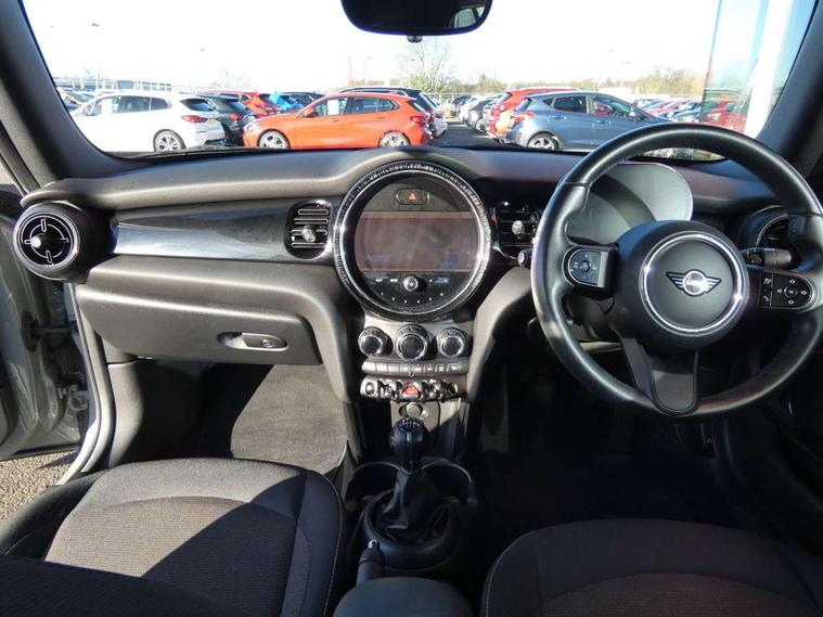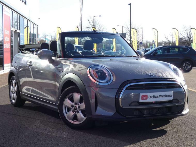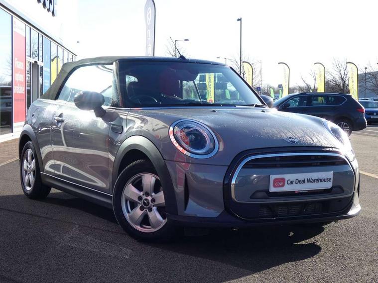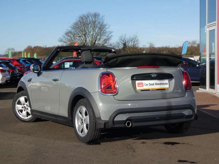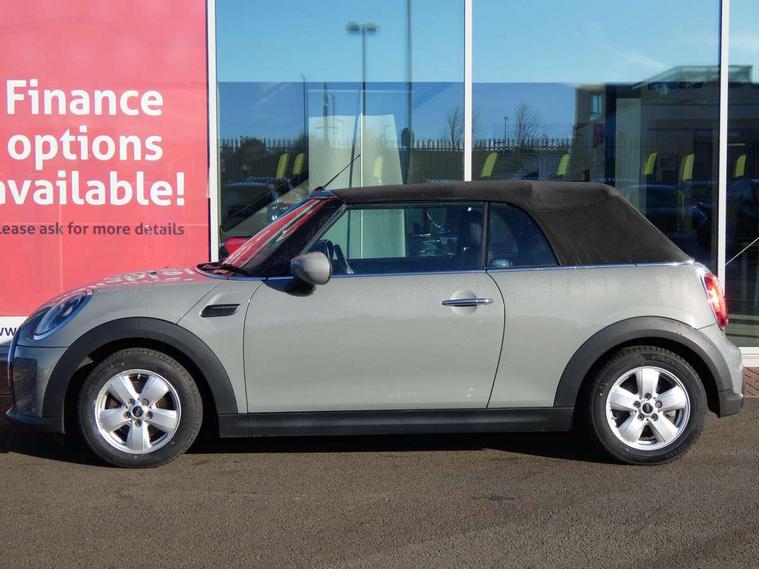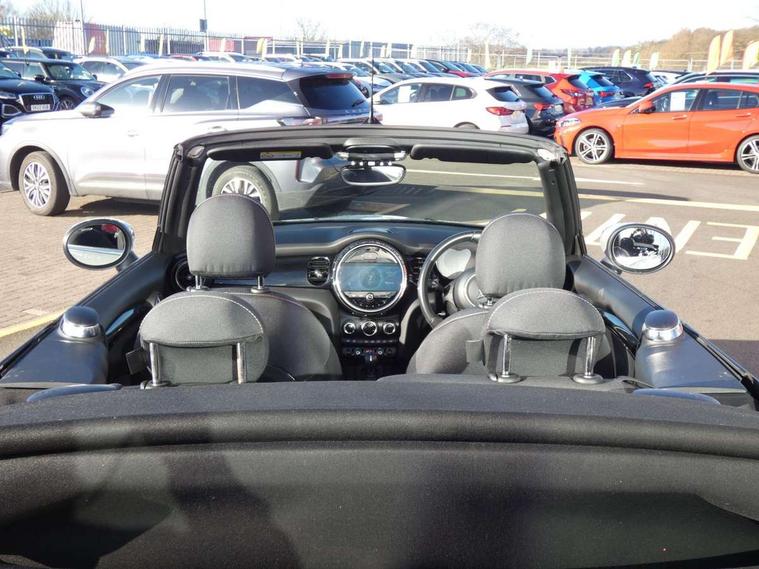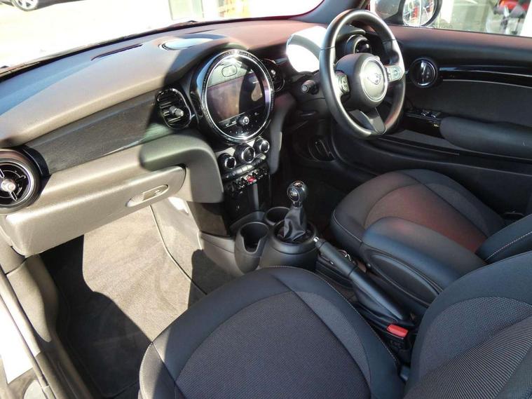 Apple CarPlay, Automatic start/stop function with brake energy recuperation, Compatible mobile phone bluetooth with audio streaming, Cruise control with brake assist, Electro-mechanical speed dependant steering assistance, Instrument cluster, Mini E-call, MINI TeleServices, On board computer, Rear park distance control, Service interval indicator, 6 Speed manual transmission including gear change indicator display, Double Vanos system, Fully variable valve control, High precision injection, Performance Control, 8.8" touchscreen with LED ring, FM tuner and DAB digital radio, Automatic headlight activation switch, Body colour fuel filler cap, Chrome border high gloss black slats radiator grille, Dynamic brake lights, Electric windows, Fully electric black softtop with integrated sunroof functionality, Heated rear window, Heated windscreen washer jets, LED headlight with closed ring and daytime driving lights, Left exhaust tailpipe with chrome finisher, Metal door sill strips with MINI imprint, Model logo Cooper on right of tailgate, Rain sensor window wipers, Rear boot, Rear fog lights, Rear LED lights with union jack design, Side scuttle panel with integrated indicator, Sun/heat protection glass, Third brake light, White indicator lenses, 12V Accessory socket in centre console, 2 seat bench in 2nd row, 4 lashing eyes in luggage compartment, 50/50 split folding rear seats, Chrome interior highlights, Colour line - Carbon black, Cupholders, Easy Load boot handles, Front and rear head restraints, Front and rear isofix with front passenger airbag deactivation, Glove compartment, Height and length steering column adjustment, Interior lighting with 12 different colours running across the dashboard, underneath door bezel illuminated laser engraved design on central display, Leather gearshift lever and handbrake gaiters, LED reading lights, vanity mirror lights, front foot well light and spotlight on front seats, Manual air conditioning, Mechanical seat adjustment, driver seat height adjust, forward/back and front seats backrest, Multifunction steering wheel, Single front passenger seat, Sports steering wheel, Storage compartments in doors, Sunvisors with vanity mirrors, Three spoke steering wheel with speed limiter and audio/communication controls, Velour floor mats, Convertible pack with comfort access - Mini Convertible, 3 point seatbelts on all four seats, 6 Airbags - front, side and seat belt tensioners, Active rollover protection, Anti-lock braking system (ABS), DSC - Dynamic Stability Control, Front and rear disc brakes, Hill start assist, Single tone fanfare horn, Tyre pressure monitoring system, Alarm system with tilt sensor, monitoring doors, bonnet interior and tailgate, Electronic vehicle immobiliser, Keyless Go, Piano black interior trim, Tool kit, Tyre repair kit,