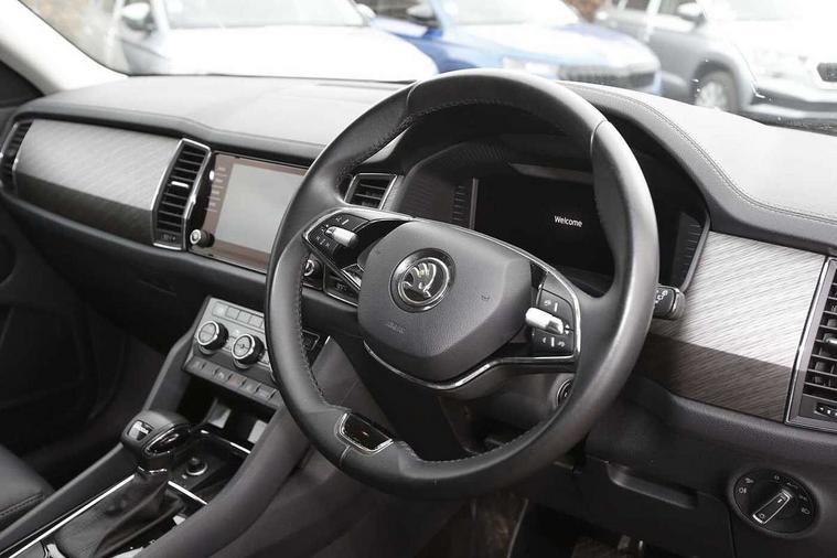 Bluetooth system, Digital voice enhancement, e call+, ECO Stop/start function, Exterior temperature indicator, Rear view camera, Smartlink wireless for apple carplay and wired for android auto, Speed limiter, Tailgate unlocking from outside, USB C Port x 2 in front centre console, Virtual Cockpit - 10.25" digital display, Wireless charging, 8 Speakers, DAB Digital radio, Aero front windscreen wipers with intermittent function, Aero rear window wiper, Auto dimming rear view mirror, Black wheel arch surrounds, Body colour bumpers, Body colour door mirrors and handles, Chrome front grille, Chrome roof rails with chrome window surround, Electric adjustable/heated/folding door mirrors, driver side auto dimming with boarding sports and memory function, Electric front and rear windows, Extended rear spoiler with finlets in gloss black, Front fog lights, Full LED matrix headlights with AFS (adaptive front light system), cornering function and AWL (all weather lighting system), Headlight washers, Heated rear window, Invisible tailpipe, LED daytime running lights, LED rear fog light, LED third brake light in rear spoiler, Light assistant (coming/leaving home/tunnel light), Off-road style lower front bumper element, Privacy glass, Rain and light sensors, Rear LED lights (high functionality) with welcome effect and dynamic indicators, Rear side wing doors, Safety reflectors on front and rear doors, Window control switches with black trim, 12V socket in boot, 2 rails with 2 hooks, 2 seat bench in 3rd row, 2 spoke multi-function leather steering wheel with paddle shift, 3 seat bench in 2nd row, 4 foldable roof handles with rear coat hooks, 60:40 foldable rear seat with sliding adjustment and backrest angle adjustment, Bottle holders in door panel in the 1.5 litre front and 1 litre rear, Cargo storage compartments, Chrome headlight control button, Chrome interior door handles, Coat hooks on B pillar, Covered storage compartment on driver side, Decorative door sill covers, Front and rear door armrest with black adductor trim, Front centre armrest with storage compartment, cup holder and 12V socket, Front courtesy lights, Gear shift lever with chrome frame and black gloss insert, Grey stitching in front and rear armrests and door armrests + door inserts, Height adjustable front headrests, Illuminated glovebox, Illuminated luggage compartment, Isofix child seat fittings in outer rear seats with top tether, Manually adjustable steering column, Net programme in boot (1x horizontal Net, 2x vertical Nets), Overhead glasses storage compartment, Pollen filter, Rear centre armrest with cupholders, Single front passenger seat, Sliding trunk cover, Small Bags on the inner sides of the front backrests, Sunvisors with illuminated vanity mirrors, Three rear height adjustable headrests, Ticket holder on A Pillar, Umbrella in door panel, Variable boot floor, Auto door release and activation of warning lights in the event of an accident, Driver and front passenger airbag with knee airbag and front passenger airbag deactivation, Electronic parking brake with hill start assist, Emergency rear braking signal, ESC (incl. ABS+MSR+ASR+EDS+HBA+DSR+RBS+MKB), Front assist with autonomous emergency braking, Front side airbags with curtain airbags, Fuel cut off safety device, Height adjustable front 3 point seatbelts + pretensioners, Hill hold control, Rear disc brakes, Safety vest holder in door, Seat belt reminder for all seats, Three point rear seat belts, Two tone horn, Tyre pressure monitor, Alarm with interior monitoring and tilt sensor with safe function, Anti-theft wheel bolts, Immobiliser, Keyless entry and start system (KESSY), Remote central locking with 2 keys, Grey stitching in dashboard, Linear diamonds decorative inserts, Temporary spare wheel (space saver),