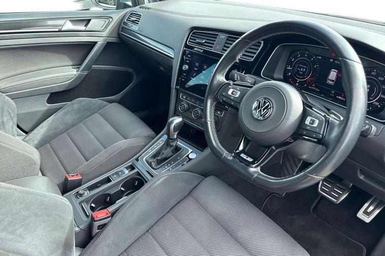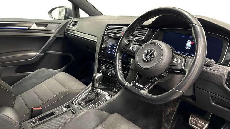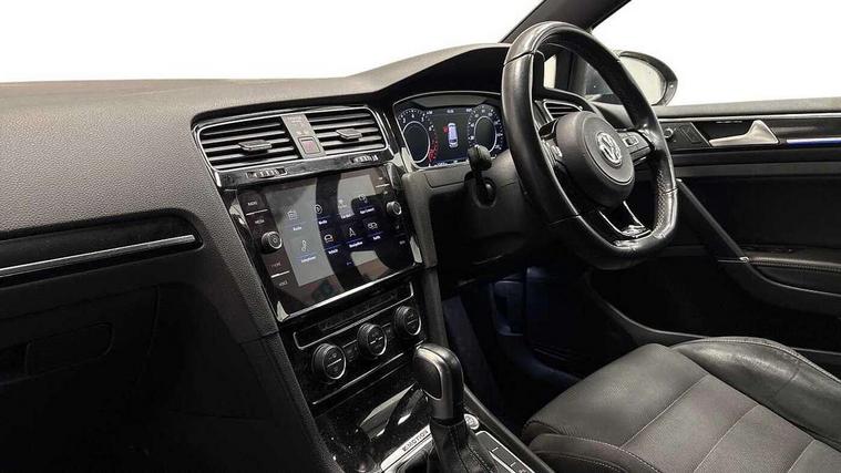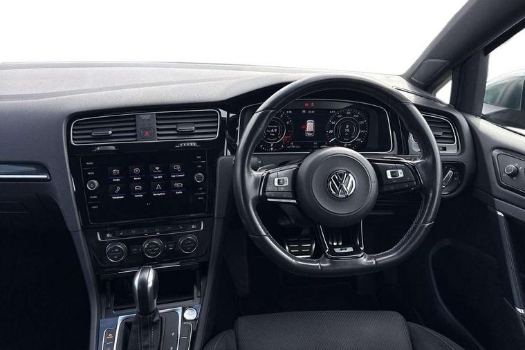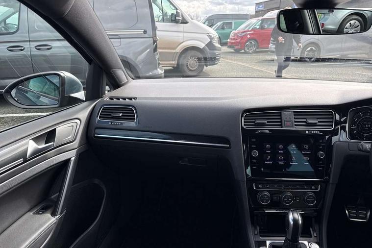 'Lights On' Reminder warning buzzer, 8" colour touch screen, ACC - Adaptive cruise control with front assist, forward collision warning, distance monitoring, city emergency brake and speed limiter, Bluetooth telephone and audio connection for compatible devices, Brake pad wear indicator warning light, Driver alert system, Driving Mode Selection with four preset modes - Eco, normal, sport or individual modes, Multifunction computer with visual gear change recommendation for fuel consumption, Progressive power assisted steering, Rear view camera, Speedo, rev counter, electronic odometer, trip, service interval display, exterior temperature and fuel gauge, Think blue trainer driver tips and journey analysis, Ultrasonic front and rear optical and audible parking sensors, Unique R instrument cluster, Warning buzzer and light for front seatbelts unfastened, Anti-tramp function, Battery regeneration during braking, Lowered sports suspension, XDS electronic differential lock, DAB Digital radio receiver, Driver Personalisation profile selection, MDI multi device interface, MP3/WMA compatability, Premium USB cable in choice of either Apple or Android smartphone compatibility, SD card slot, SMS Functionality, Title and cover art display, USB charging socket, Volkswagen media control, Anthracite wheel arch protection, Automatic coming/leaving home lighting function, Black rear diffuser, Body colour door handles, Body colour front and rear bumpers, Body colour rear roof spoiler, Chrome trimmed front air intake surround, Dusk sensor + automatic driving lights, Electrically adjustable and heated door mirrors, Front and rear electric windows, Fully galvanised body, Heated rear windscreen, High level 3rd brake light incorporating LED Technology, LED daytime running lights, LED rear lights, LED rear number plate lights, Rain sensor and automatic dimming interior rear view mirror, Rear fog lamp, Rear tinted glass 65% light absorbing from B pillar backwards, Rear window aerial, Rear window wash/wipe with intermittent wipe, Reflectors in all doors, Twin exhaust tailpipes x2, Unique R badging, Unique R design key, Unique R radiator grille with matt chrome strip, Windscreen wipers/ intermittent wipe + 4 position delay, 12V socket in luggage compartment, 3 rear headrests, 3 spoke steering wheel, 4 load lashing points in luggage compartment, 60/40 split folding rear seat backrest and flat folding into boot floor, Ambient lighting in front door armrest, light strips below trim in front doors and reflectors in front and rear doors, Bag hook in luggage compartment x 2, Black decorative sleeve on gear handles, Black roof lining, Climate control - 2 zone electronic air conditioning with automatic air recirculation and allergy filter, Cooled glovebox, Cover for storage compartment in centre, Dust/pollen filter, Front + rear carpet mats, Front centre armrest with storage compartment and two rear air vents, Front footwell illumination, Front seat back storage pockets, Grab handles front x 2, rear x 2 with integrated coat hooks, Height and reach adjustable steering wheel, Illuminated door sills, Illuminated vanity mirrors, Instrument lighting white adjustable panel illumination, Interior light delay, Isofix preparation for 2 rear child seats, LED front and rear reading lights X 2, Load through provision with rear centre armrest and cupholders x2, Luggage compartment cover with stowable convenience opening, Luggage compartment lighting, Multifunction leather steering wheel with R Logo and leather trimmed gear knob including paddle shift, Overhead storage box, Stainless steel pedals in clutch, brake and accelerator, Storage box in luggage compartment, Storage compartment in roof console with cover, Storage compartments in front doors, Storage compartments in rear doors, Sun visors, Variable boot floor, height adjustable and removable, Convenience Pack - Golf, Mirror pack - Golf, Winter pack - Golf, 3 rear three point seatbelts, Airbags - Driver and rear passenger curtain, driver knee, front side impact, driver and passenger airbag with passenger deactivation switch, Anti-lock Braking System (ABS) with Hydraulic Brake Assist (HBA), Automatic post collision braking system, Child locks on rear doors, Driver/Passenger optimised head restraints, Electronic parking brake with auto hold, Electronic stability control (ESC) including Electronic differential lock (EDL) and ASR (Traction control) with deactivation via infotainment system, Front ventilated disc brakes and rear disc brakes, Pre crash preventive occupant protection, Predictive pedestrian protection, Three point height adjustable front seatbelts with tensioners, Tyre pressure loss indicator, Volkswagen roadside assistance, Alarm with interior protection and deactivation via infotainment system, Electronic engine immobiliser, Keyless entry with start/stop button on centre console, Carbon touch decorative inserts in dash and door panels, Chrome plated air vent surround, Chrome-plated light switch surround, Piano black decorative inserts in centre console, Full size wheel trims, Steel space saver spare wheel,