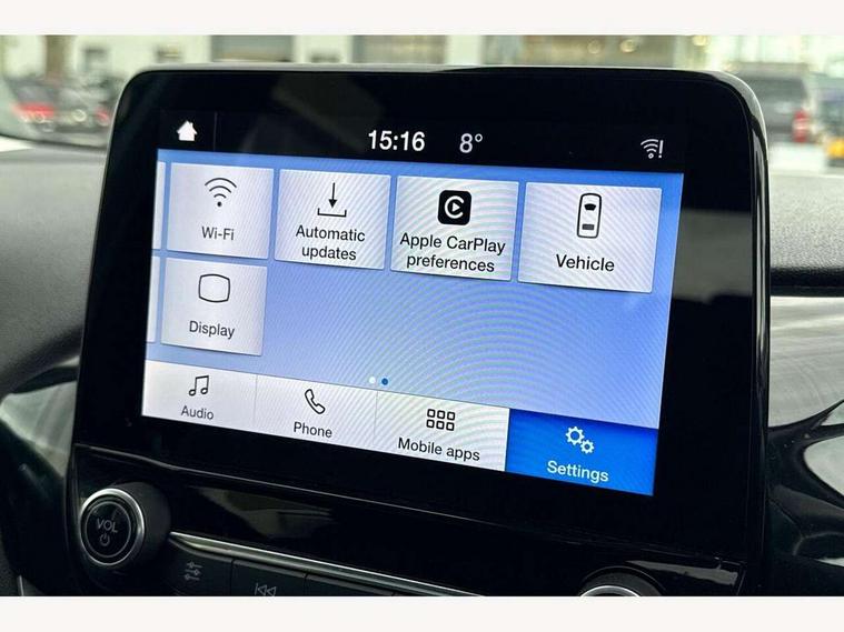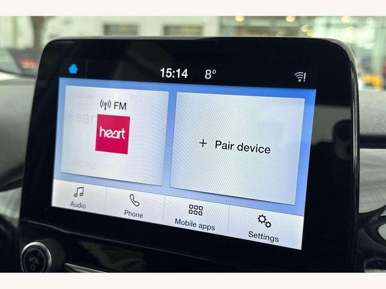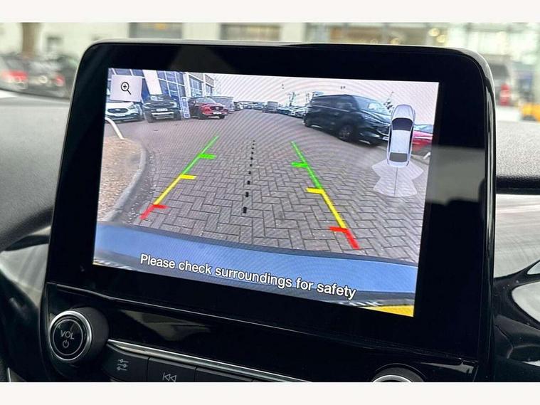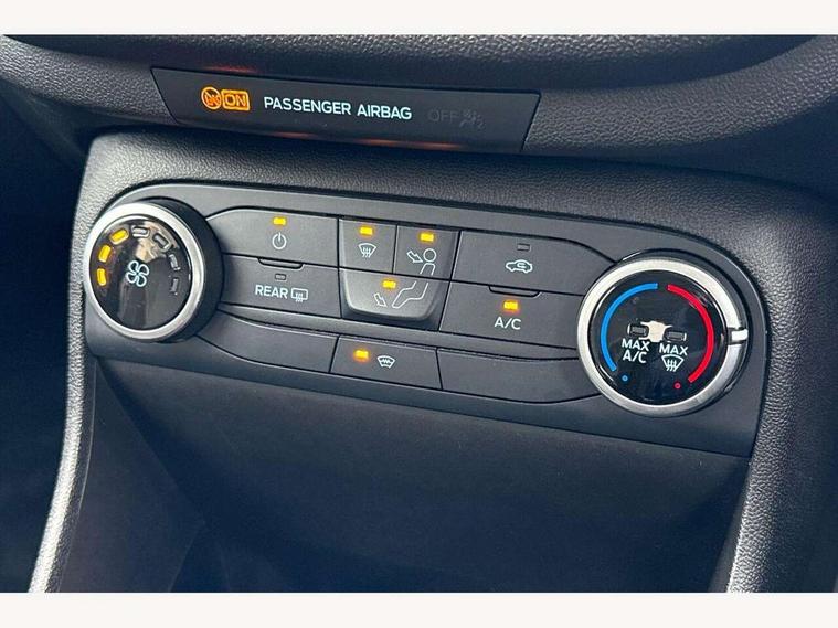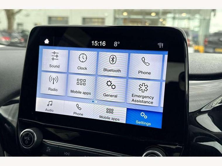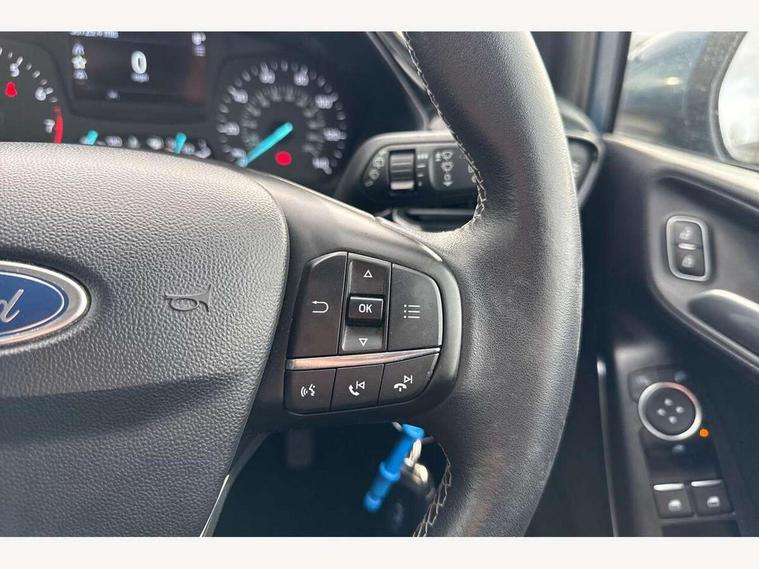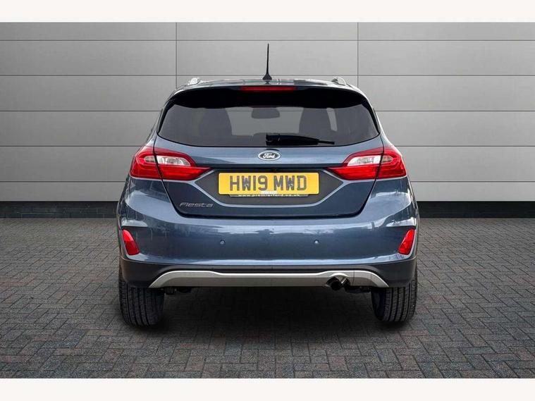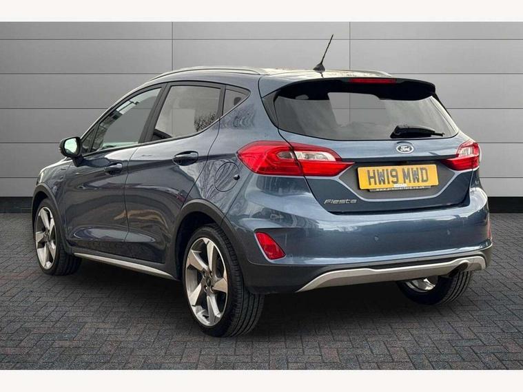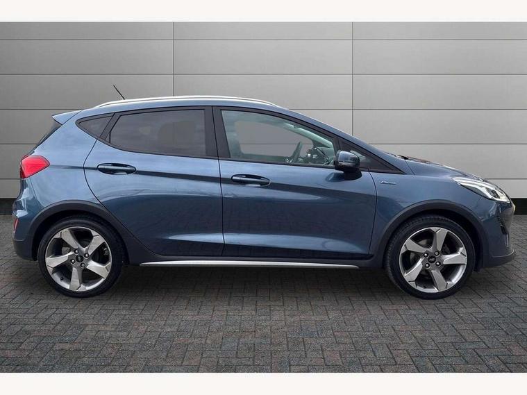 Bluetooth system, Drive mode selector, Electric power steering, Ford easy fuel, Trip computer, Rough road suspension with increased ride height adjust, 2 USB ports, Auxiliary input socket, DAB Digital radio, Steering wheel mounted controls, Active logo front door thershold plates, Automatic headlights, Body colour bumpers, Body colour door handles, Body colour electric adjustable heated door mirrors with integral indicators, Body colour rear spoiler, Chrome beltline trim, Chrome lower window surround, Cornering front fog lights, Electric front windows/one touch facility, Electric rear windows, LED Night signature to rear lights, LED rear lights, Quickclear heated windscreen, Rear privacy glass, Rear wiper, Rugged body styling kit with active front wing badges, Tinted glass, Upper front grille chrome surround, 12V Accessory socket in centre console, 3 spoke leather trimmed steering wheel with audio control, 60/40 split folding rear seat, Adjustable head restraints, Ambient lighting, Boot carpet, Chrome inner door handles, Cloth upholstery, Drivers and Passenger lumbar support, Footwell illumination, Front floor mats, Front map reading lights, Front seat and rear pockets, Height adjustable driver's seat, Illuminated glovebox, Leather gear knob, Leather trimmed handbrake handle, Load area light, Luxury woven headliner, Manual air conditioning, Overhead console with sunglasses holder, Pollen filter, Rake/reach adjustable steering wheel, Rear centre head restraint, NCAP Pack - Fiesta, 3 point seatbelts on all rear seats, ABS+EBA, Curtain airbags, Driver and passenger airbags, Drivers knee airbag, Electronic stability control with hill start assist, Front passenger airbag deactivation, Front side airbags, Seatbelt warning, Tyre pressure monitoring system, MyKey system, Remote central locking & engine immobiliser, Thatcham Cat.1 alarm, 17" 5 spoke alloy wheels with rough metal machined finish,