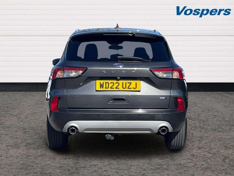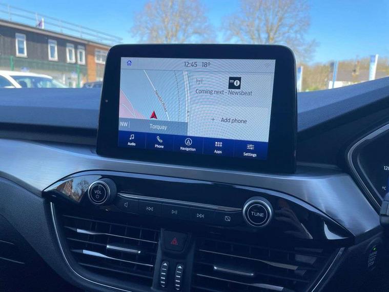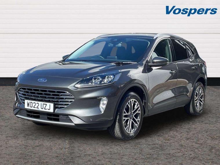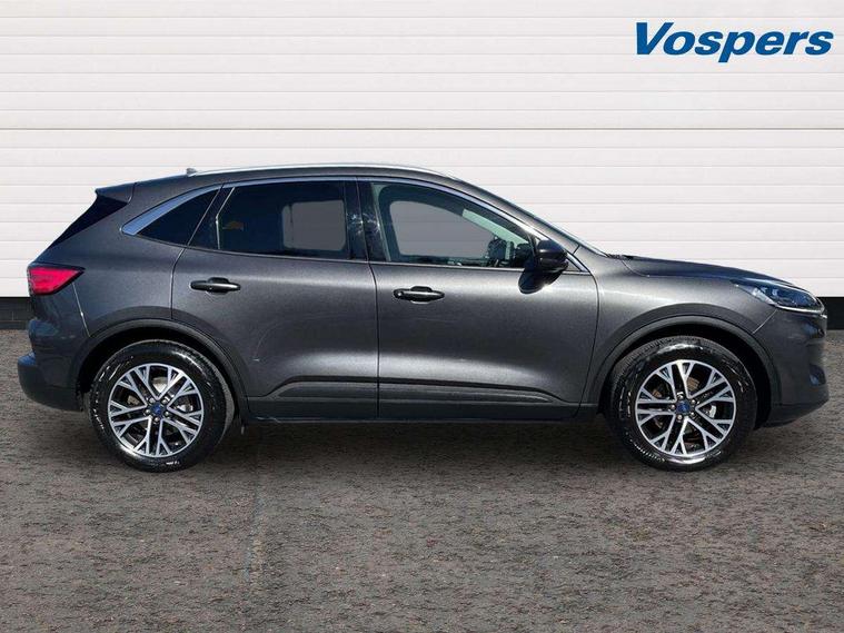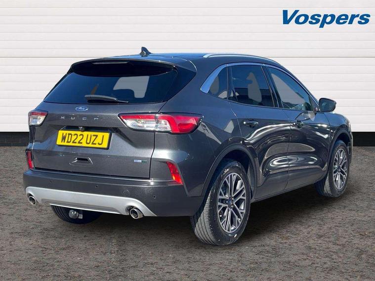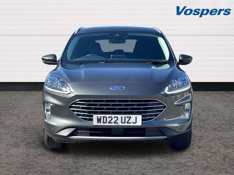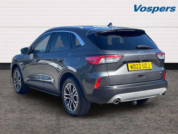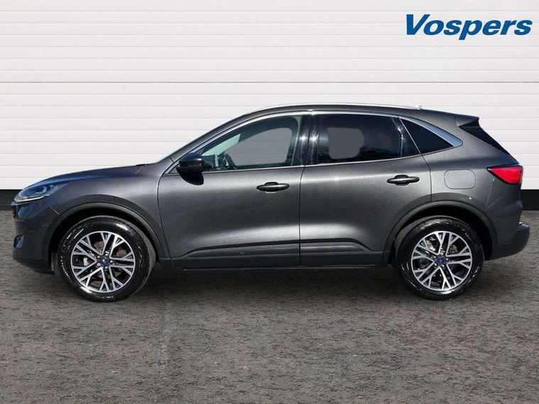 Driver impairment monitor, Ford easy fuel, Ford SYNC 3 with 8" colour touchscreen, App Link, andriod auto/apple carPlay and navigation with Ford pass connect, Front and rear parking sensors, Intelligent speed assist, Lane keeping aid with lane departure warning, Mobile phone wireless charging pad, Power assist steering, Selectable drive modes, Ford DAB audio system with 6 speakers, Auto dimming rear view mirror, Auto headlamps with high and low beam, Auto wipers, Front LED fog lamps, Front scuff plates, Full LED headlamps, LED daytime running lights, LED rear lights, Power folding heated door mirrors with puddle lights, Power front/rear windows with global close, Privacy glass, Quickclear heated windscreen, Rear spoiler, Silver roof rails, Twin exhausts, 2nd row sliding seats, 8 way manual passenger seat including lumbar support and height adjust, Ambient lighting, Centre console with electronic parking brake, Dual electronic automatic temperature control, Front and rear floor mats, Front and rear head restraints, Leather steering wheel and gear knob, Rear charging point, Salerno partial leather upholstery, Sports seats, B&O with small instrument cluster pack - Kuga, 3x3 point rear seatbelts, Airbags - front driver/passenger, front and rear curtain, Drivers knee airbag, Electronic stability control (ESC) and ABS, Ford MyKey Gen 2 safety system, Post collision braking, Powered child proof rear door locks, Pre collision assist with autonomous emergency braking, Tyre pressure monitoring system, Engine immobiliser, Keyless entry, Keyless start with 'Ford Power' starter button, Locking wheel nuts, Remote powered central double locking doors, Thatcham category 1 alarm, Tyre inflation kit,