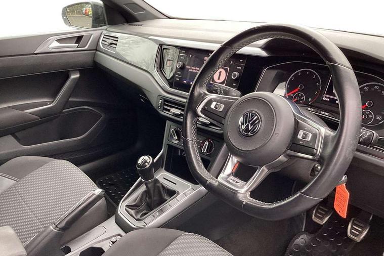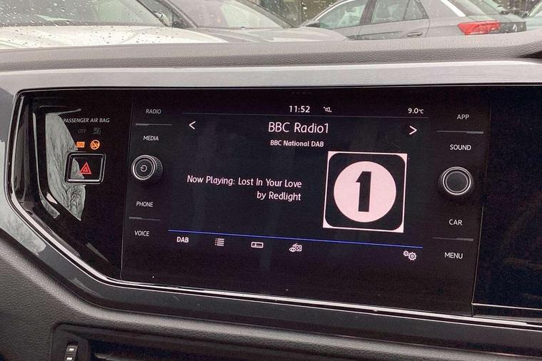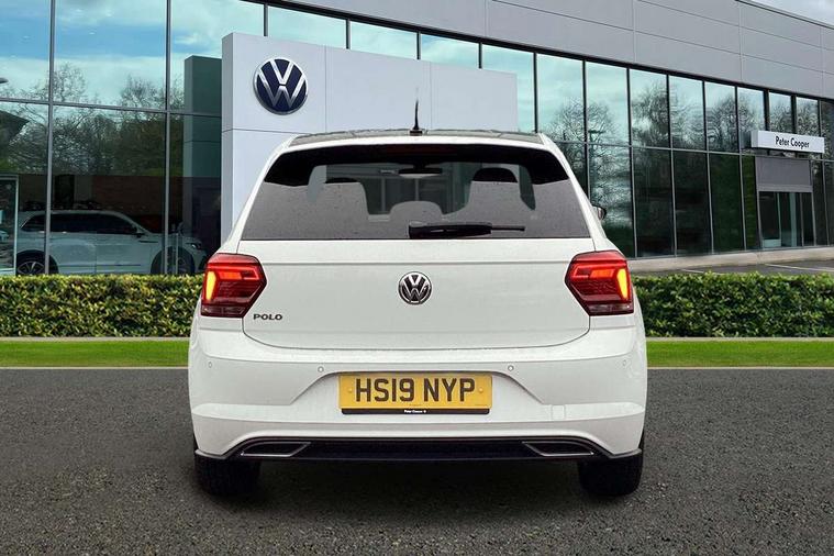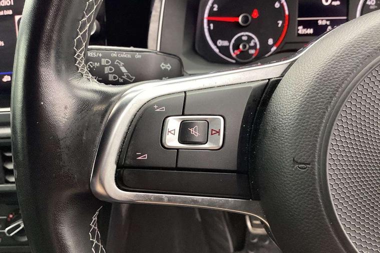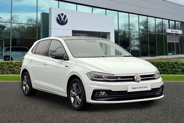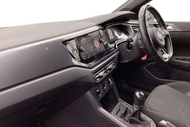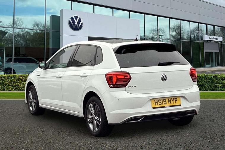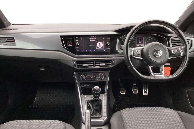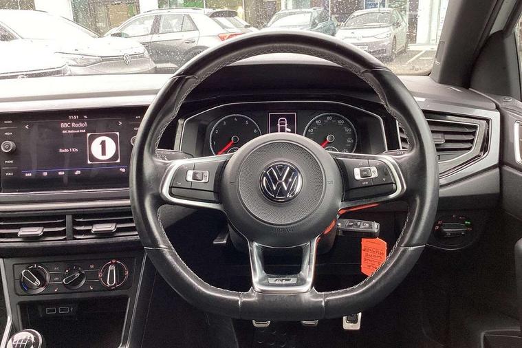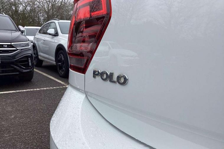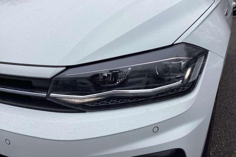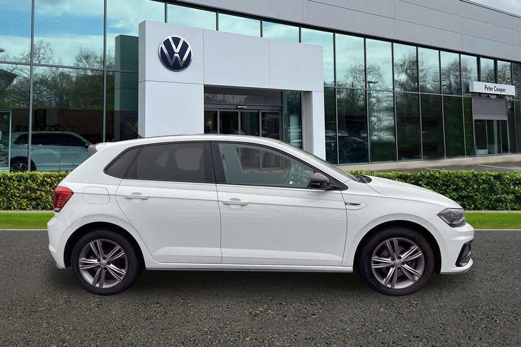 App-Connect, Bluetooth Telephone preparation, Driver alert system, Multifunction colour display, PAS - speed related, Service interval indicator, Start/stop system, Trip computer, Warning buzzer and light for front seatbelts unfastened, Battery regeneration during braking, 6 speakers, Composition media system with radio, glovebox mounted CD, colour touch screen, SD card, aux-in, USB, multimedia interface, DAB Digital radio, Automatic dimming interior rear view mirror with rain sensor, Automatic headlamp activation, Black grille with chrome surround, Black radiator grille with chrome insert, Body colour bumpers, Body colour door handles, Body colour rear spoiler, Body coloured side sills, Chrome insert to lower bumper, Chrome trimmed front air intake surrounds, Electric folding door mirrors, Electric front windows, Electric operated/heated door mirrors, Front fog lights including static cornering, Front wash/wipe with interval delay, Fully galvanised body, Heated rear window with auto timer, High level 3rd brake light, LED darkened rear light clusters, LED daytime running lights, LED rear number plate lights, Manual coming/automatic leaving home lighting function, R Line body kit, Rear diffuser, Rear electric windows, Rear windscreen washer and wiper with interval delay, Stainless steel door sill protection, Twin chrome exhaust tailpipes, 12V power socket in centre console, 2 bag hooks in luggage compartment, 2 cupholders, 3 rear head restraints, 3 spoke steering wheel, 60/40 split folding rear seat, Ambient lighting, Carbon flag cloth upholstery, Chrome-plated electric window button surround, Driver/front passenger seat height adjustment + underseat drawers, Driver/passenger sunvisors with illuminated vanity mirrors, Dust/pollen filter, Front + rear carpet mats, Front centre armrest with storage compartment, Front seat backrest storage nets, Front sport seats, Front/rear reading lights, Glovebox, Handbrake grip button in chrome effect, Height/reach adjustable steering column, Instrument lighting, white adjustable panel illumination, Interior light with delay, Isofix Preparation 2 Rear child seats, Jack and tool kit, Leather multifunction steering wheel, LED footwell lights, Luggage compartment cover, removable, Luggage compartment lighting, Matt chrome gear lever gaiter surround, R Line badge, Stainless steel pedals, Storage compartment in front doors, Storage compartment in rear doors, Storage compartment under front seats, Titanium black headlining, Titanium black roof lining, Variable boot floor, Variable Luggage compartment, Light and sight pack - Polo, R Line styling pack - Polo, 3 point height adj front seatbelts + pretensioners, 3x3 point rear seatbelts, ABS, Automatic post collision braking, Driver/front passenger airbag, Driver/Passenger whiplash optimised head restraints, ESP with EDL + ASR, Front and rear passengers curtain airbag system including front side airbags, Front passenger airbag deactivation, Front/rear disc brakes, HBA (Hydraulic Brake Assist), Hill hold control, Two tone horn, Tyre pressure monitoring system, Alarm with remote central locking and interior protection, Electronic engine immobiliser, Chrome plated electric mirror adjustment light switch surround, Cortina silver air vent surround, Matt chrome interior trim, Snow shadow steel dashboard pads, Steering wheel aluminium inserts, Space saver spare wheel,