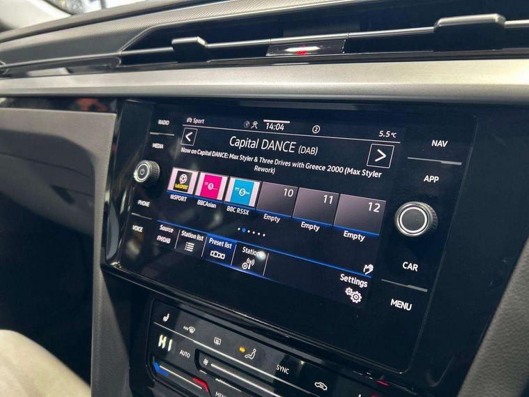 Adaptive cruise control (ACC) with speed limiter, front assist (reacting vehicles pedestrian and cyclists) and follow to stop, App connect including wireless Apple CarPlay, Camera for warning system, Digital cockpit with 10.25" high resolution TFT display screen with customisable menus and information, Driver alert system with fatigue detection, Driver profile selection including ECO function, Dynamic road sign display, eCall - Emergency call service for SOS calls to emergency response, Emergency assist, Hands free boot opening, Press and drive key, Progressive steering, Side scan lane change assist including rear cross traffic alert, Speedo and rev counter, electronic odometer, trip, service interval display and exterior temperature gauge, Tailgate, Travel assist - Lane keeping assist and traffic jam assist, Voice activation for telephone and navigation, Start/stop function with battery regeneration, Premium USB cable in choice of either Apple or Android smartphone compatibility, Auto dimming interior rear view mirror, Automatic headlights, Body colour door handles, bumpers and side skirts, Body coloured top and matt black lower door mirrors with integrated indicators, Chrome plated radiator grille inserts and light switch surrounds, Chrome side window surrounds, Dynamic headlight range control, Electric folding door mirror, adjustable, heated with front passenger exterior mirror lowering function, External USB-C data socket with increased charging performance in front, Front and rear electric windows, Front and rear stainless steel door sill protection, Front windscreen washers and wipers with 4x interval delay, Heat insulating side and rear windows, Heated rear windscreen, Heated windscreen washer jets, LED 3rd brake light, LED rear combination lamp with dynamic indicators, LED rear number plate lights, Rain sensor, Rear boot spoiler, Rear fog lamp on one side and reversing lamp on both sides, Rear side wing doors, Rear wash/wipe, Tailpipes behind rear bumper, 12V socket in front centre console, 12V socket on rear of front centre armrest, 3 rear head restraints, 3 seat bench in 2nd row, 6 way electric adjustable ergoComfort driver seat with electric adjustable backrest, 60:40 split folding rear seat backrests with centre armrest, Air care climatronic 3 Zone electronic air conditioning with automatic air recirculation, Art velour vienna leather upholstery, Chrome trim on upper and lower air vents extending across cockpit, Driver and front passenger sunvisor with vanity mirror, Front + rear carpet mats, Front cupholders x 2, Front footwell illumination, Front sports comfort seats, Glovebox, Heated front seats, Height/reach adjust steering wheel, Isofix child seat preparation easy fit for two outer rear seats, Luggage compartment lighting, Power adjustable lumbar support on right front seat, Removable luggage compartment cover, Single front passenger seat, Split folding front seat backrest with front centre armrest, Stainless steel pedals, Two LED front reading light, 3 rear three point seatbelts, ABS+EBD+Brake assist, Child locks on rear doors, Driver airbag and front passenger airbags with deactivation switch including driver knee airbags, Drivers and front passengers safety optimised head restraints, Electronic parking brake, Electronic stability control (ESC) and Electromechanical brake booster, Front disc brakes, Front precrash preventive occupant protection, Front side airbags with curtain airbags, Hill start assist, Pro active occupant protection to detect critical situations with elevated accident potential from the front, Rear disc brakes, Three point height adjust front seatbelts + pretensioners, Two tone horn, Tyre pressure loss indicator, Warning buzzer for seatbelts if unfastened, Warning triangle, Alarm with interior protection with deactivation via infotainment system, Electronic engine immobiliser, Keyless entry system including start/stop button on centre console, Remote central locking, Aluminium decorative inserts, Chrome trim on lower doors in front and rear, Leatherette insert on door and side trim panel in foam film, Piano black decorative inserts in centre console,