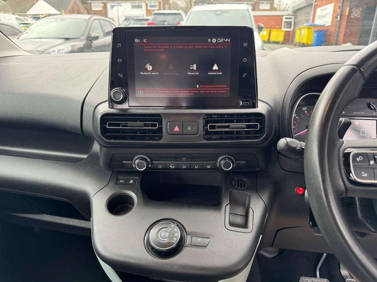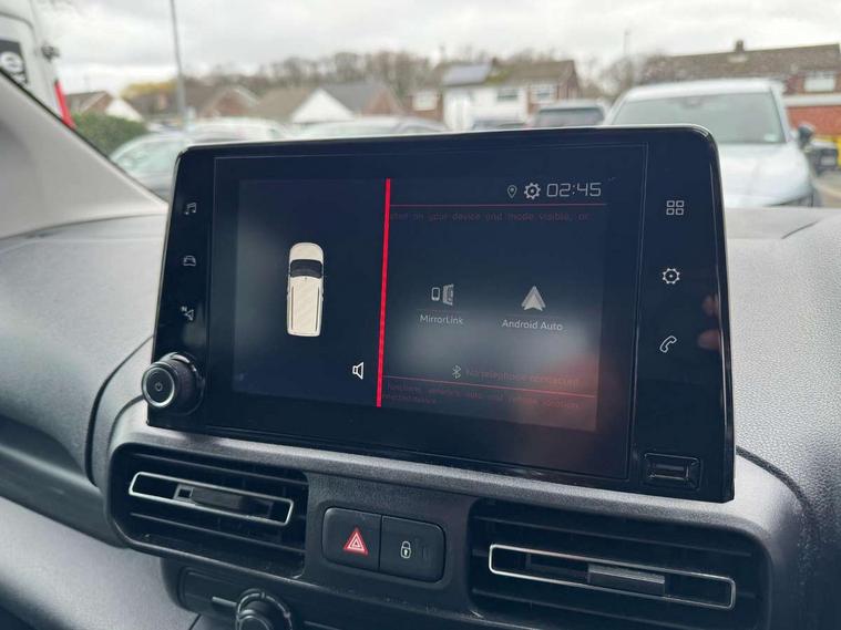 8" touch screen, Bluetooth telephone facility, Mirror screen with mirror link, apple carplay and android auto, Multi function trip computer, Programmable cruise control and speed limiter, Start/stop system, Diesel particulate filter, 6 speakers radio with mp3 compatible, DAB Digital radio, USB socket, Airbump, Automatic hazard light activation upon heavy brake application, Automatic triggered rear windscreen wiper in reverse gear, Body colour door handles, Body colour door mirrors, Body coloured front bumper, Chrome chevrons front grille, Daytime running lights, Electric front windows, Electric heated door mirrors, Front fog lights, Front windscreen wiper with multi speed setting, Halogen headlights, Headlights left on audible warning, Heated rear windscreen, Pop out opening rear side windows, Twin sliding side doors, Two tier light signature, White fog light surrounds and airbump coloured surround on first capsule, 1/3 to 2/3 split folding rear seats, 12V socket, 2 height parcel shelf, 3 seat bench in 2nd row ISOFIX child seat mountings, Air conditioning, Driver and passenger dashboard mounted cup holders, Electric power steering with reach and rake adjustable steering column, Fixing rings 4 in load compartment, Front interior light with 2 reading spotlights and rear interior light with timer, Full width front overhead storage shelf, Gear shift indicator, Height adjustable driver's seat, Leather steering wheel, Mica cloth upholstery, Nemo grained interior ambiance, Top box glove compartment, Safety pack - Berlingo, Visibility pack - Berlingo, 3x3 point rear seatbelts, Adaptive driver and front passenger airbags with passenger airbag deactivation function, Anti-locking braking system with electronic braking distribution and emergency braking assistance, Child locks on rear doors, Driver and front passenger side airbags, Electronic stability program with hill start assist, Front and rear curtain airbags, Front and rear seats seatbelt unfastened on the move audible and visual alert, Front optimised safety headrests and 3 x rear retractable headrests with height adjustable, Front three point retractable seatbelts with force limiters, Front/rear disc brakes, Tyre pressure sensor, Automatic door locking when moving off, Deadlocks, Electronic code immobiliser, Remote central locking, 16" Steel wheels with twirl wheel trim, Steel spare wheel,