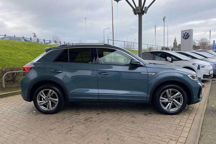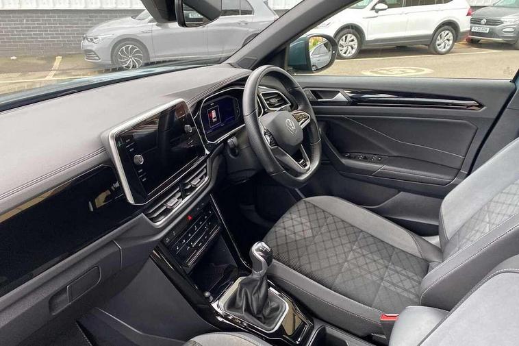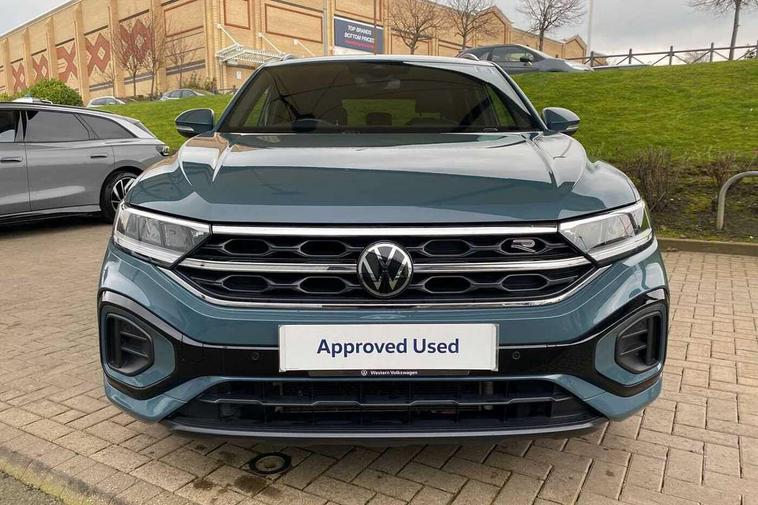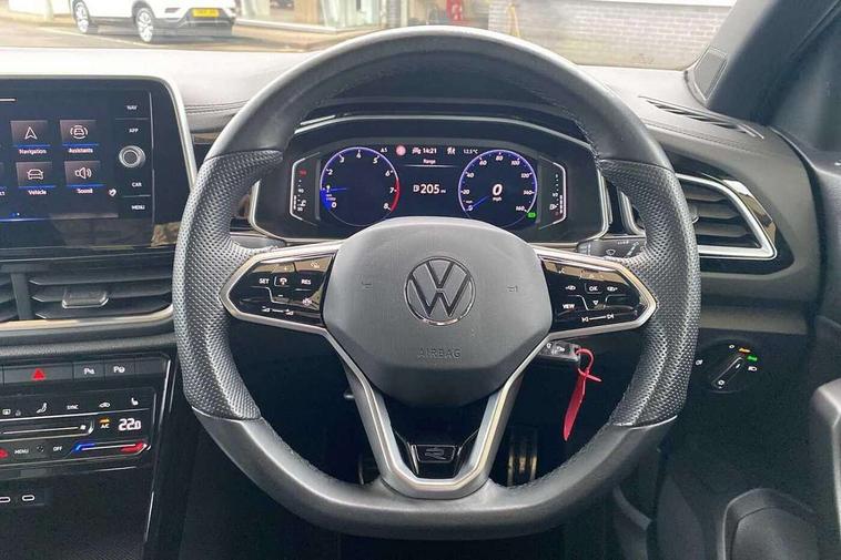 10.25" Digital cockpit pro, Bluetooth mobile phone interface, Driver alert system with fatigue detection, Driver tips and journey analysis, Emergency call service, Lane keeping system Lane Assist, Modified key software - reduce switch off time for key status change to Long no motion, Online services, Park assist including front and rear parking sensors, Service interval indicator, Tailgate/trunk lid release from outside, Think blue trainer driver tips and journey analysis, Warning sound and light for front seatbelts unfastened, Wireless app connect, Battery regeneration during braking, Start/stop function with battery regeneration, Diversity antenna for FM reception, Front and rear 6 speakers, Music playback - MP3, WMA and AAC files, Premium USB cable in choice of either Apple or Android smartphone compatibility, SD card slot, Simultaneous pairing of 2 compatible mobile devices, Title and cover art display, We Connect and We Connect Plus functionality, 3rd brake light, Auto dimming interior rear view mirror, Automatic hazard lights activation under emergency braking, Automatic headlight control with LED separate daytime running lights with coming/leaving home function, Extended roof spoiler, Exterior mirrors aspherical on driver side, convex on front passenger side, External USB type C socket and charging sockets, Front windscreen wiper with intermittent wipe and 4 position delay, Heated rear window, LED Plus headlamps, LED rear combination lamps, LED rear number plate lights, LED tail lamp rear comination lamps, Power windows with comfort operation and circuit breaker, R-Line design body coloured bumpers, Rain sensor, Rear exhaust tailpipe, Rear fog light on one side and reversing lights on both sides, Rear side wing doors, Rear wash/wipe with intermittent wipe setting, Remote electrically foldable door mirrors, puddle lights and reverse activated passenger's door mirror, 12V power socket in centre console, 3 rear head restraints, 3 seat bench in 2nd row, 4 load lashing points in luggage compartment, Air care climatronic air conditoning system with active combination filter and 2-zone temperature control, Black roof lining, Chrome plated radiator grille inserts, air vent surrounds and light switch surrounds, Door and side trim panel with leatherette insert, Drawer under drivers seat, Front + rear carpet mats, Front centre armrest, Front cupholders x 2, Front footwell illumination, Front reading light, Front scuff plates with R logo, Instrument lighting, white adjustable panel illumination, Interior ambient lighting and surround lighting, Interior light delay, Isofix child seat preparation, Leather gearshift handle, Load-through provision with cup holder when folded down ('Unsplit rear seat bench, split folding backrest, with centre armrest), Luggage compartment lighting, Single front passenger seat, Stainless steel pedals, Storage compartment in left and right luggage area, Storage compartment in rear doors, Storage compartments in driver and front passenger doors, Sunvisors with illuminated vanity mirrors, Variable boot floor, height adjustable and removable, Driver assistance pack without proactive passenger protection - T-Roc, 3 point height adj front seatbelts + pretensioners, 3 point seatbelts in outer rear with ECE label, ABS, Child locks on rear doors, Driver and front passenger airbag with front passenger airbag deactivation, Driver and front passenger safety-optimised head restraints, Drivers seatbelt reminder, Electronic parking brake, Electronic Stability Control (ESC) inc EDL (Electronic Differential Lock) and ASR (Traction Control), Front and rear passengers curtain airbag system including front side airbags, Front assist with city emergency braking and pedestrian monitoring, Front seat side impact airbags, Hill start assist, Predictive pedestrian protection, Rear disc brakes, Single tone horn, Tyre pressure loss indicator, Volkswagen roadside assistance, Alarm with interior protection, Anti-theft alarm system with interior monitoring, backup horn, and towing protection, Remote central locking with SAFELOCK, radio remote control with 2 remote control folding keys, Trims for alloy wheels,