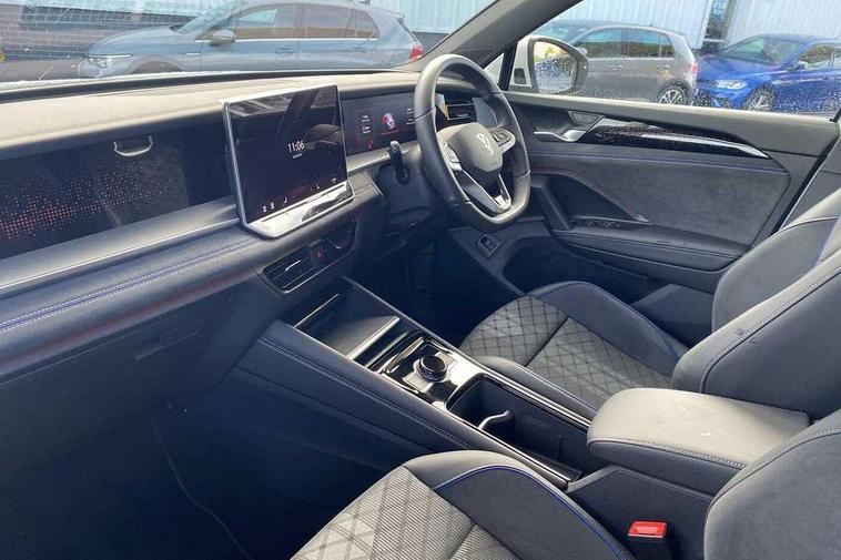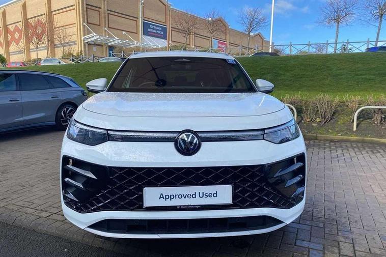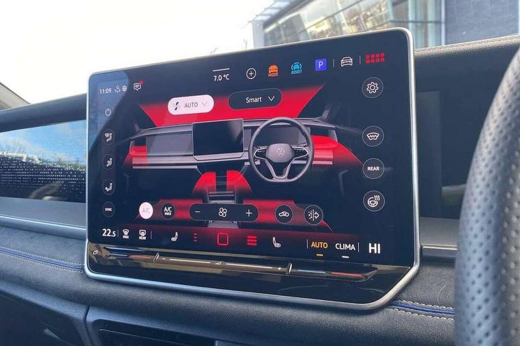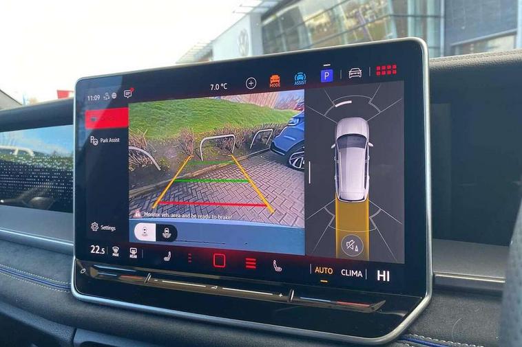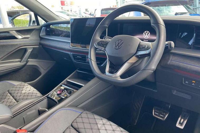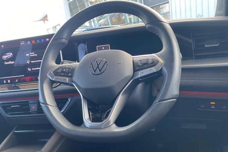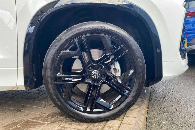 Adaptive cruise control (ACC), Digital Cockpit Pro - 10.25" high resolution dash display screen with customisable menus and information, Driver alert system, Driver attention monitoring system, Dynamic road sign display, E-Sim card for online connectivity, eCall emergency call system, Lane change system, Side assist, Rear traffic alert and Exit warning system, Multifunction front facing camera, Oncoming vehicle braking when turning including swerve support, Start/stop system with regenerative braking, Voice activation spoken voice commands for telephone and navigation system, Warning signal and warning light for front and rear seatbelts not fastened, Wireless App-Connect, Front wheel drive, Digital radio reception (DAB), Diversity antenna for FM reception, Air intake with Chrome trim, Auto dimming interior rear view mirror, Automatic headlight control system, Body colour door handles, Chrome moldings on the side windows, Coming/leaving home lighting function, Dynamic headlight range control with dynamic cornering light, Exterior mirrors convex on the left and aspherical on the right, Heat insulating glass in side and rear windows, Illuminated Volkswagen logo rear with animation, Laminated safety glass windshield, heat insulating, LED 3rd brake light, LED separate signature day time running light, Puddle lights, Rain sensor windscreen wipers, Rear fog light on one side, reversing light on both sides, Rear side wing doors, Rear wiper, Reverse activated passenger's door mirror, Surround lighting with welcome light, Volkswagen logo in front, illuminated lighting animation with wake up/goodbye scenario and illuminated door handles, 10 colour interior ambient lighting, 12V outlet in center console rear and in luggage compartment, 3 rear headrests, 3 rear seat bench in 2nd row, backrest split folding with centre armrest and 2 seats in 3rd row of seats, Black roof lining, Brushed stainless steel pedals, Carpet mats, front and rear, Centre console with illuminated storage compartment with sliding cover and two drinks holders, Chrome elements on the mirror switch and power window switches and door pulls, Door and side trim panel insert in Art velour, Flat luggage compartment floor, Front centre armrest, Front scuff plates in aluminium, ISOFIX anchors for child seats on outer rear seats and front passenger seat compatible with i-Size, Mechanical rear seat release, Power adjustable lumbar support in front, Single front passenger seat, Sports comfort seats in front, Sun visors with illuminated vanity mirrors, 3 Point seat belts in front with pretensioners, 3 point seatbelts in outer rear with ECE label, Autonomous emergency braking front assist with pedestrian and cyclist monitoring, Driver and front passenger airbag with front passenger airbag deactivation, Electronic parking brake with auto hold, First aid kit with warning triangle and safety vest, Front and rear curtain airbags, Front and rear side airbags, Front centre airbag, Front disc brakes, Hill start assist, Rear disc brakes, Two tone horn, Decorative material set R-Line, Interior door handle in matte chrome,