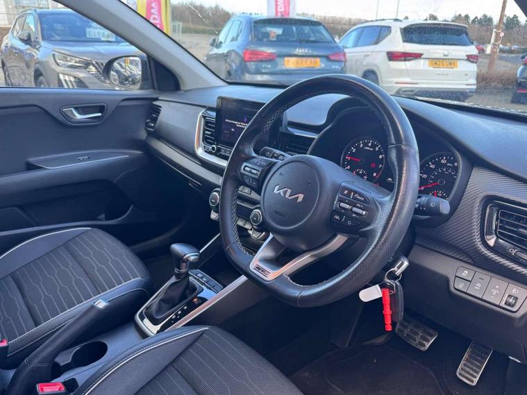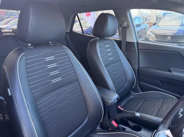 4.2" supervision colour cluster display, 8" touchscreen navigation, Apple car play/Android Auto with voice control, Cruise control + speed limiter, Drive mode selector, Electric power steering, Emergency call service, Emergency stop signalling system, External temperature display, Forward Collision-Avoidance Assist (FCA) - City/Pedestrian/Cyclist, Lane keeping assist system (LKAS), Driver attention warning (DAW) and High beam assist (HBA), Manual speed limit assist, Rear parking sensor, Reversing camera system, Trip computer, Intelligent Stop and Go, Audio system with 6 speakers, Bluetooth with music streaming, Front USB port, Steering wheel mounted controls, All round electric windows with drivers auto up/down function, Automatic defog system, Automatic headlights control, Black rear roof spoiler with high mounted LED braking light, Black side sill, door garnish and wheel arch trims, Black/body colour bumpers, Body coloured exterior door handles, Chrome side window trim, Electrically adjustable/heated/folding door mirrors with LED indicators, Front and rear silver skid plates, Gloss black door mirrors with matt black lower housing, GT-Line body kit, Headlight levelling device, Heated rear window, High gloss black and satin radiator grille, LED Bi-function projection headlights with static bending, LED daytime running lights, LED front fog lights, LED position light, LED rear combination lights, Privacy glass - Rear windows and tailgate, Rain sensor, Rear fog lights, Rear side wing doors, Rear wash/wipe, Roof rails, Shark fin antenna, Solar windshield glass, Speed variable front aeroblade wipers, Tinted glass, Welcome and follow-me home light functionality, Windscreen Washer Level Warning, 12V power point front, 3 seat bench in 2nd row, 60/40 split folding rear seat, Air filter, All-round height adjustable headrests, Aluminium pedals, Automatic air conditioning, Centre armrest storage box, Centre console with cupholders, D-Cut perforated leather trimmed steering wheel, Dash illumination dimmer switch, Driver's seat height adjuster, Front and centre cabin lights, Front and rear door map pockets with bottle holder, Gear shift indicator, Glovebox illumination, GT-Line cloth/faux leather upholstery, ISOFIX Child seat top tethers and anchor fixings outer rear seats, Leather trimmed gearshift, Luggage area light, Luggage area parcel shelf, Luggage net with hooks, Overhead console lamp, Overhead console with sunglasses cases, Passenger front seatback pockets, Rear USB charging port, Satin chrome interior door handles, Single front passenger seat, Sunvisors with vanity mirror illumination (Driver and front passenger), Tilt/telescopic adjustable steering wheel, ABS with Electronic Brakeforce Distribution (EBD) and Brake Assist System (BAS), All round 3-point seatbelts, Electronic stability control (ESC) and vehicle stability management (VSM), Front passenger airbag cut-off switch, Front seatbelt pretensioners + load limiters, Height adjustable front seatbelts, Hill start assist control (HAC), Impact sensing auto door unlocking, Manual child lock in rear doors, Rear seat Occupancy alert, Seatbelt reminder warning, Twin curtain airbags, Twin front airbags, Twin front side airbags, Tyre pressure monitoring system, Alarm system, Door deadlocks, Engine immobiliser, Locking wheel nuts, Remote central door locking with fold away key, Speed sensitive auto door locking, Visible vehicle identification number, High gloss black centre fascia, 17" GT-Line alloy wheels, Tyre mobility kit,