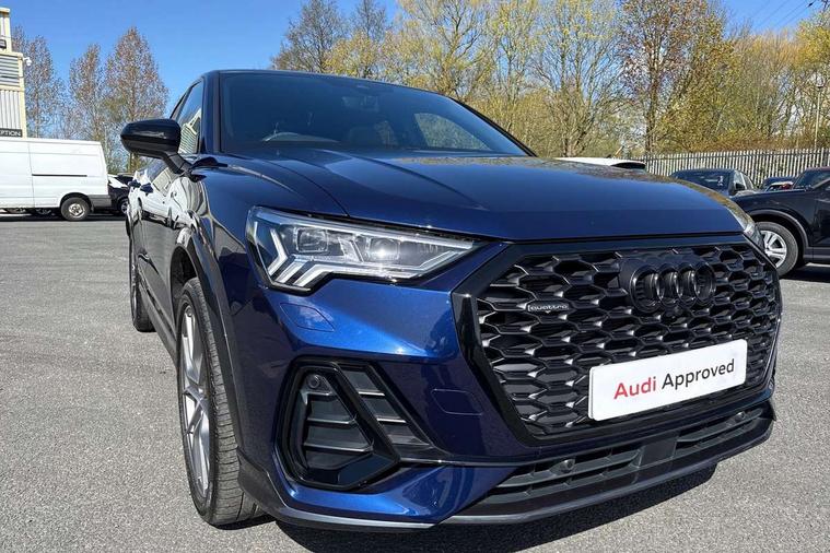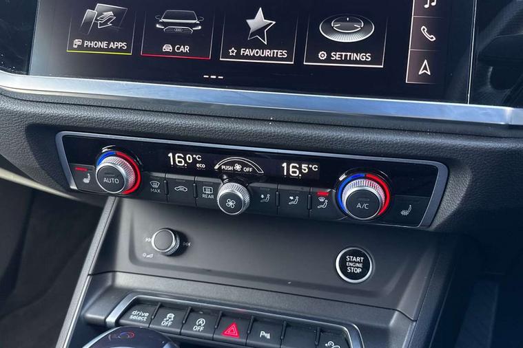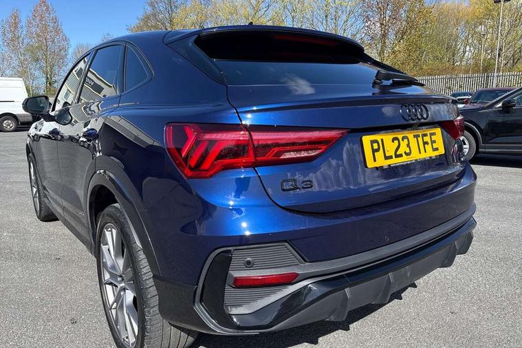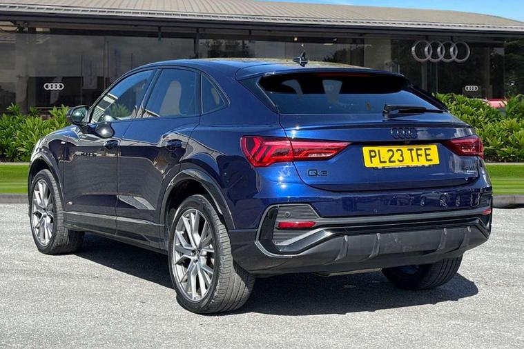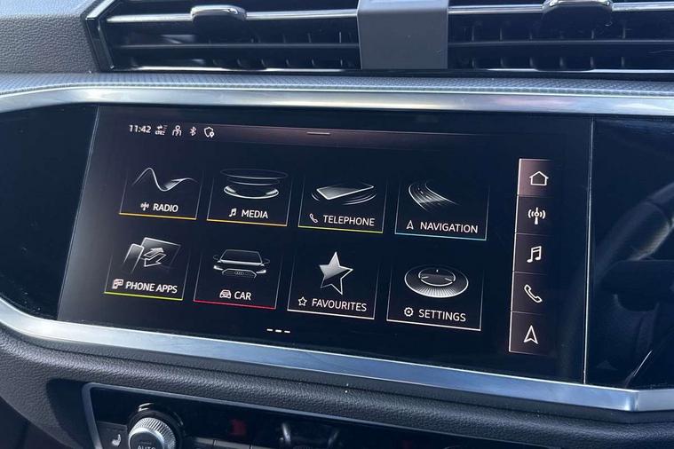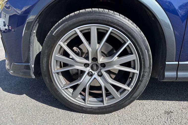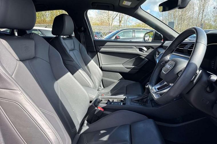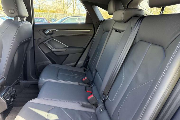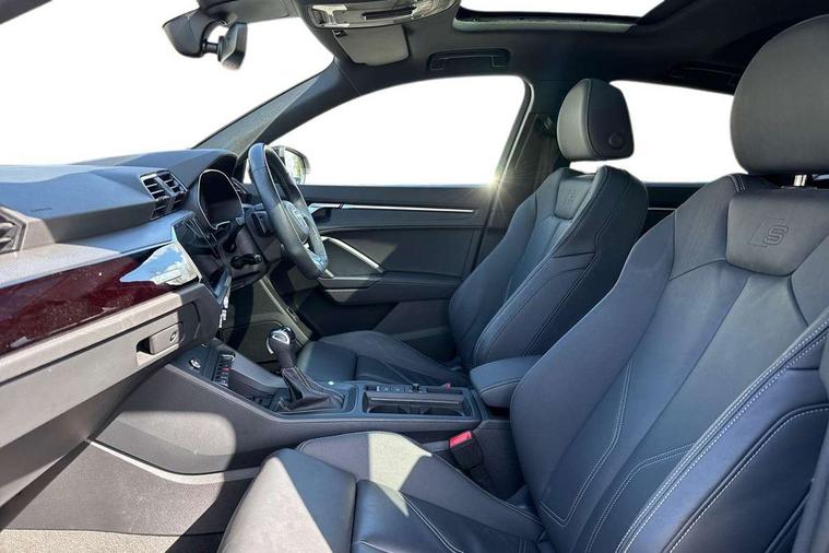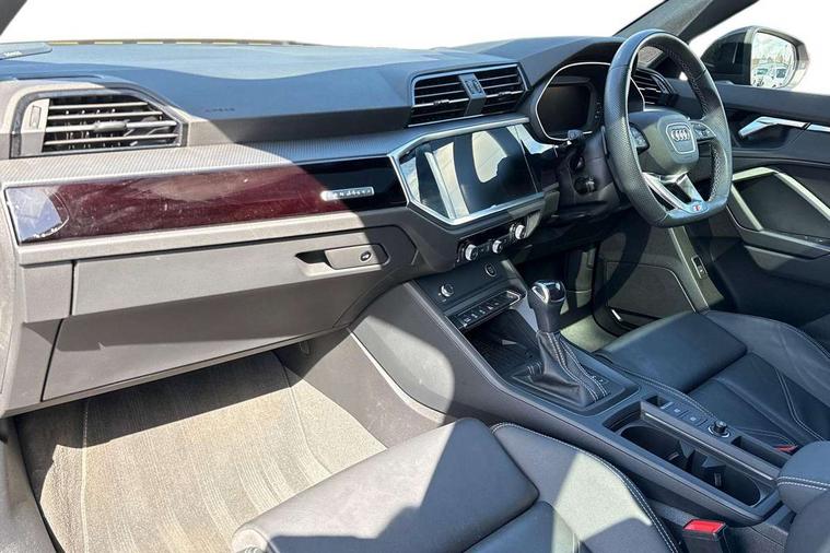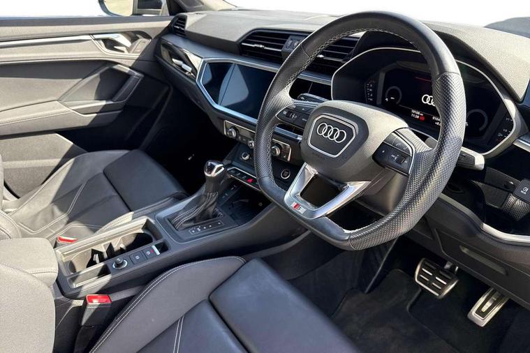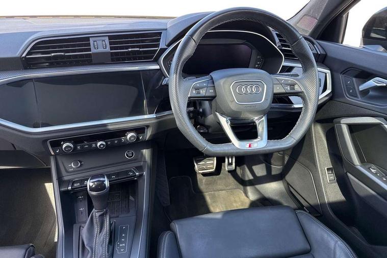 Audi drive select, Audi lane departure warning, Audi Virtual Cockpit - 10.25" display, Bluetooth interface, Camera based traffic sign recognition, Legal emergency call, MMI Navigation Plus with high resolution 10.1 inch touchscreen colour display, Power operated tailgate, Progressive steering, Service interval indicator, Smartphone interface includes wireless Apple carplay/Android Auto, Start stop system with recuperation, Voice control system with natural language interaction, Diesel particulate filter, Sports suspension, 2 USB-C ports with charge and data functions, 6 passive loudspeakers, DAB digital radio module, Acoustic windscreen, Auto dimming frameless rear view mirror, Diffuser grille in grained matt black, Diffuser trim in selenite silver, Electrically folding, adjustable and heated door mirrors with integrated LED side indicators and kerb view function for passenger side, Front and rear electric windows, Front fog lights, Front underbody protection in manhattan grey paint finish, High gloss black finish B and C pillars, LED Dynamic rear indicators, LED headlights with LED daytime running lights, LED rear lights, LED third brake light, Privacy glass dark tinted rear and rear-side windows (from B-pillar backwards), Rain and light sensors, Rear side wing doors, Rear underbody protection in matt black, Rear wiper, Variable front intermittent wipers, 12V socket in rear centre console, 3 seat bench in 2nd row, 40:20:40 folding with manual adjustment for 60:40 forwards/backwards position and backrest angle, Adjustable rear seat bench/backrest with centre armrest and cupholder, Black cloth headlining, Dual zone electronic climate control, Front and rear black floor mats with contrast stitching, Front and rear headrests, Front and rear roof module including reading lights, Front centre armrest, Glove compartment lighting, Height and reach adjustable steering wheel, Illuminated door sill trims with S logo, ISOFIX child seat mounting for front passenger with airbag deactivation and outer rear seat including top tether attachment point for outer rear seats, Luggage compartment light right in white, Luggage compartment sill protection in stainless steel, Manual front seats with height adjustment, Perforated leather gearknob, Single front passenger seat, Stainless steel pedals, Ambient lighting pack - Q3, Black styling pack - Q3, Non smoking pack - Q3, 3x3 point rear seatbelts, 6 airbags - Driver, front passenger, curtain and side windows, Audi pre-sense front with pedestrain and cyclist recognition, Electrically operated child locks on rear doors, Electromechanical parking brake, Electronic stabilisation control including ABS, ASR and EDL, Front seatbelt reminder, Hill descent control, Hill hold assist, Pre sense basic, Seatbelt monitoring, Tyre pressure warning, Warning triangle and first aid kit, Anti theft alarm, Anti theft wheel bolts, Immobiliser, Remote central locking, Aluminium look interior elements, Black dashboard, Detail dashboard around MMI touch colour display in glass look, black with surround in aluminium look, Leatherette door armrest, Piano black inlay, 19" 5 twin arm design diamond cut audi sport alloy wheels in matt grey look,
