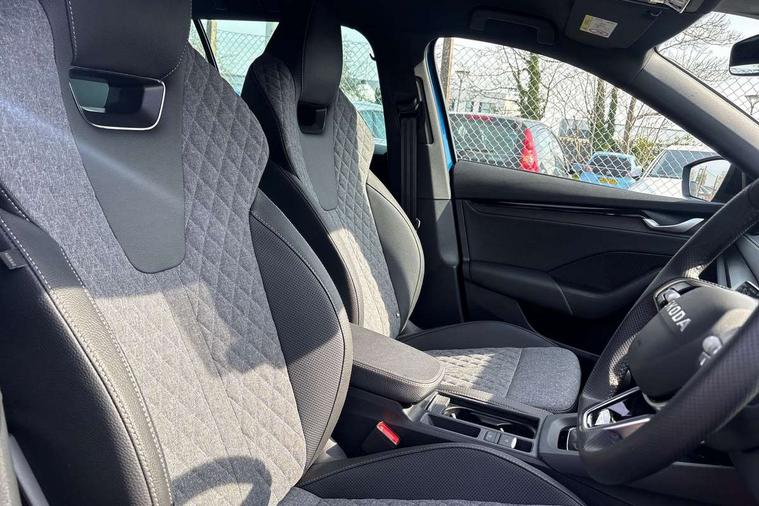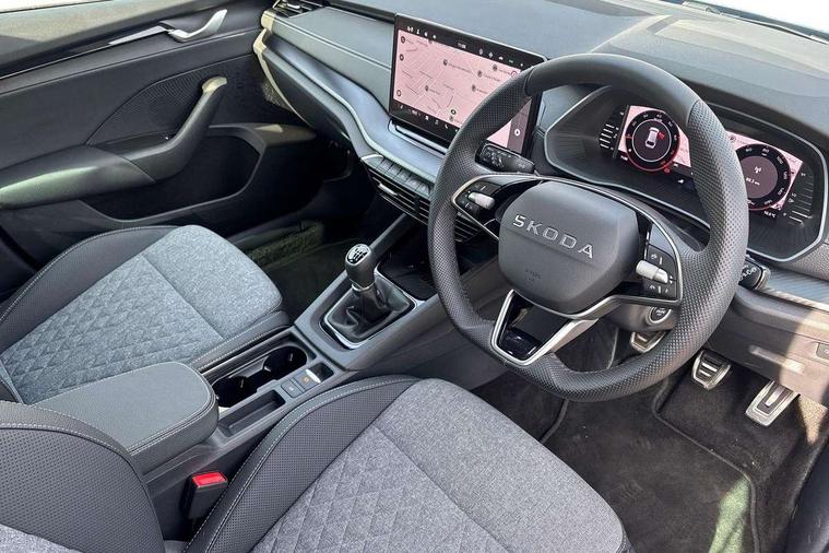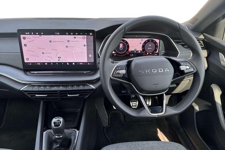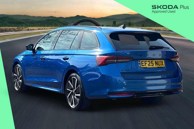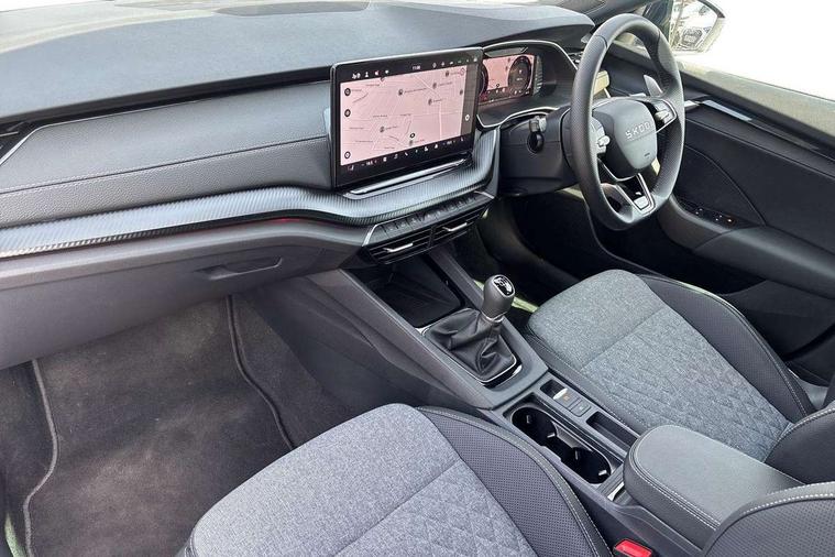 1x USB Typc C port in rear view mirror, 4x USB Type C ports - 2x in front centre console and 2x in rear (45W), Drive mode selection, Driver fatigue sensor, eCall emergency system, Front and rear parking sensors with manoeuvre assist, Front assist system, Progressive dynamic steering, Traffic sign recognition, Turn Assist, Virtual Cockpit - 10.25" digital display, Voice control system, Wireless charging (15W) with cooling function, Wireless SmartLink for Apple CarPlay and Android Auto, Sports suspension with 15mm lower, 13" touchscreen display with navigation, DAB Digital radio, Aero front windscreen wipers with intermittent function, Auto dimming rear view mirror, Body colour bumpers, Body colour door handles, Electric front and rear windows, Exterior gloss black sports styling including front grille, window surrounds, door mirrors and badging, Gloss black diffuser, Gloss black roof rails, Gloss black spoiler, Heated rear windscreen, High beam control, High level third brake light, Ice scraper in fuel cap, LED daytime running lights, Logo projection in front doors, Rain and light sensors, Rear fog light on one side, Rear privacy glass, Rear side wing doors, Rear window wiper, 12 volt socket in boot, 3 rear headrests, 3 seat bench in 2nd row, 4 foldable roof handles, Aluminium pedals, Front head restraints, Front sport seats, Heated front seats, Illuminated glovebox, Interior door handles in dark chrome, Jumbo Box storage, Luggage compartment lighting x2 lights, Mechanical rear seat release from boot, Single front passenger seat, Steering wheel in black leather with black stitching, Storage compartments in left and right of boot, Sun visors with mirrors, Sunglasses storage, Ticket holder, Umbrella in door panel, Unsplit rear bench seat, split folding backrest with centre armrest with cupholder, SportLine Design Selection pack - Octavia, 3x3 point rear seat belts, Alarm with interior monitoring, tilt sensor and back up horn, Curtain airbags and front side airbags, Driver and front passenger airbags, Drivers knee airbag, Electronic parking brake, ESC including ABS, EBV, MSR, ASR, EDS, HBA, DSR, Front central airbag, Hill hold assist, ISOFIX on front passenger seat and outer rear seats, Passenger airbag deactivate switch, Three point seat belts in front and rear, Two tone horn, Tyre pressure monitor, Visual and acoustic seat belt reminder, Warning reflectors in front door, Anti-theft wheel bolts, Keyless start/stop, Remote central locking, Gloss black air vent surrounds,