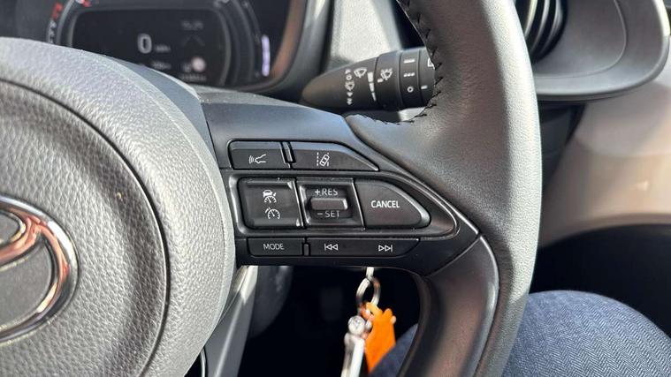 4.2" TFT colour screen, Adjustable speed limiter, Analogue speedometer, Bluetooth connectivity, Digital tachograph, Driver attention alert system, eCall emergency call system, ECO-driving indicator, Electric power steering, Intersection turn assist, Key reminder warning, Noise reduction kit, Pre collision system with emergency steering assist, Reversing camera with static guide lines, Smart phone integration with Apple car play/Android Auto, Speed limit display, Start and stop, Vehicle Stability Control (VSC), 4 speakers, 9" HD multimedia display touch screen with Toyota smart connect, DAB digital audio broadcast, USB connector, Auto headlights, Automatic headlights cut-off, Bicycle towing hook, Black lower front grille, Black rear bumper, Black side protection mouldings, Black upper front grille, Black wheel arch mouldings, Body colour door handles, Body coloured front bumper, Boot door scuff plate, Electric heated door mirrors, Follow me home headlights, Front power windows, Gloss black door mirrors, Headlight cut-off reminder, LED daytime running lights, LED front light guide, LED High mounted stop lamp, Manual day/night rear view mirror, Manual headlight levelling, Pagoda roof, Power adjustable door mirrors, Power back door, Projector halogen headlights, Rain sensor, Rear combination lights LED bulb type, Rear side wing doors, Rear windscreen defogger, Rear windscreen wiper, Short antenna, Variable intermittent windscreen wipers, 12v power outlet - front, 2 seat bench in 2nd row, 3 spoke leather steering wheel, 50/50 split folding rear seat, Adhesive roof headlining, Adjustable speed limiter switch on steering wheel, Audio and telephone switches on steering wheel, Black insert on steering wheel, Boot light, Centre room light, Chrome interior door handles, Chrome surround on air conditioning buttons, Clean air filter, Fabric upholstery, Floor mats, Front and rear cup holders, Front head rest deco art, Front head restraints, Gear shift indicator, Height adjustable driver seat, Intelligent adaptive cruise control switch on steering wheel, ISOFIX child restraint system on rear seats, Lane departure alert switch on steering wheel, Leather gearshift knob, Light grey roof lining, Manual air conditioning, Manual tilt steering wheel, Manually reclining and sliding driver seat, Manually reclining and sliding front passenger seat, Multimedia switches on steering wheel, Pollen filter, Rear door pockets, Rear head restraints, Resin console box storage, Satin silver insert on gear shift knob, Silver stitching on gear shift knob, Single compartment glovebox with lights, Single front passenger seat, Soft tonneau cover, Sun visors with mirror on driver and passenger side, Voice recognition switch on steering wheel, Toyota safety sense pack - Aygo X, Anti lock braking system + Electronic brake force distribution, Child safety door lock, Emergency brake light signal (EBS), Hill start assist control (HAC), Passenger airbag on/off switch, Seat belt reminder for front and rear seats, Supplement restraints system (SRS) - 6 airbags, Traction control, Tyre pressure warning system, Immobiliser, Remote power door locks, Black air vent surround, Black wheel centre caps, Tyre repair kit,