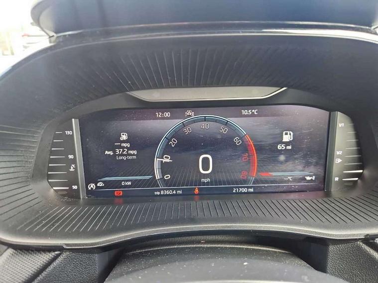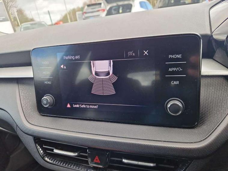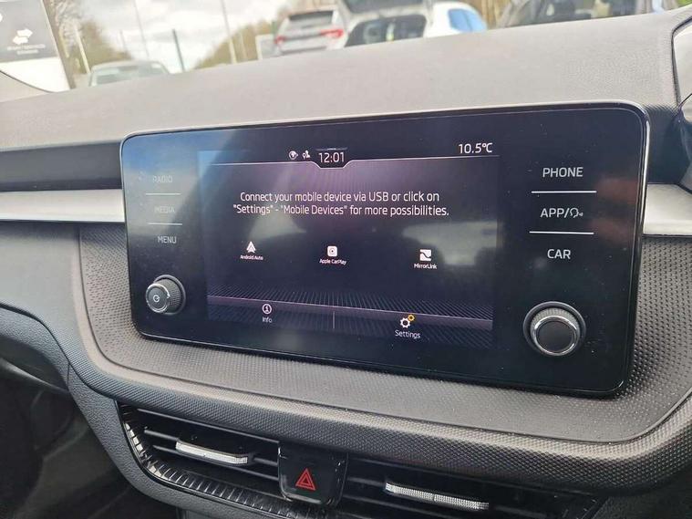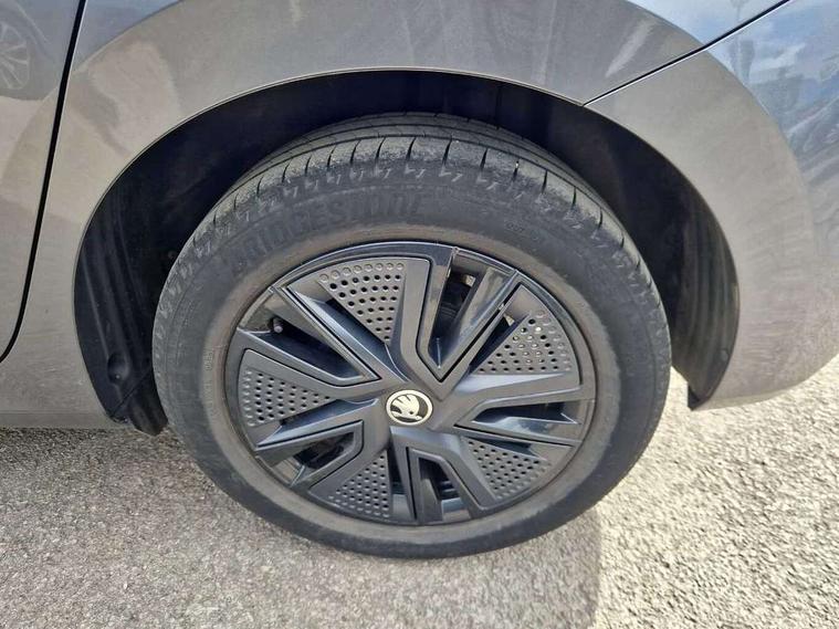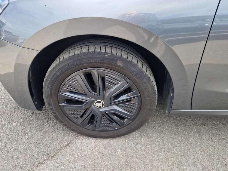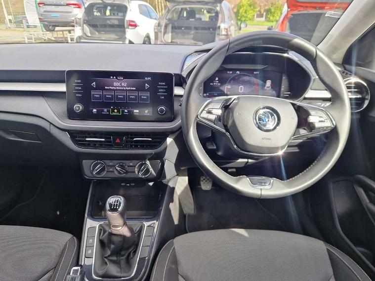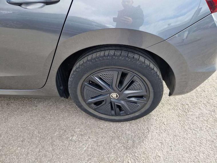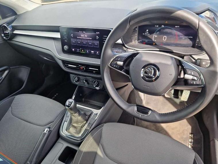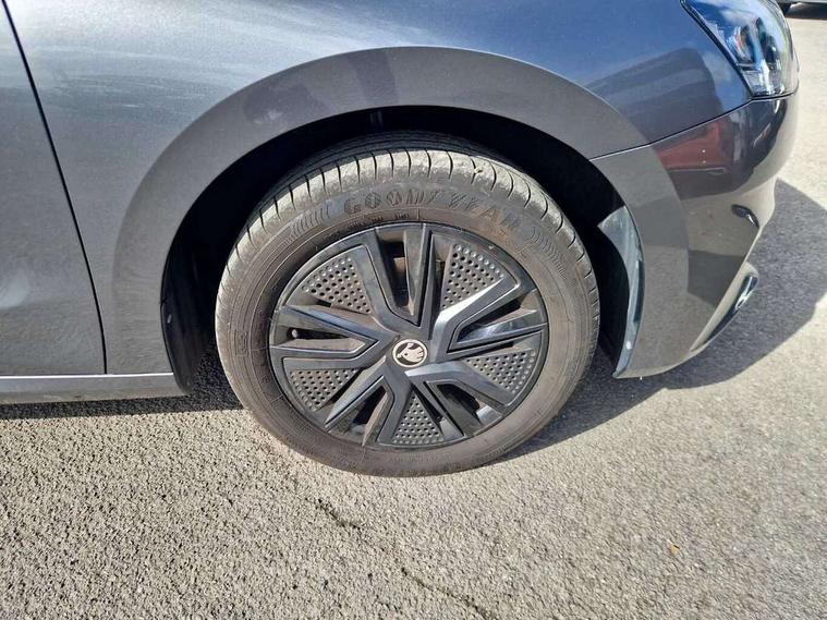 Bluetooth connection, Driver alert system - DAS, Electromechanical power steering, Exterior temperature gauge, Lane assist including road edge detection, Service interval indicator, Virtual cockpit with 10.25" colour display, 2x USB-C in the front (for data transmission and charging), 6 Speakers (4 in front and 2 in rear), Auxiliary socket for external MP3 player, Bolero radio with 8" colour display, DAB digital radio reception, Basic rear lights, Body coloured bumpers, Dimming rear view mirror with black frame, Door mirror integrated indicators, Electrically adjustable and heated door mirrors, Electrically adjustable front windows with function auto up/down, Front window wiper intermittent control, Headlight range control - Automatic, Ice scraper in fuel cap, LED daytime running lights with coming and leaving home feature, Mechanical adjustable rear windows, Privacy glass, Rear LED fog light, Rear side wing doors, Rear window wiper with washing nozzles, Roof colour door mirrors, Roof mounted spoiler, SKODA tailgate lettering in chrome, Third brake light, 3 rear headrests, Backrest split and folding, Central console with fixed cup holder and storage box, Chrome handbrake release button, Fabric upholstery, Gearshift knob/handle in leather, Grain satin black interior door handles, Hand brake lever handle in leather, Height adjustable front headrests, Height adjustable steering wheel, ISOFIX and TopTether anchorage points to the outer rear seats, ISOFIX and TopTether on the front passenger seat, Luggage compartment lighting, Pollen filter, Rear seat bench unsplit, Single front passenger seat, Storm grey headlining, Sun visors with mirror and airbag label on passenger side, Ticket holder, Umbrella in drivers door, 3-point height adjustable front seats belts with pretensioner and force limiter, Automatic warning lights in case of crash, Driver and passengers airbag with switch off function, e-Call+, ESC including ABS, MSR, ASR, EDS, HBA and XDS, Front and rear seat belt warning, FRONT ASSIST (AEB City and AEB Inter Urban), Front side airbags, Head airbags, One tone horn, Pedestrian protection, Three rear 3-points safety seat belts with pretensioner and force limiter including stop function for outer rear seat belts, Tyre pressure monitoring system, Anti-theft alarm system including immobiliser, interior monitoring, backup horn, and towing protection, Anodized cross line upper decorative trim, Colour Edition air vents, Grain satin black central console cover, Grain satin black lower decorative trim, Satin black door and side trim panel in front, Anti-theft wheel bolts protection, Super-low rolling resistance tyres,