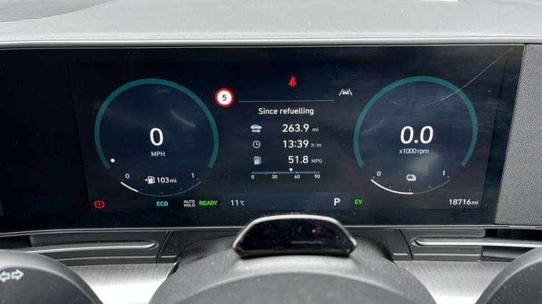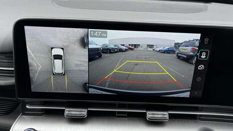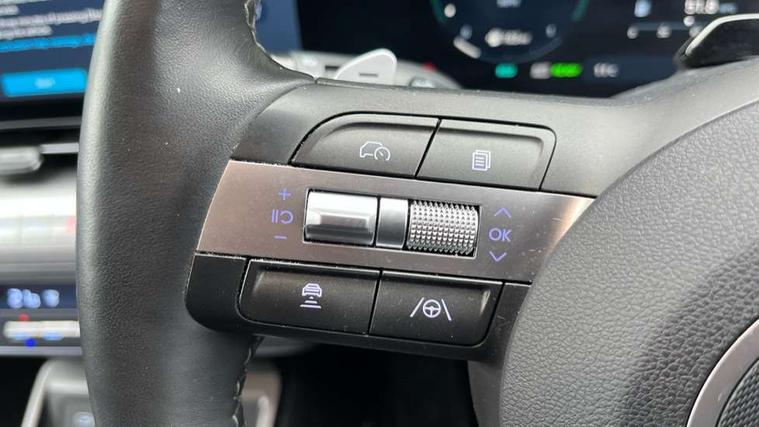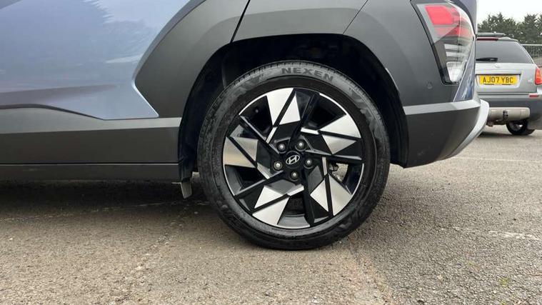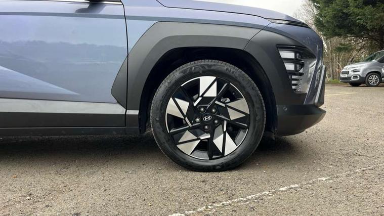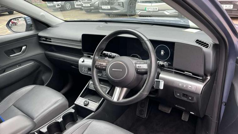 12.3" touchscreen centre console display satellite navigation with bluelink, live services and mapcare, Blind spot collision avoidance assist, Blind spot view monitor, Bluetooth connectivity with voice recognition, Digital clock, Driver status monitor (DSM), Driver supervision instrument cluster with 12.3" LCD display, eCall emergency call system, Feature on demand - Enabled, Forward collision avoidance assist (FCA 1.5) - Car, pededstrian, cycle and junction turning, Front parking sensor, HDA - Highway Drive Assist Level 1.5, Height adjustable power tailgate, Intelligent speed limit assist, Lane follow assist, Lane keep assist, Leading vehicle departure alert (LVDA), Parking Collision Avoidance Assist-Reverse (PCA-R), Parking distance warning - side, Parking system with rear camera and guidance system, PAS, Rear cross traffic collision avoidance (RCCA), Rear parking sensor, Roadside assistance, Safe exit warning (SEW), Smart cruise control with stop and go functionality, Smartphone integration compatible with Apple CarPlay and Android Auto, Surround view monitor, Windscreen washer fluid sensor and warning indicator, Wireless phone charging pad, 2 front USB C and 2 rear USB C charging points, Bose Premium Audio system with 7 premium speakers + subwoofer, DAB Digital radio, Steering wheel audio, phone and cruise controls, Auto dimming rear view mirror, Automatic headlights with dusk sensor, Automatic windscreen wipers with rain sensor, Black painted wheel arch inserts, Body colour bumpers, Body colour exterior door handles, Body coloured door mirrors, Door mirror LED indicator lights, Electric front windows with anti-trap mechanism and one touch control, Electric rear windows, Electric sunroof, Electrically adjustable and heated door mirrors, Horizon centre LED DRL, LED projector headlights, LED upper and lower rear lights, Power folding door mirrors, Privacy glass - Rear windows and tailgate, Rear roof spoiler with integrated LED brake light, Rear side wing doors, Rear skid plate - silver, Rear wiper, Roof rails, Solar glass with front door glass and windscreen, Tinted glass in front and rear doors, Windscreen auto defog function, 12V power outlet in front console, 2 zone climate control, 3 seat bench in 2nd row, 40/20/40 split folding rear seat, Adjustable head restraints, Ambient lighting, Driver and passenger front seat pockets, Driver's seat electric adjustments, Driver's seat lumbar support, Driver/passenger sunvisors and illuminated vanity mirrors, Floor mats, Front passenger's seat electric adjustments, Heated front seats, Heated rear seats, Heated steering wheel, Height/reach adjustable steering column, Isofix rear child seat fastenings, Leather upholstery, Leather wrapped steering wheel, LED centre interior light, LED front interior light, Luggage compartment LED lighting, Luggage net, Luggage shelf, Metal paint effect interior door handles, Parcel shelf, Rear centre armrest, Rear centre console with air vents, Shift by wire SBW, Single front passenger seat, Ventilated front seats, Vertical adjustment rear head restraints, Trailer wiring package - Kona, Airbag - front, front side, curtain and centre front airbag, Anti-lock brake system (ABS), Childproof rear door locks, Downhill brake control, EBD + Brake Assist, Electric parking brake, Electronic stability control, Fasten seatbelt reminder, Fixed 3 point for second row centre passenger seatbelt, Front seatbelt pretensioners, Height adjustable front seatbelts, Hill start assist control (HAC), Passenger airbag deactivate switch, Rear seat alert, Traction control, Tyre pressure monitoring system, Alarm/immobiliser, Deadlocks, Folding key, Locking wheel nuts, Remote central locking, Smart key with keyless entry and engine start/stop button, Five year annual vehicle health checks, 18" Alloy wheels, Temporary mobility kit (TMK),