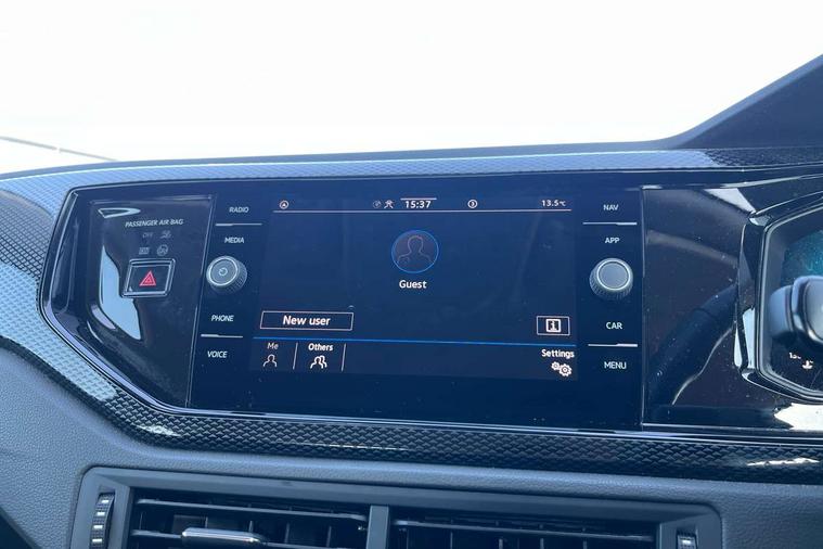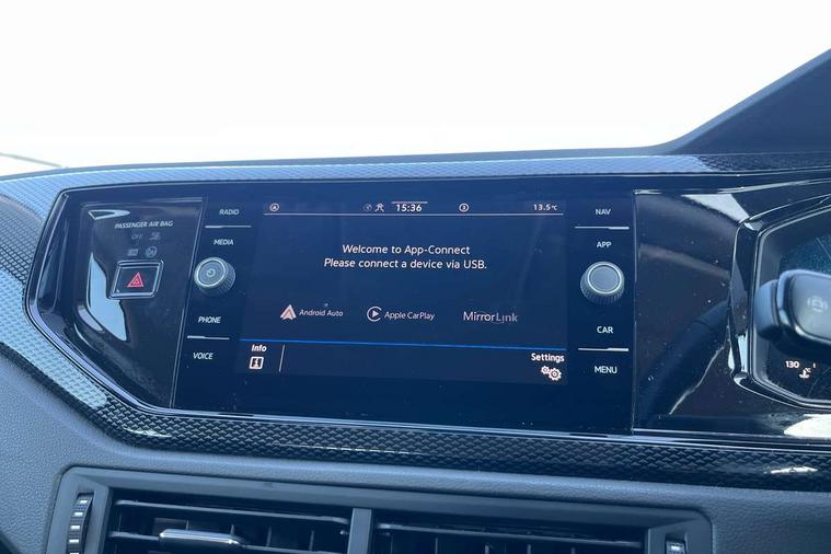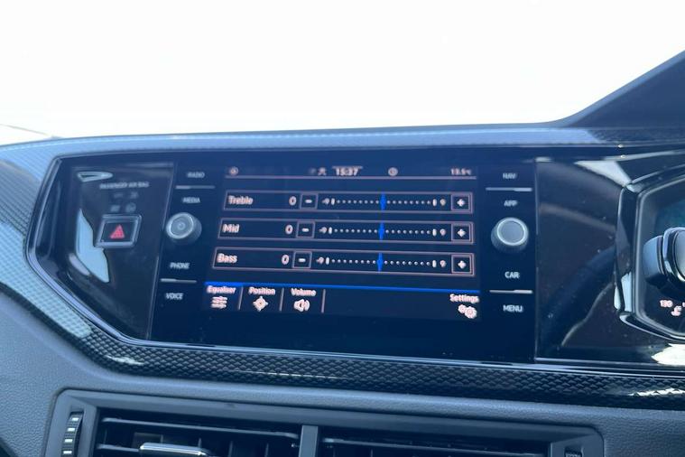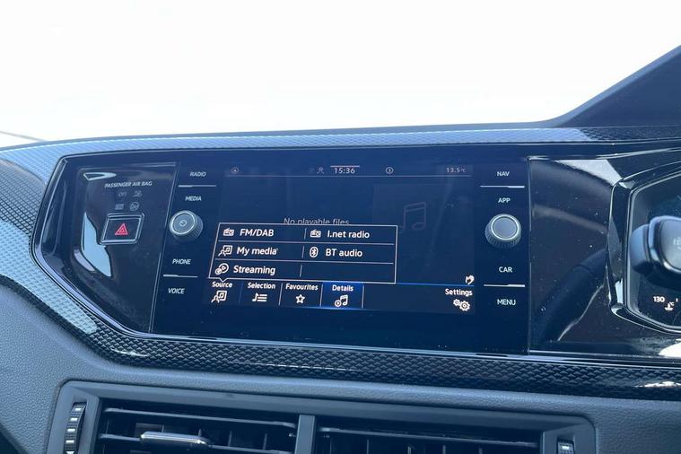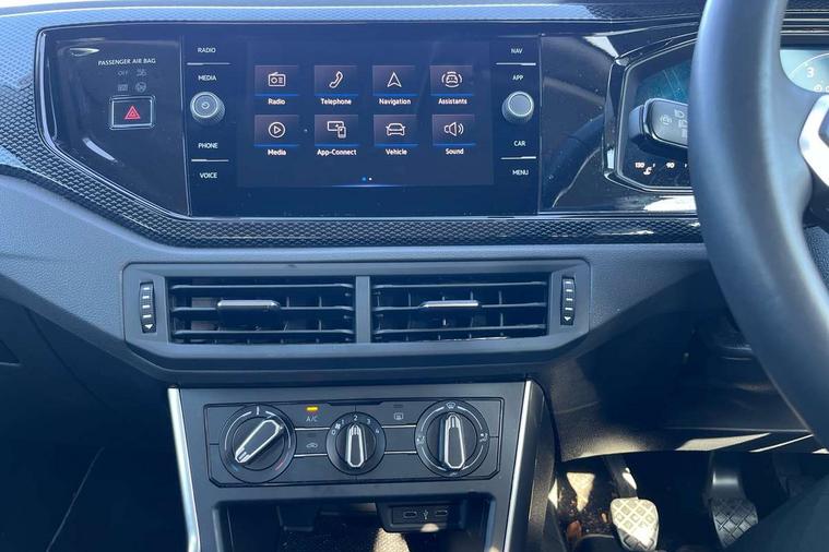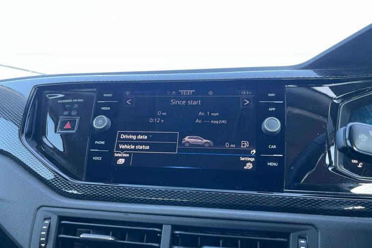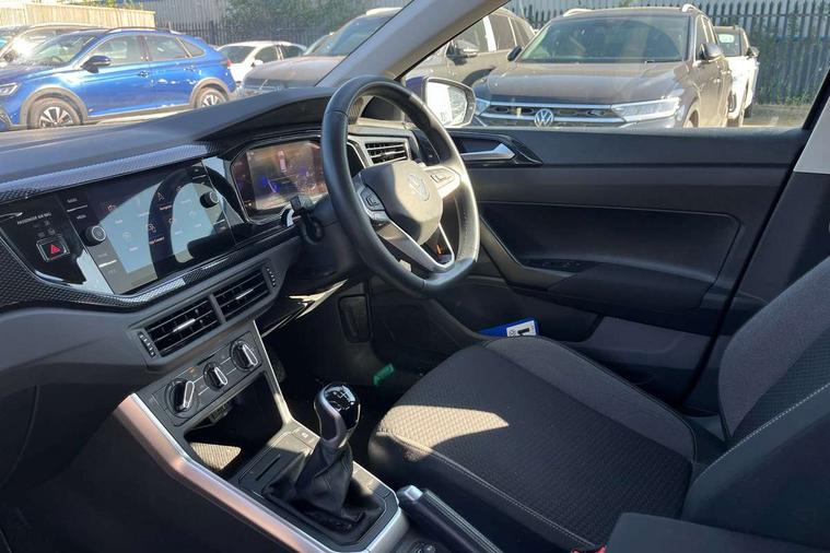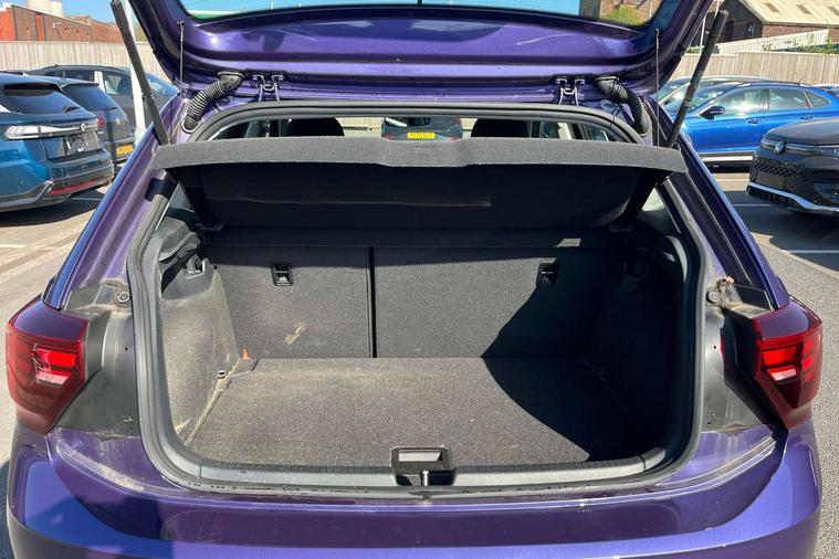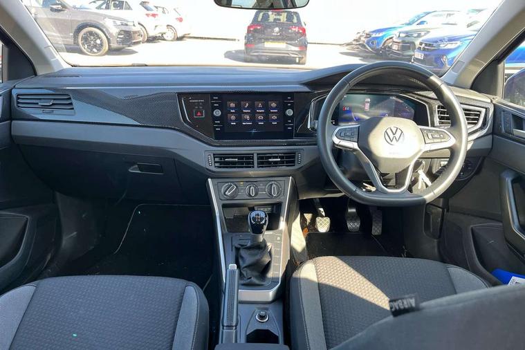 Adaptive cruise control without follow-to-stop and speed limiter, Bluetooth mobile phone interface, Driver alert system, Emergency call service, Front assist system, Power assisted speed sensitive steering, Preparation for We connect and We connect plus, Speedo and rev counter, electronic odometer, trip, service interval display and fuel gauge, Standard rear axle, Travel Assist - Lane keeping system and traffic jam assist, Travel assist including emergency assist, Trip computer, Warning signal and warning light for front and rear seatbelts not fastened, Washer fluid level indicator, Wireless app connect, Front wheel drive, Rear shock absorpion, Start-stop system with battery regeneration (recuperation - energy recovery during braking), DAB Digital radio, Diversity antenna for FM reception, Front and rear 6 speakers, Automatic dimming interior rear view mirror, Body colour bumpers, Body colour door handles, Body colour door mirrors, Electric front windows, Heat insulating darkened glass in side and rear windows, Heat insulating glass windscreen, Power folding adjustable/heated exterior mirrors and front passenger exterior mirror lowering function, Rain sensor, Rear electric windows, Rear fog light, Rear side wing doors, Rear windscreen washer and wiper with interval delay, Third brake light, 12V power socket in centre console, 2 front and 2 rear reading lights, 2 USB-C ports in the front, 2 USB-C charging sockets on the center console in the rear, 3 rear head restraints, 60/40 split folding rear seat and rear seat bench not split, Ceramique headliner, Chrome plated radiator grille inserts, air vent surrounds and light switch surrounds, Door and side trim panel, Driver and front passenger seat height adjustment, Driver/passenger sunvisors with illuminated vanity mirrors, Front centre armrest, Front seat backrest storage pockets, Front standard seats, Handbrake lever handle in leather, Hartley/Thomas cloth upholstery, Isofix child seat preparation easy-fit (for two outer rear seats, and front passenger seat) compatible with I-size, Leather trimmed gear knob, Luggage compartment cover, Luggage compartment floor, Luggage compartment lighting, Multifunction steering wheel, Single front passenger seat, Standard pedal cluster, Light and vision pack - Polo, 3 point height adj front seatbelts + pretensioners, 3x3 point rear seatbelts, ABS, Driver and front passenger airbag with front passenger airbag deactivation, Drivers and front passengers safety optimised head restraints, ESC (Electronic stability control) + EDL (Electronic Differntial lock) and ASR (Traction control), Extended and predictive pedestrian/ cyclist protection, Front curtain and side airbags with center airbag, Front disc brakes, Hill hold control, Manual child lock in rear doors, Rear drum brakes, Single tone horn, Tyre pressure loss indicator, Alarm with interior protection, Anti-theft alarm system with interior monitoring, backup horn, and towing protection, Anti-theft wheel bolts, Electronic engine immobiliser, Lava stone black gloss/matt decorative inserts in dash and front door panels, Low rolling resistance tyres,