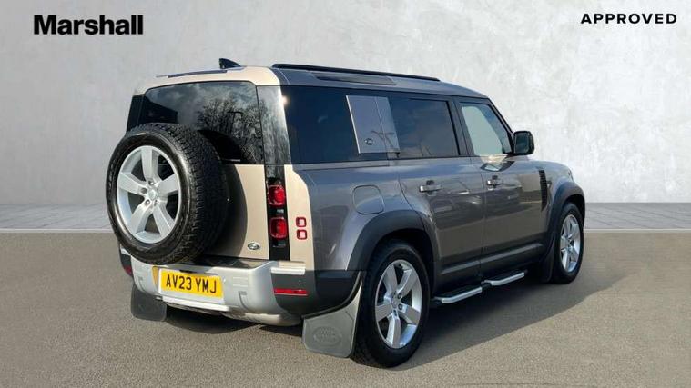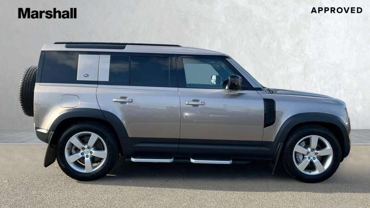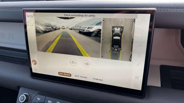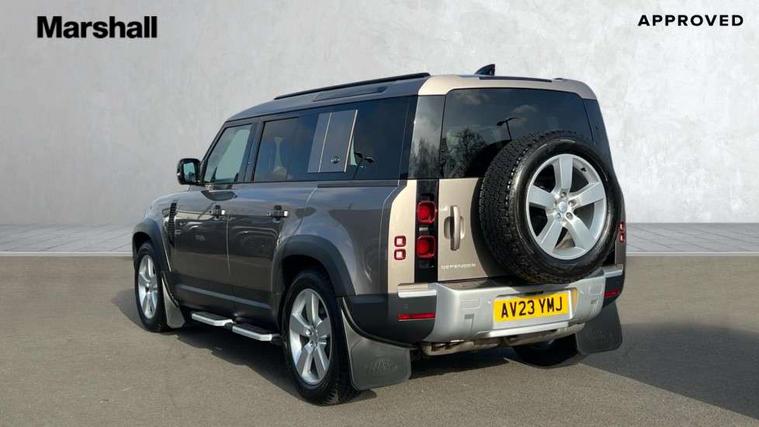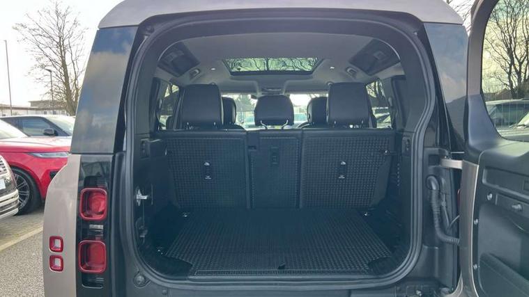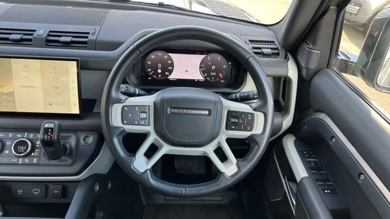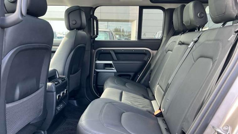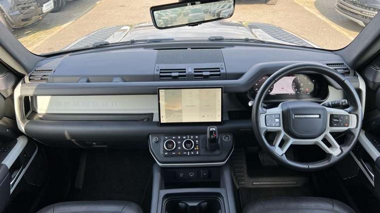 11.4" touchscreen, 360 degree parking aid, 3D Surround Camera with 360 View, 180 Rear View, Front Traffic Detection, Forward Vehicle Guidance, Tow Hitch Assist and clear sight Ground View, Adaptive cruise control, Android Auto, Apple CarPlay, Assisted tailgate with soft close, Blind spot assist, Bluetooth system, Brake pad wear indicator, Clear exit monitor, Connected navigation pro, Driver condition monitor, Electric power assisted steering (EPAS), Interactive driver display, Lane keep assist, Push button start, Rear collision monitor, Rear traffic monitor, Traffic sign recognition with adaptive speed limiter, Trip computer, Wade Sensing, 8 speed automatic transmission, All wheel drive system, Twin speed transfer box, DAB Radio (Digital Audio Broadcasting), Meridian 400w sound audio system with 11 speakers and subwoofer, Pivi pro connected, Automatic headlight levelling, Automatic headlights, Centre high mounted stop light, ClearSight interior rear view mirror, Electric heated/power fold door mirrors with approach lights and auto dimming driver side, Electric windows with one touch open/close and anti-trap, Follow me home lighting, Front fog lights, Heated rear window with timer, Heated windscreen, LED tail lights, Puddle lights, Rain sensing windscreen wipers, Rear fog lights, Rear side wing doors, Rear wiper, Side hinged tailgate, Trailer stability assist, 12V power socket in loadspace, 14 way heated and cooled electric adjustable memory front seats with 4 way manual headrests, 3 seat bench in 2nd row, Alpine lights, Configurable cabin lighting, Durable rubber cabin flooring, Durable rubber loadspace flooring, Electric reach + rake adjustable steering column, Extended leather upgrade, Footwell lights, Front passenger isofix child seat attachment, Heated steering wheel, Loadspace cover, Loadspace Hook, Multifunction steering wheel, Overhead stowage for sunglasses, Premium cabin lighting, Rear headrests, Rear ISOFIX, Rear reading lights, Single front passenger seat, Standard seat configuration, Storage glovebox, Sunvisors with illuminated vanity mirrors, Online pack with data plan - Defender, 5 x 3 point seatbelts, ABS, Brake hold function, Cornering brake control (CBC), Customer configurable autolock, DSC - Dynamic Stability Control, EBD - Electronic brakeforce distribution, Electric parking brake (EPB), Emergency brake assist, Emergency braking, ESP + traction control, Front airbags with passenger seat occupant detector, HDC - Hill descent control, Hill launch assist, Low traction launch, Power operated child locks, Remote for (e-Call, Optimised assistance call, InControl app, Climate, beep and flash and door), RSC - Roll stability control, Seat belt reminder, TPMS (Tyre pressure monitoring system), Alarm, Immobiliser, Intrusion sensor, Keyless entry, Locking wheel nuts,