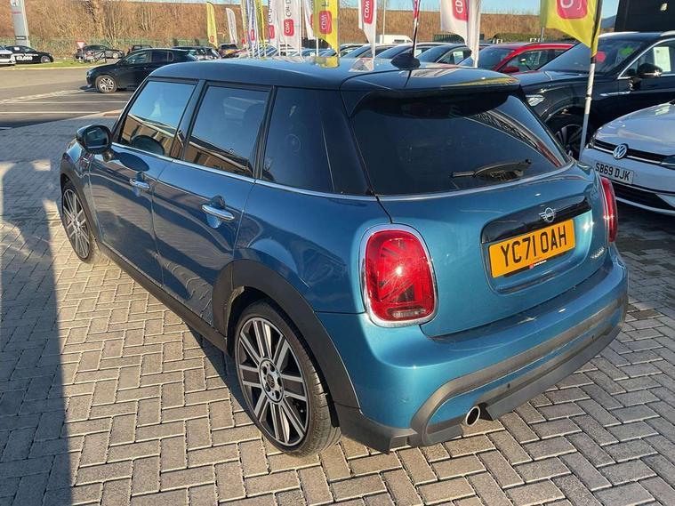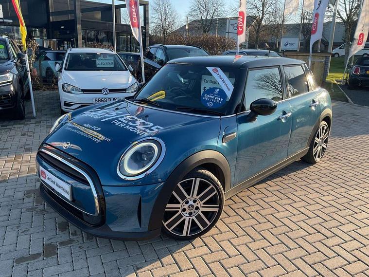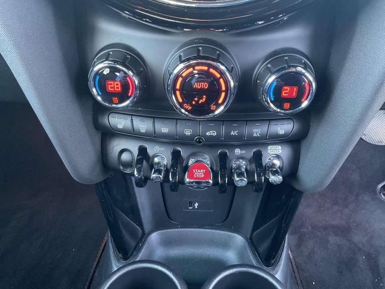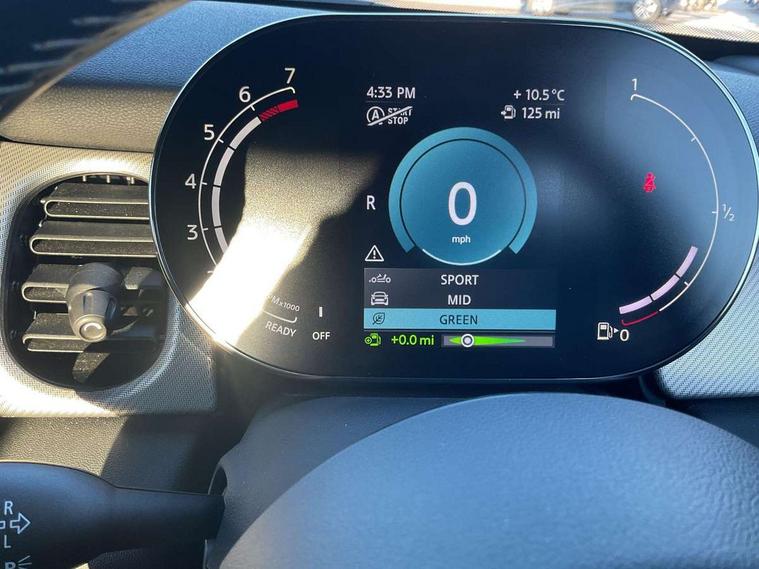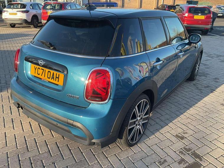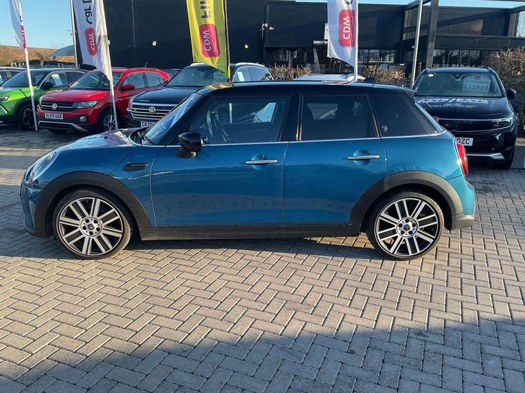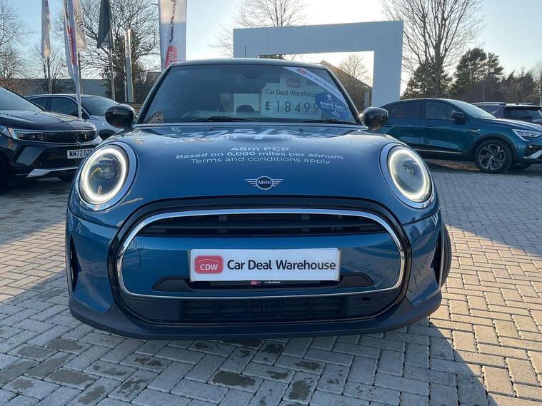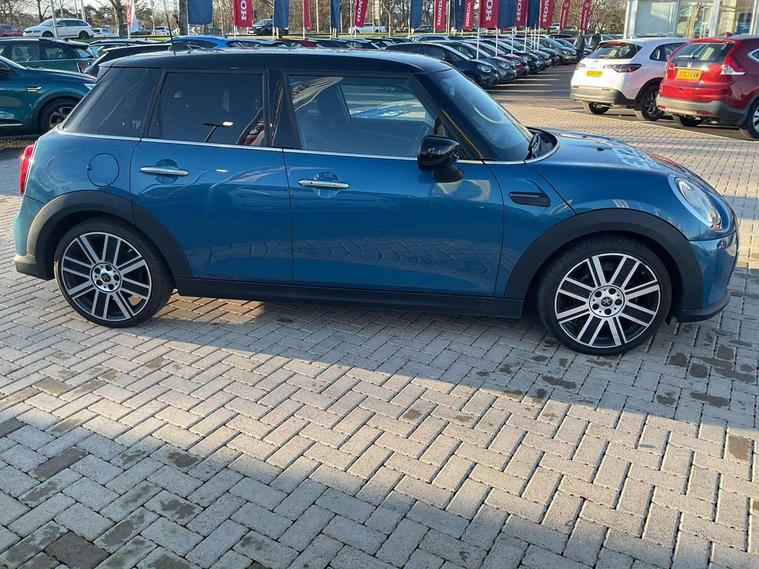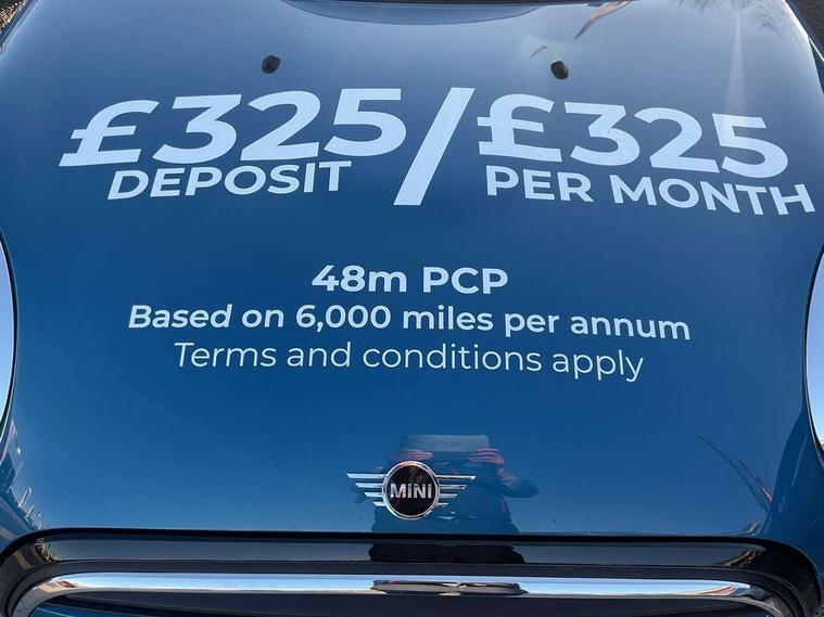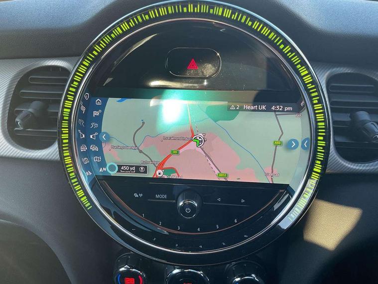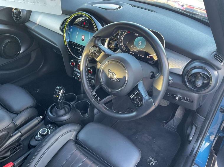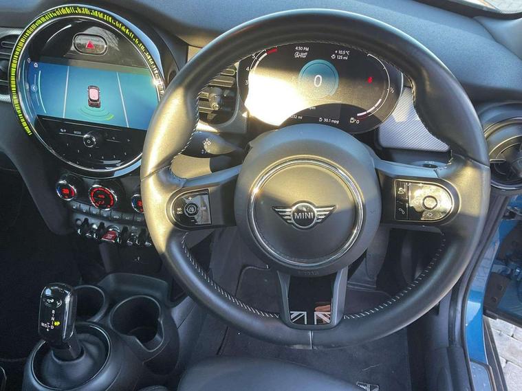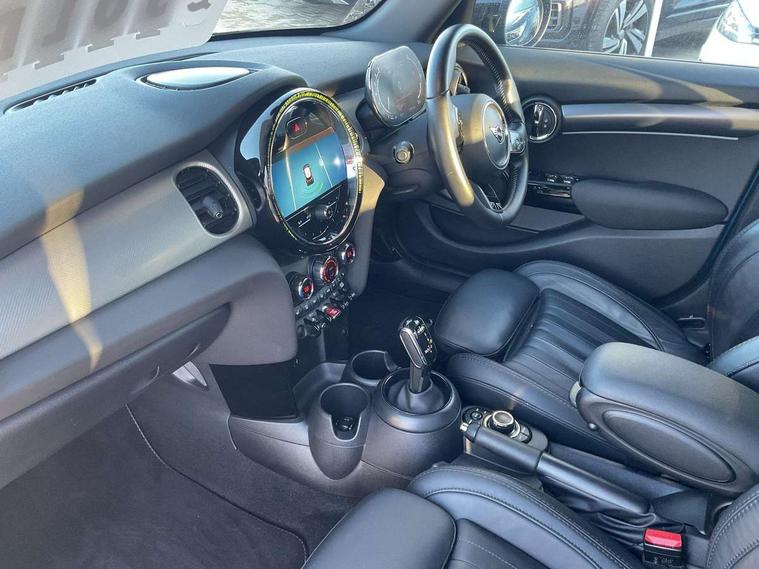 Automatic start/stop function with brake energy recuperation, Compatible mobile phone bluetooth with audio streaming, Cruise control with brake assist, Electro-mechanical speed dependant steering assistance, Flexible car sharing preparation, Instrument cluster, MINI Driving Modes - centre toggle switch to control driving setting (sport, mid and green), Mini E-call, MINI TeleServices, On board computer, Rear park distance control, Service interval indicator, Double Vanos system, Fully variable valve control, Gear change indicator display, High precision injection, Performance Control, Steptronic transmission with double clutch, 6 speakers in front door trims and underneath front seats, 8.8" touchscreen with LED ring, FM tuner and DAB digital radio, Automatic headlight activation switch, Body colour fuel filler cap, Chrome line exterior - radiator grille bars, tailgate handle, lower front grille grating and rear central fog-light, Dynamic brake lights, Electric front+rear windows, Heated rear window, Heated windscreen washer jets, LED headlight with closed ring and daytime driving lights, Metal door sill strips with MINI imprint, Model logo Cooper on right of tailgate, Rain sensor window wipers, Rear fog lights, Rear LED lights with union jack design, Rear window wiper, Side scuttle panel with integrated indicator, Sun/heat protection glass, White indicator lenses, 12V Accessory socket in centre console, 4 lashing eyes in luggage compartment, 60/40 split folding rear seat, Anthracite headliner including grab handles and clothes hooks, Carbon black colour line - Knee roll and door armrest, Chrome interior highlights, Chrome line interior - air vents, gear lever base, door handles and speakers in doors, Cupholders, Front and rear head restraints, Front and rear isofix with front passenger airbag deactivation, Glove compartment, Height and length steering column adjustment, Interior lighting with 12 different colours across the dashboard, underneath door bezel with illuminated laser-engraved design on central display, Leatherette gearshift lever and handbrake gaiters, LED reading lights, vanity mirror lights, front foot well light and spotlight on front seats, Manual air conditioning, Mechanical seat adjustment - forward/back & backrest for front seats and driver seat height adjust, MINI yours badge on exterior pillar, Multifunction steering wheel, Storage compartments in doors, Sunvisors with vanity mirrors, Tool kit, Velour floor mats, Walknappa leather steering wheel with grey seam and MINI Yours badge on Piano Black lower steering wheel spoke, 3 point seatbelts on all five seats, 6 Airbags - front, side, head and seat belt tensioners, Anti-lock braking system (ABS), DSC - Dynamic Stability Control, Front and rear disc brakes, Hill start assist, Single tone fanfare horn, Tyre pressure monitoring system, Alarm system with tilt sensor, monitoring doors, bonnet interior and tailgate, Electronic vehicle immobiliser, Start/stop toggle with keyless go,