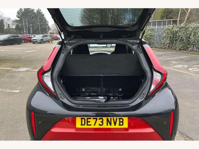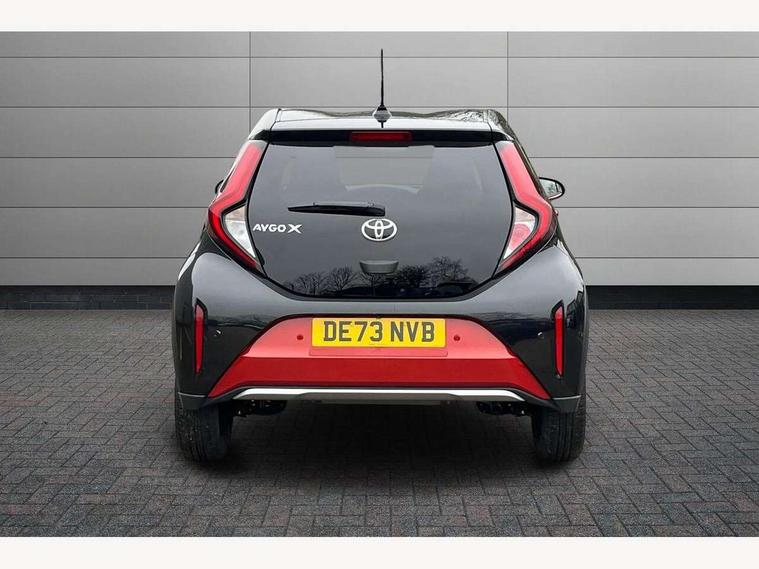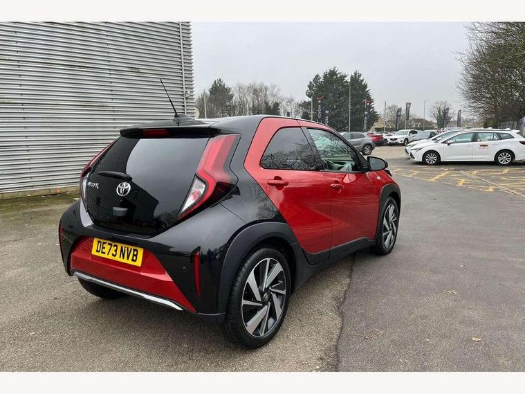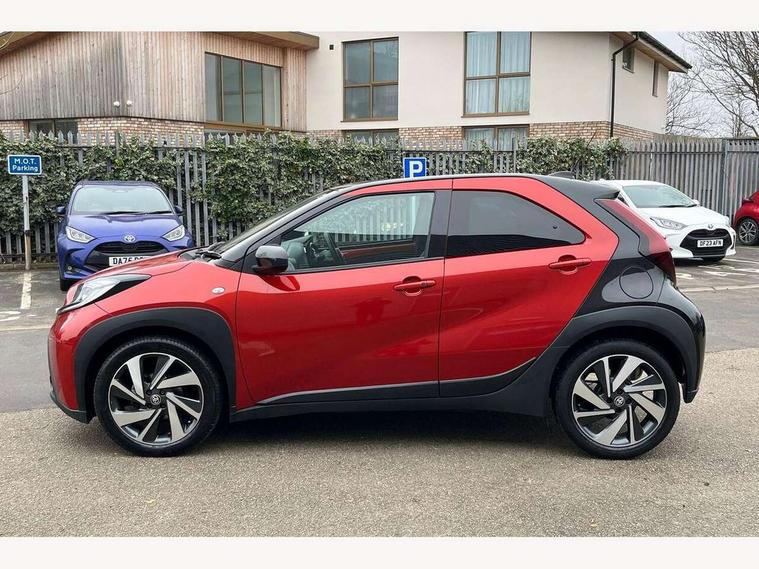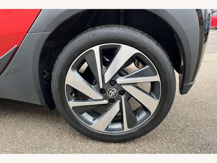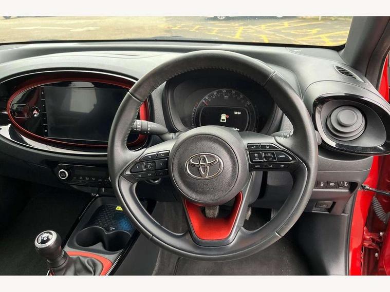 4.2" TFT colour screen, Adjustable speed limiter, Analogue speedometer, Bluetooth connectivity, Digital tachograph, Driver attention alert system, eCall emergency call system, Electric power steering, Front and rear parking sensors with auto brake, Intersection turn assist, Key reminder warning, Noise reduction kit, Pre collision system with emergency steering assist, Remote boot door release on key, Reversing camera with static guide lines, Smart entry and push button start, Speed limit display, Start and stop, Wireless charger, Wireless Smartphone Integration includes Apple CarPlay and Android auto, Vehicle Stability Control (VSC), 4 speakers, 9" HD multimedia display touch screen with Toyota smart connect, DAB digital audio broadcast, USB connector, Auto headlights, Auto wipers, Automatic headlights cut-off, Automatic high beam On/Off switch, Bicycle towing hook, Black fog light surrounds, Black side protection mouldings, Black wheel arch mouldings, Body colour door handles, Body coloured front bumper, Boot door scuff plate, Eclipse black rear bumper, Electric heated door mirrors, Follow me home headlights, Front and rear underruns in silver, Front fog lights, Front power windows, Gloss black door mirrors, Gloss black upper front grille, Headlight cut-off reminder, LED daytime running lights guide, LED front light guide, LED High mounted stop lamp, LED projector headlights, Manual day/night rear view mirror, Manual headlight levelling, Pagoda roof, Power adjustable door mirrors, Power back door, Privacy glass, Rain sensor, Rear combination lights LED bulb type, Rear side wing doors, Rear windscreen defogger, Rear windscreen wiper, Remote hazard lights system, Short antenna, Variable intermittent windscreen wipers, 12v power outlet - front, 2 seat bench in 2nd row, 3 spoke leather steering wheel, 50/50 split folding rear seat, Adhesive roof headlining, Adjustable speed limiter switch on steering wheel, Audio and telephone switches on steering wheel, Auto air conditioning, Black roof lining, Body colour satin anodised insert on steering wheel, Boot light, Centre room light, Chrome interior door handles, Chrome surround on air conditioning buttons, Clean air filter, Console box storage, Floor mats, Front and rear cup holders, Front head rest deco art, Front head restraints, Height adjustable driver seat, Intelligent adaptive cruise control switch on steering wheel, ISOFIX child restraint system on rear seats, Lane departure alert switch on steering wheel, Leather gearshift knob, Light blue ambient lighting in centre console, Manual tilt steering wheel, Manually reclining and sliding driver seat, Manually reclining and sliding front passenger seat, Multimedia switches on steering wheel, Partial synthetic leather upholstery, Pollen filter, Rear door pockets, Rear head restraints, Satin silver insert on gear shift knob, Single compartment glovebox with lights, Single front passenger seat, Soft tonneau cover, Sun visors with mirror on driver and passenger side, Voice recognition switch on steering wheel, Toyota safety sense pack - Aygo X, Anti lock braking system + Electronic brake force distribution, Child safety door lock, Emergency brake light signal (EBS), Hill start assist control (HAC), Passenger airbag on/off switch, Seat belt reminder for front and rear seats, Supplement restraints system (SRS) - 6 airbags, Traction control, Tyre pressure warning system, Immobiliser, Remote power door locks, Black wheel centre caps, Tyre repair kit,