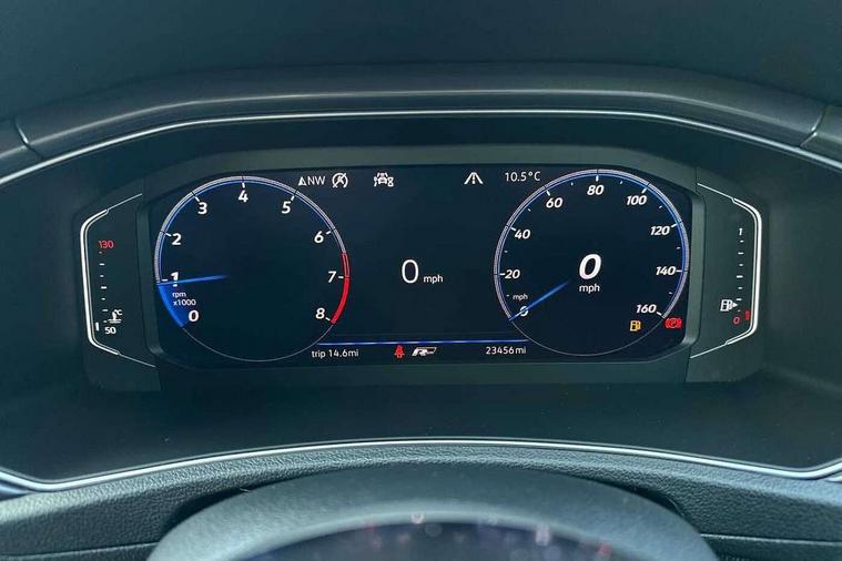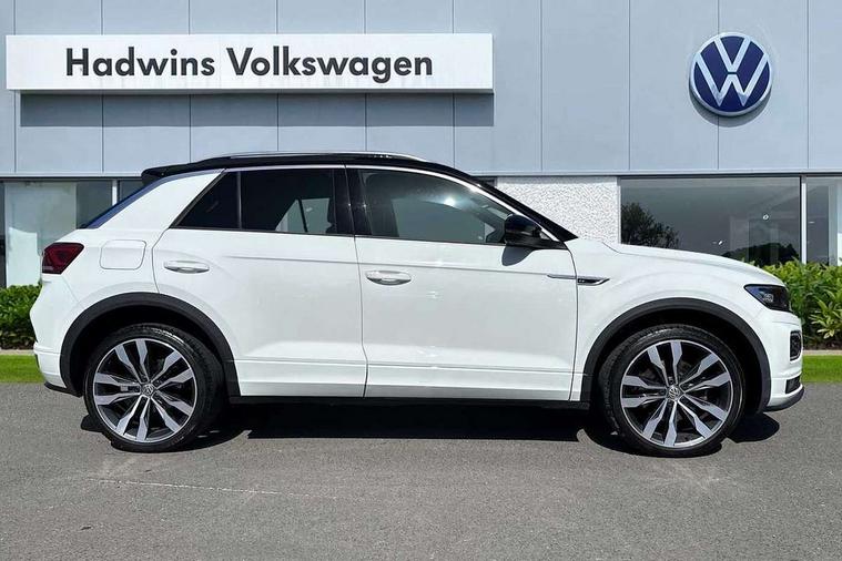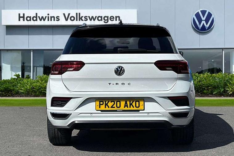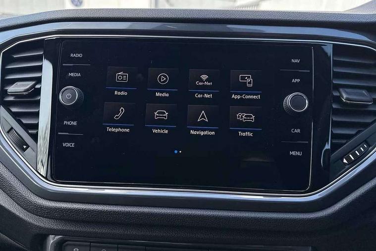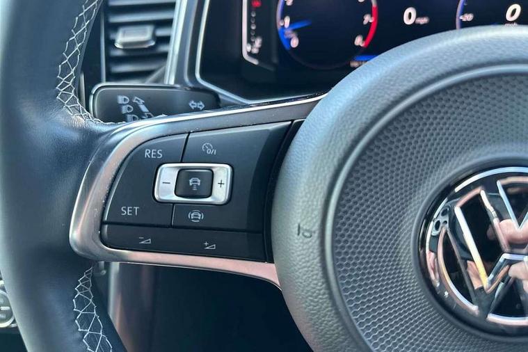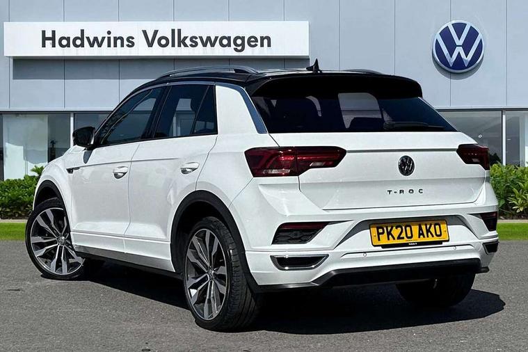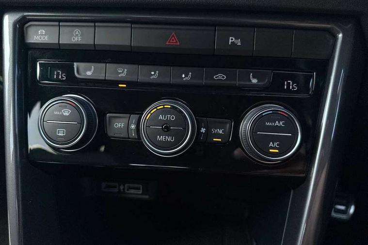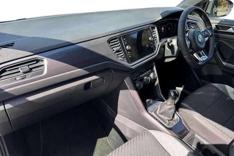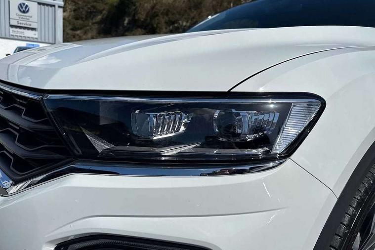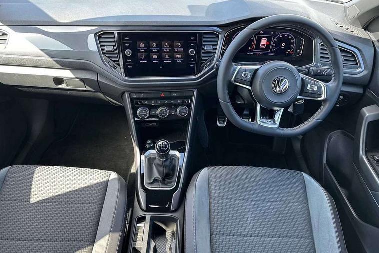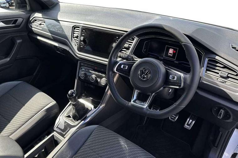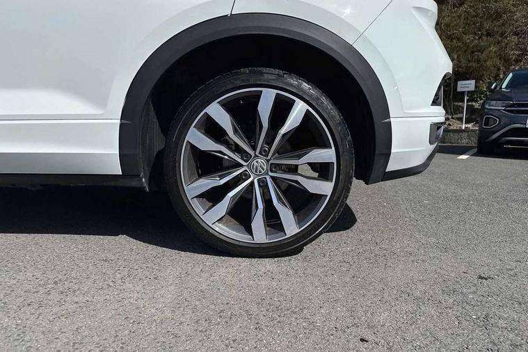 App-Connect, 'Lights On' Reminder warning buzzer, 2 USB connection charging sockets, Active Info Display, 10.3" high resolution TFT dash display screen with customised information, Adaptive cruise control with front assist, radar sensor controlled distance monitoring, city emergency braking, Automatic start/stop system, Bluetooth telephone and audio connection for compatible devices, Car information display, Car-Net Security and Service, Discover navigation, 8" touch screen navigation/infotainment system with Car-Net, European map, CD/radio, 2D/3D map and speed limiter, Driver alert system with audible and visual fatigue detection system, Driver tips and journey analysis, Driving profile selection - Eco, normal, sport or individual modes with Individual mode allows for steering, drive and air conditioning settings, Dusk sensor, Lane assist, Multifunction computer with visual gear change recommendation for fuel consumption, Service interval indicator, Think blue trainer driver tips and journey analysis, Voice activation, Warning sound and light for doors and tailgate open, Warning sound and light for front seatbelts unfastened, Battery regeneration during braking, DAB Digital radio, Dynamic navigation based on TMC+, Multi device interface (MDI) with USB connection, Music playback - MP3, WMA and AAC files, Premium USB cable in choice of either Apple or Android smartphone compatibility, SD card slot, Simultaneous pairing of 2 compatible mobile devices, SMS functionality - read, compose and send SMS messages using touch-screen display, Three route options - Fast, Short, Eco, Title and cover art display, Auto dimming interior rear view mirror, Automatic hazard lights activation under emergency braking, Black grained lower door protectors, Body colour door handles, Body colour rear roof spoiler, Chrome effect left and right trapezoid exhaust tailpipe fascia surround, Chrome trim on upper and lower radiator grille, Electrically foldable, adjustable and heated door mirrors with puddle lights and reverse activated kerb-view adjustment on passenger's door mirror, Front and rear electric windows, Front fog lights with static cornering function, Front windscreen wiper with intermittent wipe and 4 position delay, Fully galvanised body, Heated rear window, High level 3rd brake light, LED darkened rear light clusters, LED dipped and main beam headlights with automatic range adjustment including signature LED daytime running lights, LED rear number plate lights, Manual coming/automatic leaving home lighting function, Rain sensor, Rear tinted glass from B-pillar backwards approx 65% tinted, Rear wash/wipe with intermittent wipe setting, 12V socket in centre console storage area, 2 Front and rear reading lights incorporating LED technology, 3 rear head restraints, 4 load lashing points in luggage compartment, Aluminium pedals, Ambient lighting in front footwell and light strips below trim in front doors, Black roof lining and sun visors, Branded points of interest, Carbon flag cloth upholstery, Climate control - 2 zone electronic air conditioning with automatic air recirculation and allergy filter, Drawer under drivers seat, Front and rear carpet mats with contrast stitching, Front centre armrest with storage compartment, longitudinal and height adjustable and two rear air vents, Front cupholders x 2, Front footwell illumination, Front seat back storage pockets, Front sports seats with R-Line logo on seat backrest, Glovebox, Height adjustable front seats, Height/reach adjust steering wheel, Illuminated vanity mirrors, Instrument lighting, white adjustable panel illumination, Interior light delay, Isofix easy fit child seat preparation for 2 outer rear seats, Load through provision with single cup holder when folded down, Luggage compartment cover, removable, Luggage compartment lighting, R Line badge, Split folding rear seat backrests with centre armrest, Storage compartment in left and right luggage area, Storage compartment in rear doors, Storage compartments in driver and front passenger doors, Three spoke multi function leather trimmed steering wheel including gear knob with contrast stitching and aluminium inserts and R Line logo, Unique R Line door sill protectors, R line styling pack - T-Roc, Winter pack - T-Roc, 3 rear three point seatbelts, ABS, Curtain airbags, Driver and front passenger safety-optimised head restraints, Drivers and front passengers airbags with passengers deactivation switch, Electronic parking brake with auto hold, Electronic stability control (ESC) includes ASR, EDL, EDTC and trailer stabilisation function, Front seat side impact airbags, Predictive pedestrian protection, Rigid safety cell with front and rear crumple zones, Three point height adjust front seatbelts + pretensioners, Tyre pressure loss indicator, Ventilated front and rear disc brakes, Volkswagen roadside assistance, Alarm with interior protection and deactivation via infotainment system, Electronic engine immobiliser, Remote central locking with 2 remote folding keys, Shadow steel decorative inserts in dash and door panel, 19" Suzuka alloy wheels with low rolling resistance tyres and anti wheel bolts, Space and weight saver spare wheel,