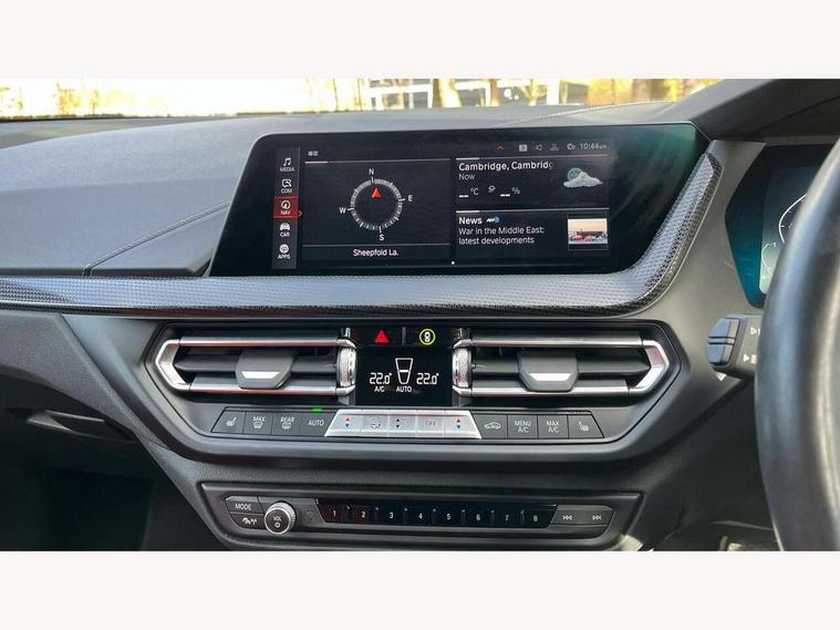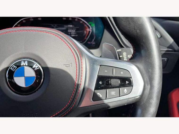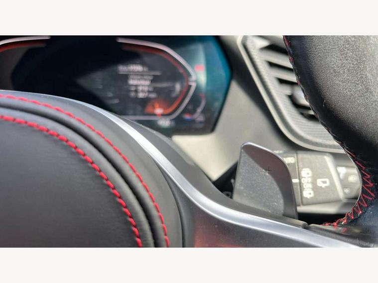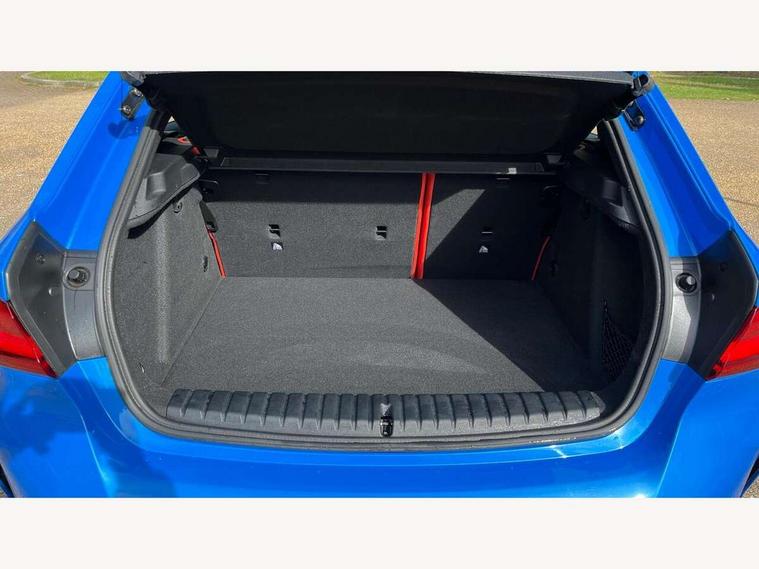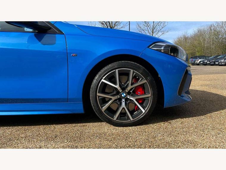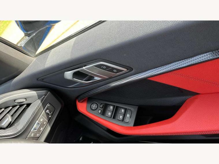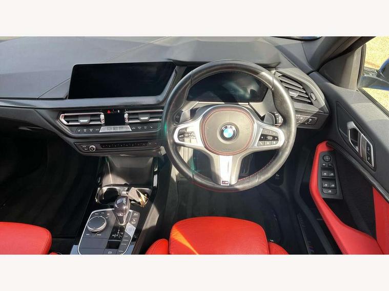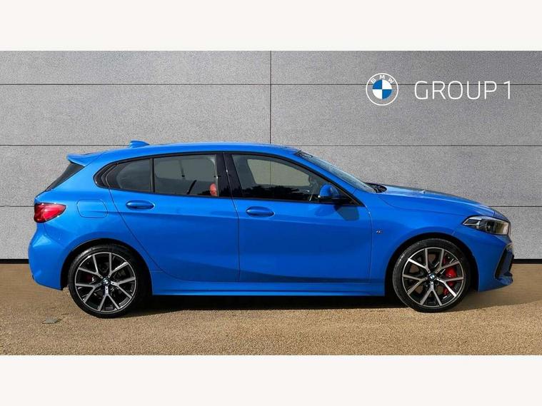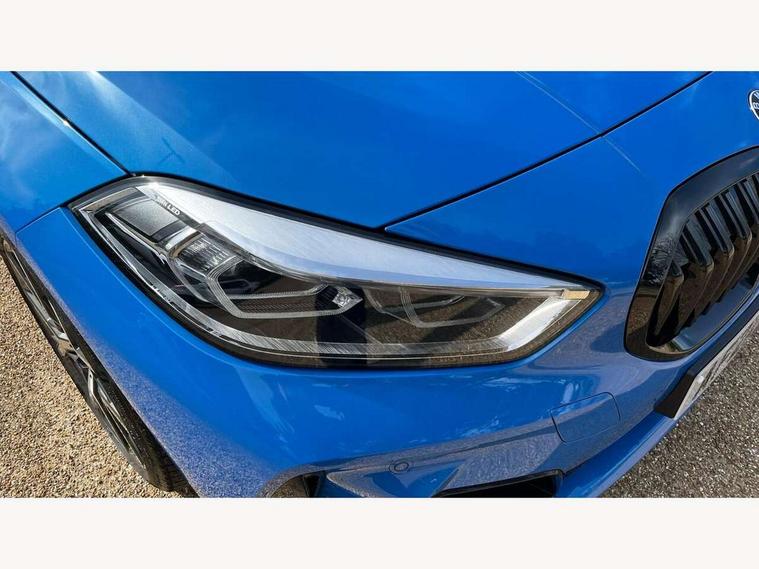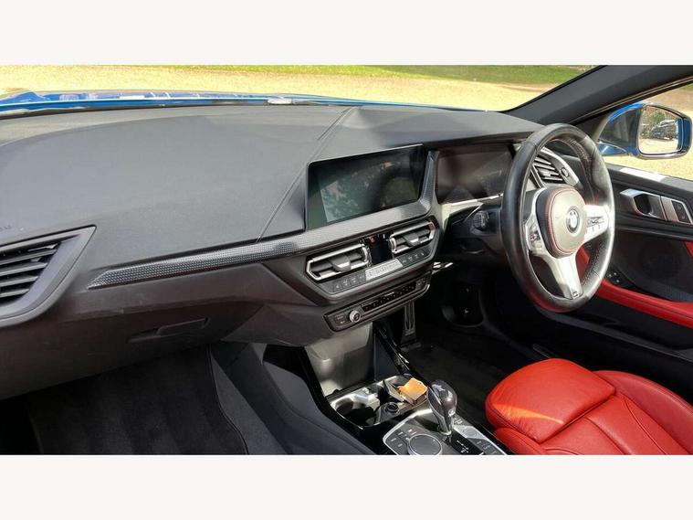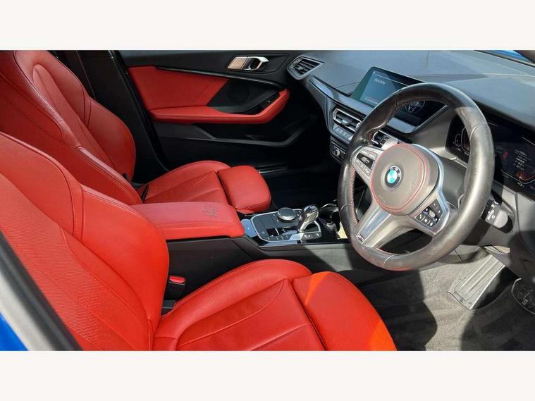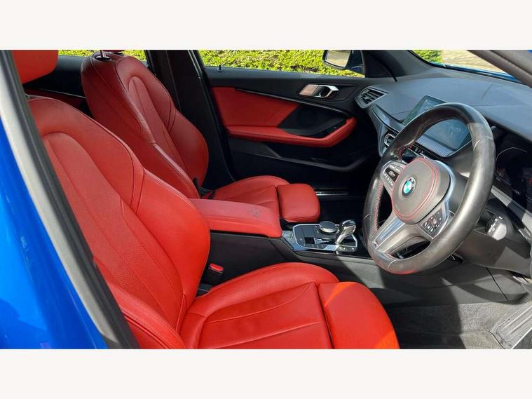 Active guard plus, Attentiveness assist, Bluetooth / WiFi interface for wireless connection of mobile terminal devices and audio streaming, BMW ConnectedDrive online services, BMW Teleservices, Check Control warning system for monitoring of lights and door/luggage compartment open warning, Cruise control with brake assist, Eco pro mode, Electric power steering with Servotronic steering optimised at all speed ranges, Front axle single joint with specific axle kinematics to minimise drive influences on steering + provide increased rigidity agile driving behaviour, Integrated owners handbook, Lane departure warning system, Oil sensor for level and grade, On board computer, Optimum shift indicator, Personal Profile, Pull away assistant, Rigidly mounted rear subframe - Multi link construction with separate spring / damper configuration and excellent driving characteristics, Speed limit Info including no-overtaking indicator, Speed limiter, Aluminium lightweight construction, Anti roll bar front and rear, Balancer shaft, Double VANOS twin scroll turbocharging system, Drive Performance Control, Eight speed sport automatic transmission with gearshift paddle switches, Electronic differential lock, High precision injection, Larger fuel tank capacity (50 litres), M sport suspension with M128i xDrive specific settings, Petrol Particulate Filter, Twin tube gas filled shock absorbers with degressive characteristic curve, VALVETRONIC engine management, DAB Digital radio, Auto dimming rear view mirror, Automatic headlight beam throw control, Automatic windscreen wipers and automatic headlight, Black chrome tailpipe finishers, BMW individual high gloss shadow line with extended content, Body colour door handles, Body colour mirror caps, Body colour roof trims, Chrome 'M' logo side designation, Chrome kidney grille frame with Satin Aluminium struts, Direction indicator side lights in exterior mirrors, Fading support, Folding side mirrors with auto dimming/folding wing mirrors with auto dimming, Follow me home headlights, Front and rear bumper system with replaceable deformation elements, Front and rear electric windows with open and close fingertip control, anti trap facility and comfort closing, Front door sill finishers in black plastic with M designation in metallic look, Green tinted heat protection glazing, Heated, electrically adjustable exterior mirror aspheric on driver side, convex on passenger side, High gloss shadowline window frame, Recess cover mirror frames and B/C pillar embelisher trim, High level third brake light, Integrated front windscreen with washer jets, Kidney frame and struts in high gloss black extended, LED daytime running lights, LED eyebrow turn indicators, LED front fog lights, Lightweight engineering, Matt black air guide grilles, Matt black wheel arch trim, Model designation on electric bootlid, Nearside reverse light in rear light cluster, Preparation for high beam assistant, Rear fog lights, Rear side wing doors, Rear window wiper, Shark fin antenna, Trailer stabilisation logic, Visible VIN plate, Welcome lighting, 12V power socket in front centre console with blanking plug, 3 rear seat head restraints, 3 seat bench in 2nd row, Ambient interior lighting, Anthracite headlining, Centre armrest in black/red highlight including embroidered 'ti' designation in red, Child seat ISOFIX attachment for two outer rear seats and front passenger seat with anchorage points, Conditioned based service, Driver and front passenger seat heating, Folding rear clothes hook, Four grab handles integrated in roof lining, Front and rear door pockets with bottle holders, Front and rear side armrest integrated into door trim, Front armrest, Front sports seats, Glove compartment, Height adjustable front head restraints, Instrument panel top section , door armrests and door panels in black/red highlight, Luggage compartment for bag hooks on left and right, foldable luggage compartment liner and two lashing eyelets, Manual adjust steering wheel, Multi-function controls for steering wheel, Single front passenger seat, Storage compartment in centre console, Sun visors with vanity mirrors and insert tab, Three spoke M sport design multi function leather steering wheel in unique red stitching, Two front centre console cupholders, Two zone automatic air conditioning, Additional interior lighting pack - 1 Series, Additional storage compartment pack with code 493 -1 series, BMW live cockpit professional pack- 1 Series, Connected pack professional - 1 Series, Interior lights pack - 1 Series, M Sport exterior styling aerodynamics pack - 1 Series, 2 tone horn, 3 point seatbelts on all seats, front pyrotechnic belt tensioners, stopper and belt force limiters, rear coded belt buckles, Airbags - Front driver/passenger, front and rear curtain head protection, front side, manual deactivation of front passenger airbag, Anti lock braking system (ABS) with brake assist, BMW emergency call, Brake drying, Braking readiness, Child proof locking system in rear door, City braking function, Comfort modes, Cornering brake control, Crash sensor activating central locking release, hazard warning lights, fuel cut off, interior lighting + activation of safety battery terminal clamp, Driver and front passenger seat belt security check, Dynamic stability control + (DSC+), Dynamic Traction Control - DTC, Electrically operated hand brake including automatic hold function, Front and rear disc brakes, M Sport brakes with red calipers, M Sport seatbelts, Seatbelt warning, Side impact protection, Tyre pressure monitoring system, Warning triangle and first aid kit, Central locking switch for all doors, fuel filler cap and luggage compartment, Deadlocking function system to all doors, Drive away locking system on all doors and luggage compartment with de-activated in iDrive settings, Locking wheel bolts, Remote control with integrated key with High-gloss Black inlay and M designation and 1 button for open/ close lock, window, open luggage 