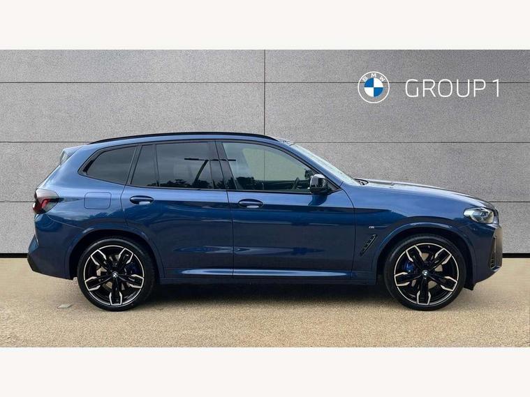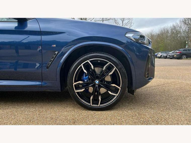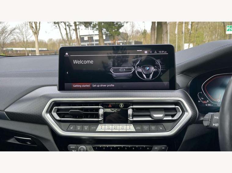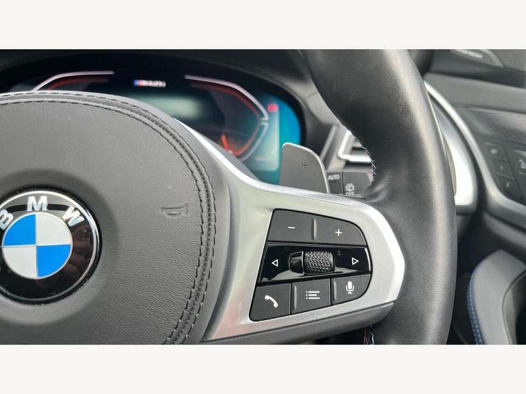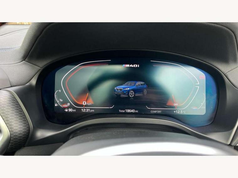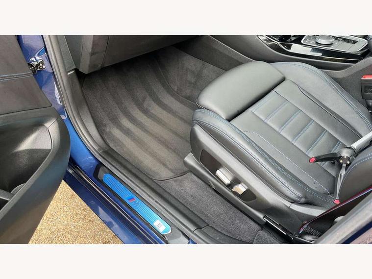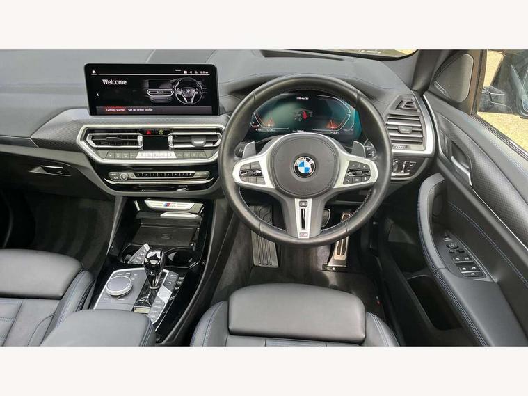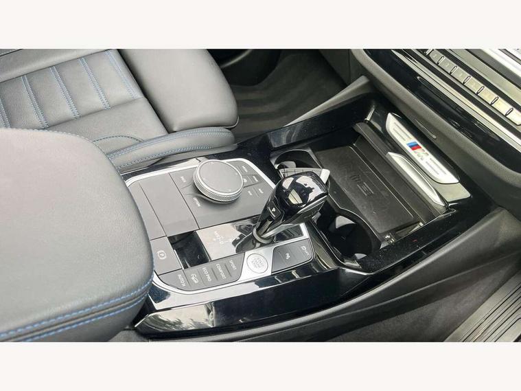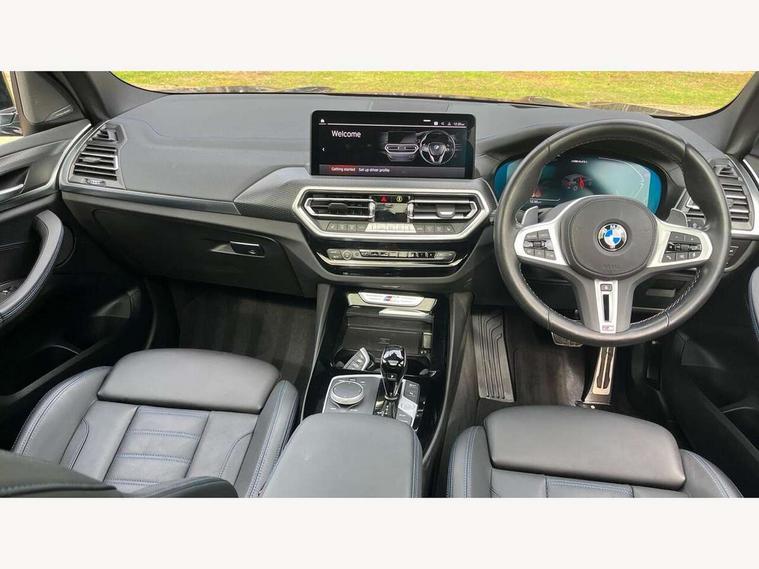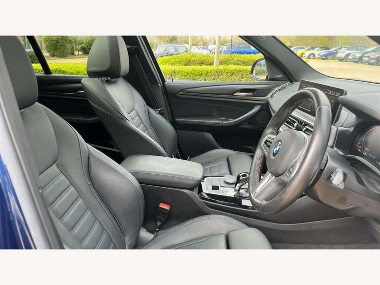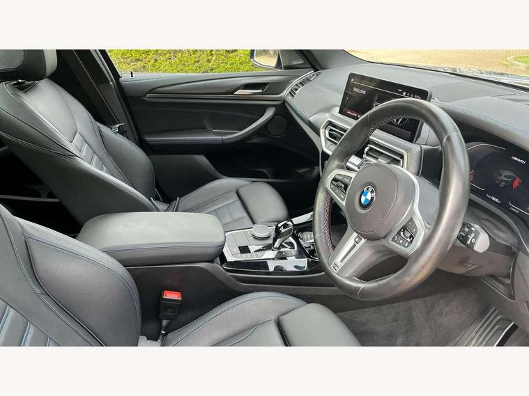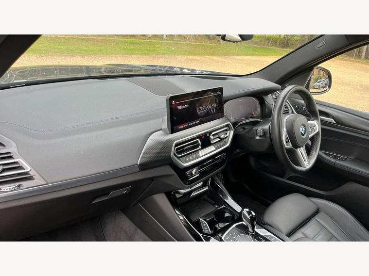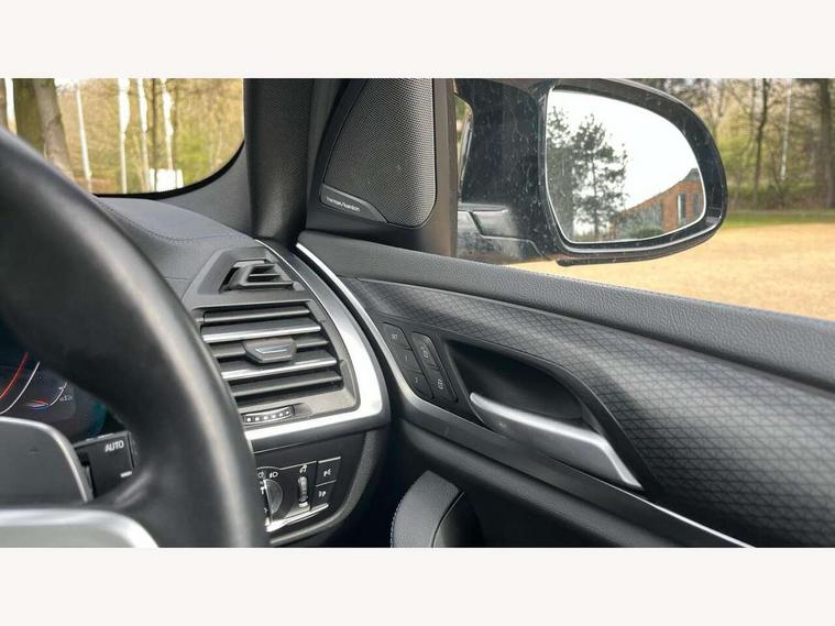 Active Guard, Attentiveness assist, BMW Live Cockpit Professional nav system including 12.3" instrument display + 12.3 high resolution control display, BMW Online services, BMW Teleservices, Brake pad wear indicator in front and rear, Check Control warning system for monitoring of lights and door/luggage compartment open warning, Condition based service - BMW service history, electronic service booklet, integrated owner's handbook, Connected drive services, Deletion of driving assistant professional, Electric boot lid, Front/rear Parking distance control, iDrive Controller with 8 favourite buttons, Instrument cluster with speedometer with mph readout, tachometer, fuel gauge and oil temperature gauge, Lights on warning by audio warning signal when ignition is switched off, Oil sensor for level and grade, warning by check control system, On board computer - average speed+fuel consumption, service interval, clock/date, odometer/trip meter, outside temperature display and ice warning, Optimum shift indicator, Personal Profile - automatic lock when driving away selectable, Run flat indicator, Stop/start system, Variable sports power steering with drive performance control Sport+ mode, Incorrect fuelling protection, M Adaptive suspension, M Sport differential, Multi-link rear suspension, Performance Control, Sport automatic transmission with gearshift paddles, BMW professional radio/CD/MP3, DAB tuner, Acoustic glazing, Automatic windscreen wipers and automatic headlight, Black finish on B pillars, BMW individual high gloss shadow line with extended content, Body colour door handles, Body colour roof mouldings, Body coloured bumpers, Direction indicator, side repeaters, integrated in exterior mirrors, Dynamic brake lights, Electric adjust heated aspherical door mirrors, Exhaust tailpipes - dual, round, split left and right with chrome finisher, Fingertip control / anti-trap function on electric window, Folding wing mirrors with auto dimming, Follow me home headlights, Front and rear bumper system with replaceable deformation elements, Front and rear electric windows, Green tinted heat insulating glass, Heated windscreen washer jets, High beam assistant, High gloss black shadow line roof rails, High gloss shadowline exterior trim in decorative moulding side frame/recess cover/guide rail/B, C pillars/mirror frame and triangle with mirror base, High level 3rd brake light incorporating LED Technology, Interior rear view electrochromatic mirror with automatic anti dazzle function, Kidney frame and struts painted in high gloss black, LED tail lights, Lightweight engineering, M aerodynamic bodystyling, M black mirror caps, M Sport entry door sill strips, Model designation, Rain sensor, Rear side wing doors, Rear wing door, Rear wiper, Shark fin antenna, Side exterior M designation badges, Sun protection glass, Visible VIN plate, Welcome lighting, Windscreen wipers with adjustable interval, 12V power point in luggage area, 12V power socket in front centre console, 3 rear headrests, 3 seat bench in 2nd row, 3 zone automatic air conditioning, 4 lashing points to secure luggage, 40:20:40 split folding rear seat with loading system, Ambient lighting, Anthracite headlining, Automatic interior light when door is opened/ignition switched off or via remote key, Electric adjustable seats with memory function, Floor mats in velour, Foldable storage floor with compartment, Four grab handles integrated in roof lining, Front and rear bottle holders integrated into door trim storage compartments, Front and rear side armrests integrated into door trim, Front centre armrest with storage compartment, Front footwell lights, Front head restraints, Front passenger seat, Front/rear courtesy lights with soft on/off dimming, Front/rear reading lights, Heated front seats, Isofix rear child seat preparation, Leather gear knob, Luggage area underfloor compartment, Luggage compartment lighting, M sport leather steering wheel, Multifunction steering wheel, Parcel shelf removeable and storable under boot floor, Reach and rake adjustable steering column, Rear centre armrest with 2 cupholders, Removable / retractable luggage cover, Slope adjustable rear seats, Storage compartment in rear centre console and front/rear door trims, Sun visors with vanity mirrors and ticket pocket, Toolkit located in luggage compartment, Two front cupholders with removable oddments tray/lid, Vernasca leather upholstery, Connected pro pack - X3, Active protection, ADB - Automatic Differential Brake, Anti-lock braking system (ABS) with brake assist, Automatic Stability Control (ASC), Battery safety cut-off, BMW emergency call, Brake drying, Brake energy regeneration, Braking pre-tensioning, Child locks on rear doors, Cornering brake control (CBC), Crash Sensor - activation of central locking release, hazard warning light and interior lighting, Deactivation of fuel pump in the event of a crash, Driver and front passenger front and side airbags with passenger deactivation and ITS front and rear head airbags, Driver and front passenger knee airbag, DSC+, Dynamic brake control, Dynamic Traction Control - DTC, Electromechanical parking brake, Hill descent control, Hill start assist, M sport seatbelt, Seatbelt security check for front seats, Side impact protection, Three point seatbelts to all seats with front and outer rear pyrotechnic belt tensioners and seat belt force limiters, Two tone horn, Tyre pressure sensor, Ventilated front and rear disc brakes, Warning triangle and first aid kit, Central locking switch for all doors, fuel filler cap and luggage compartment, Electronic engine immobiliser, Locking wheel nuts, Remote control including two integrated key - one button for open/close all lockable content, windows and separate button for open luggage compartment, Remote control Thatcham category 1 alarm, Start/stop button with Comfort Go keyless engine start and auto Start/stop deactivation button, Sensatec dashboard, Low rolling resistance tyres,