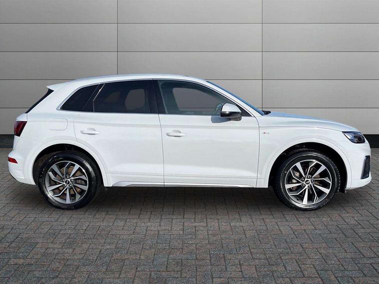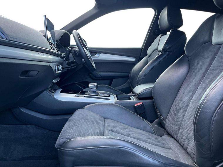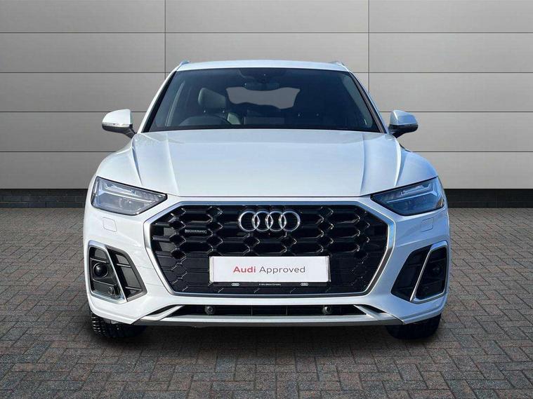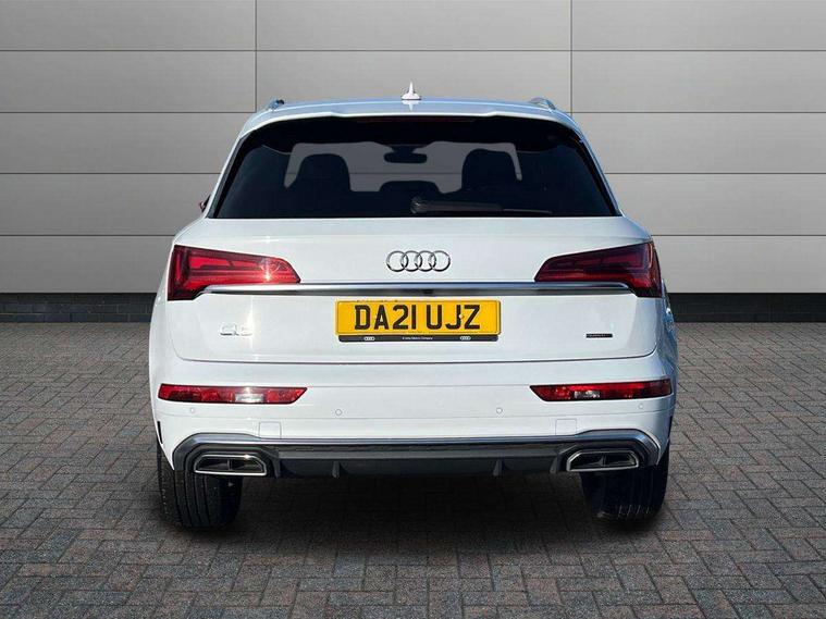 Audi connect safety and service (e-call), Audi connect with Amazon Alexa Integration, Audi drive select, Audi virtual cockpit plus with 12.3" screen and three different layout designs, Audi wireless smartphone interface, Automatic start-stop system with coasting functionality and efficiency programme, Bluetooth interface, Electro - mechanical power assisted steering, MMI navigation plus with 10.1" touch screen, Power tailgate, Reversing camera, Service interval indicator, Voice control system with Audi hotword activation "Hey Audi", Quattro on demand, S line sports suspension, DAB Digital radio, Acoustic windscreen, Aluminium roof rails, Audi matrix LED headlights with dynamic front and rear indicators, Auto dimming rear view mirror, Automatic headlights and windscreen wipers, Body colour bumpers, Body colour door mirrors, Body colour rear diffuser with matt aluminium silver surrounds, Body colour underbody protection, Chrome plated exhaust trims, Door sills in Selenite silver, Electric adjustable/heated/folding door mirrors, Front air inlet surrounds in aluminium, Front and rear electric windows, Front radiator grille in honeycomb design, Headlight washers, Lower bumpers painted in contrast Manhattan grey, Rear chrome trim strip below lights, Rear privacy glass and rear side windows, Rear spoiler, Rear wiper, Roof bars, S Line badges on the front wings, S Line front and rear bumpers, S Line side skirts, 2 x USB charging port with aux input socket, 3 rear headrests, 40:20:40 split folding rear seat with rear centre armrest, Black cloth headlining, Comfort front centre armrest, Contrast stitching on seats, steering wheel and gear lever gaiter, Deluxe 3 zone electronic climate control, Front/rear floor mats, Gear lever in black leather, Heated front seats, Height adjustable front head restraints, Height/reach adjustable steering column, Illuminated door sill trims with S logo, ISOFIX child seat mounting and top tether, Luggage compartment cover, Manual seat adjustment with 4-way electric lumbar support, Removable luggage compartment floor, Stainless steel pedals, Sunvisors with vanity mirrors, High gloss pack - Q5, LED interior light pack - Q5, 3 point seatbelts on all seats, 6 airbags - Driver, front passenger, curtain and side airbags, Electrically operated child locks on rear doors, Electromechanical parking brake, Electronic stabilisation control including ABS, ASR and EDL, Front passenger airbag deactivation, Hill descent control, Hill hold assist, Multi collision brake assist, Pop-up bonnet for pedestrian protection, Pre sense city, Seat belt force limiter, Seatbelt monitoring, Tyre pressure warning, Warning triangle and first aid kit, Anti theft alarm, Anti-theft wheel bolts, Keyless Go access/ignition system, Matt brushed aluminium inlays,