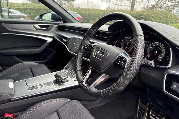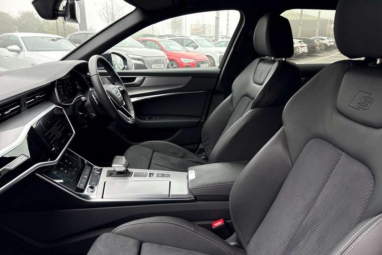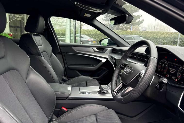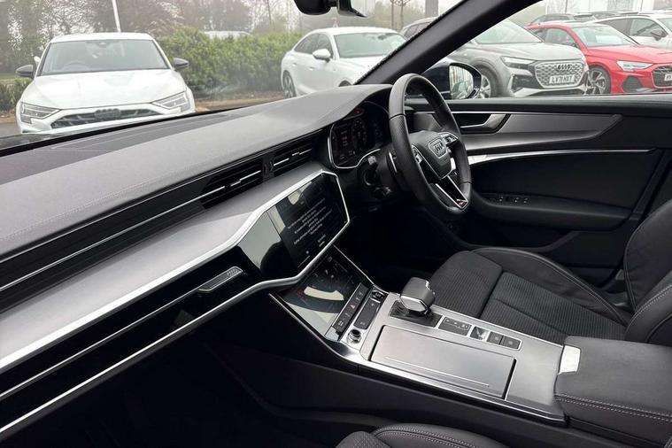 Audi connect safety and service (e-call), Audi connect with Amazon Alexa Integration, Audi drive select, Audi parking system plus - acoustic and visual park assist system for front and rear, Audi virtual cockpit, Automatic start/stop system with coasting functionality, Bluetooth interface, Camera based traffic sign recognition, Lane departure warning system, MMI navigation plus with 10.1" and 8.6" touch screens, Power operated tailgate, Progressive steering, Rear view camera, Service interval indicator, Smartphone interface includes wireless Apple carplay/Android Auto, Voice control system, Sports suspension, Audi front music interface, Audi sound system, Auxiliary input socket, DAB Digital radio, USB connection, Aluminium roof rails, Body colour rear roof spoiler, Body coloured door mirrors, Electric front/rear windows, Electrically adjustable heated and folding + automatically dimming exterior mirrors with memory function, Frameless auto dimming interior rear view mirror, Front intermittent wipers, Heat insulating darkened glass in side and rear windows, Heat insulating glass in windshield, LED rear lights with dynamic indicators, LED signature front daytime running light, LED third brake light, Matrix LED headlights, Matt black rear diffuser with diffuser strip and tailpipes in chrome, Matt black side air intake grille with inlay in matt aluminium, Privacy glass, Radiator grille in anthracite black matt, single frame in chrome and horizontal struts in matt aluminium silver, Rain and light sensors, Rear side wing doors, Rear wiper, 2 zone deluxe electronic climate control, 3 spoke high multi-function perforated leather steering wheel with contrast stitching and shift paddles, 40/20/40 split folding 3 rear seat bench in 3 parts with rear centre armrest, Audi phone box light, Black cloth headlining, Electrically adjustable front seats including seat height, fore/aft position, backrest angle and 4-way lumbar with memory for driver's seat, Front and rear floor mats, Front centre armrest, Front head restraints, Heated front seats, Height/reach adjust steering wheel, Illuminated door sill trims with S logo, Illuminated sun visors with vanity mirrors, Leather gear knob, Luggage compartment system, Rear headrests, Single front passenger seat, Stainless steel pedals and foot rest, Tool kit and car jack, LED Interior Ambient Lighting Pack - A6, Non smoking pack - A6, S line exterior style pack - A6, 3 point seatbelts on all seats, Airbags - Front side, front and rear including head, Audi pre-sense front, EBD - Electronic brakeforce distribution, Electromechanical parking brake, Electronic Stability Control (ESC) including ABS, ASR and EDL, Extended pedestrian protection measures, ISOFIX child seat mounting for front passenger seat and ISOFIX child seat mounting with Top Tether for outer rear seats, Manual child proof rear door locks, Seatbelt monitoring, Tyre pressure warning light, Warning triangle and first aid kit, Anti theft alarm with tow away protection, Anti-theft wheel bolts and wheel loosening detection, Immobiliser, Keyless Go, Remote central locking, Matt brushed aluminium inlays,