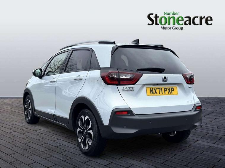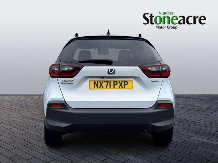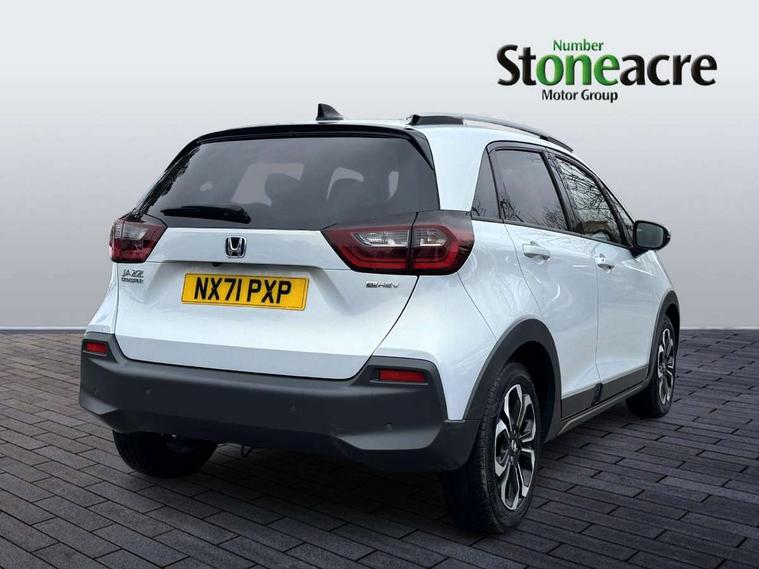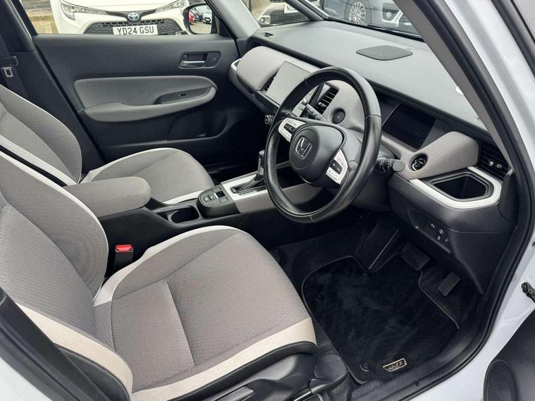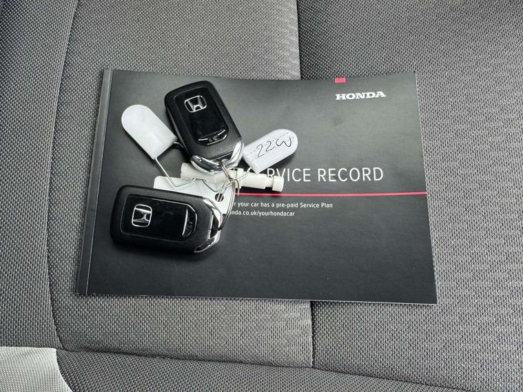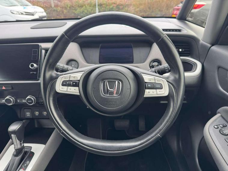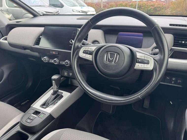 Adaptive cruise control, Adjustable speed limiter, Agile handling assist, Bluetooth hands free telephone connection, Econ mode, Electric power steering wheel with variable gear ratio steering, Emergency stop signalling system, Forward collision warning, Front and rear parking sensors, Honda CONNECT with HERE Navigation + 9" touchscreen, AM/FM/DAB/Apple Carplay and android auto, Idle stop, Intelligent speed limiter, Lane departure warning system, Lane keep assist system, Low speed following, Multi-information display, Rear view camera, Road departure mitigation, Traffic sign recognition, Vehicle stability assist, 'Shark fin' mobile antenna, 2 USB sockets in rear, 2x USB Front socket (1 data & 1 charge), Premium audio with 8 speakers, front tweeter, centre speaker, Remote audio controls on steering wheel, Subwoofer, Aspheric door mirrors, Auto wipers, Automatic headlights with on/off timer, Coming/leaving home function, Body colour door handles, eHEV emblem, Electric adjustable door mirrors, Electrically folding door mirrors, Exclusive styling includes Front and rear bumper, Front fog garnish, Black fender, side sill garnish, Front and rear electric windows, Heated door mirrors, High beam assist, LED daytime running lights, LED front fog lights, LED Headlights, LED rear lights, Privacy glass, Roof rails, Silver door mirrors, Single exhaust tailpipe, 60/40 split rear bench seat, Cargo net hooks, Climate control air conditioning, Driver and front passenger seat armrests, Driver and passenger front seat pockets, Driver's seat height adjustment, Fabric/Water repellent upholstery, Front accessory power socket, Front head restraints, Front map lights, Front/rear courtesy lights, Heated front seats, Isofix child seat restraint mechanism, Isofix points, Leather gearshift knob, Leather steering wheel, Magic seat flexibility system, Paddle shift controls, Plating interior door handles, Rear head restraints, Rear parcel shelf, Sunvisors with vanity mirrors, Tilt/telescopic adjustable steering wheel, Tonneau cover, Trunk light, 3x3 point rear seatbelts, Anti-lock braking system (ABS), Brake assist function, Brake hold function, Collision mitigation braking system, Deflation warning system, Driver knee airbag, Driver SRS airbag (single stage inflation), Driver/Front Passenger airbags, Electric parking brake, Front and rear side curtain airbag, Front side airbags, Hill start assist, Passenger SRS airbag cut-off device, Rear side airbags, Whiplash lessening front headrests, Front seat belt with emergency locking retractor, Honda super locks, Immobiliser, Mirrors and windows key fob operation, Remote central locking with 2 remote folding keys, Security alarm, Smart entry + Smart start, Soft pad mesh interior panels, 16" AL Crosstar alloy wheels in mat berlina black, Tyre repair kit,
