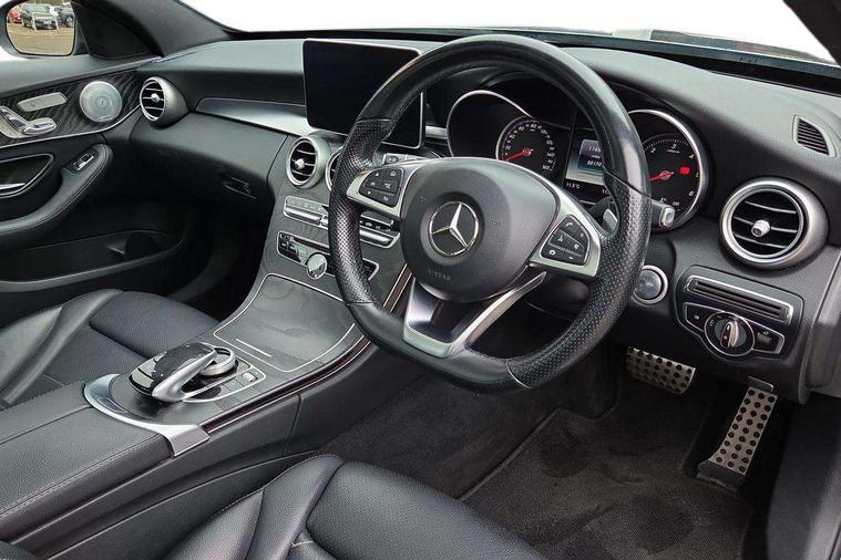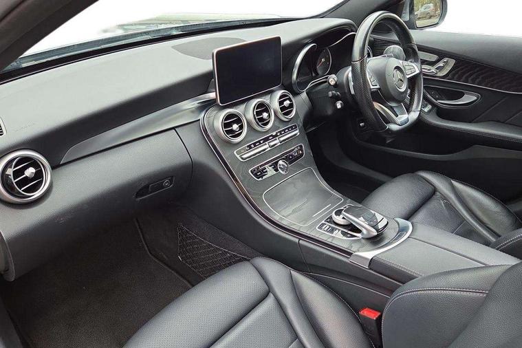 Active park assist with parktronic system, Analogue clock, Attention assist, Bluetooth system, Collision prevention assist, COMAND online nav with colour display, radio/CD/DVD/MP3, SD card, 10GB music, Emergency Call system, speed limit assist, linguatronic voice control, DYNAMIC SELECT with a choice of driving modes (ECO, Comfort, Sport, Sport+ and Individual), Multi function trip computer, Outside temperature gauge, Remote boot release, Service indicator (ASSYST PLUS), Speed sensitive steering, Diesel particulate filter, 2 USB ports in centre console, Burmester surround sound system, DAB Digital radio, SD card slot, Adaptive brake lights, AMG body styling, Body coloured bumpers, Electric front sliding and fixed rear panoramic glass sunroof, Electric windows one touch open/close, Electrically adjustable and heated door mirrors, Green tinted glass, LED daytime running lights, LED tail lights, Radiator grille with integral star and 2 louvres in matt iridium silver with chrome trim, Rain sensor windscreen wipers, Twin exhaust pipes, 2 cupholders in front centre console, 3 spoke AMG steering wheel in Nappa leather, Advanced multicolour ambient light and LED interior light, AMG floormats, AMG sports seats, Auto Mercedes-Benz child seat recognition sensor, Dual zone automatic climate control, Front and rear head restraints, Front centre armrest with storage compartment, Gearshift paddles, Heated front seats, Illuminated glovebox, Lumbar support, Multifunction steering wheel, Rear top tether child seat ISOFIX attachment, Sports pedals with stainless steel surfaces and rubber studs, Sunvisors with illuminated vanity mirrors, Lighting pack - C class, Memory pack - C Class, Mirror pack - C Class, Seat comfort pack - C Class, Stowage space pack - C Class, 3 rear 3 point seatbelts, ABS with Brake Assist, Active bonnet, Adaptive brake system, Child proof door locks, Drivers knee airbag, Dual stage driver/passenger airbags, Electronic parking brake, ESP with ASR, Front passenger seat occupancy sensor, Front side airbags, Hill start assist, Rear seatbelt warning indicator, Tyre pressure monitoring system, Warning triangle and first aid kit, Window airbags, Alarm system/interior protection/immobiliser, Chrome surround in electric key, Keyless entry and keyless start, Remote central locking,
