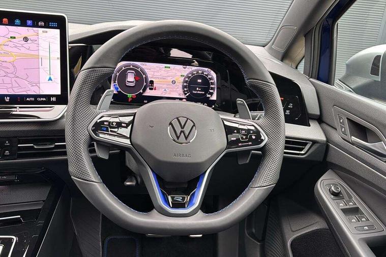 Activated carbon canister, Adaptive cruise control (ACC), Advanced driver attention and drowsiness monitor, Dynamic road sign display, E-Sim card for online connectivity, eCall emergency call system, Multi-color Digital cockpit pro, selection of different info profile possible, Multifunction front facing camera for distance control, Navigation system, Oncoming vehicle braking when turning including swerve support, Side assist blind spot lane change system, rear traffic alert and exit warning system, Speed limiter, Speedo, rev counter, electronic odometer, trip, service interval display, exterior temperature and fuel gauge, Traffic jam assist, Voice enhancer and voice control, Warning signal and warning light for front and rear seatbelts not fastened, We connect plus preparation, We connect preparation, Wireless app connect, All wheel drive - 4Motion, Petrol Particulate Filter, Start-stop system with battery regeneration (recuperation - energy recovery during braking), XDS electronic differential lock for improved traction and handling, 2 USB C ports in front, 2 USB charging sockets on the centre console in the rear charging capacity upto 45W, Digital radio reception (DAB), Diversity antenna for FM reception, Gaming platform via car app, Infotainment system with 12.9" display, Mobile phone interface with inductive charging feature, 3rd brake light, Auto dimming rear view mirror, Automatic headlamp activation with Coming home and Leaving home feature, Body colour door handles, Exterior mirror housings in matte chrome, Exterior mirrors convex on the left and aspherical on the right, Front and rear electric windows, Front fog lamps and cornering light, Heat insulating windshield made of laminated glass, Illuminated lighting animation with wake up/goodbye scenario, LED matrix headlights with ambient light V2, advanced high beam, dynamic range contol with cornering, LED rear lamp with indicator, poor weather, LED separate daytime running light, Light assist with High beam control, R name plate, Rain sensor, Rear fog light on one side and reversing lights on both sides, Rear side wing doors, Rear tinted glass 65% light absorbing from B pillar backwards, Rear windscreen washer and wiper with interval delay, Remote electrically foldable door mirrors, puddle lights and reverse activated passenger's door mirror, Welcome light with surround lighting, 12V socket in front centre console, 12V socket in luggage compartment, 3 rear head restraints, 3 seat bench in 2nd row, 30 colour ambient lighting, illuminated center console storage compartment in front, Air care climatronic 3 Zone automatic climate control with rear air conditioning control panel, Aluminium gearshift handle, Brushed stainless steel pedals, Chrome plated radiator grille inserts, air vent surrounds and light switch surrounds, Entry lights, Front + rear black carpet mats, Front centre armrest, Integrated front head restraints, ISOFIX anchors for child seats on outer rear bench seats and on front passanger seat compatible for i-Size, Luggage compartment lighting, Rear cupholder and loadthough, Single front passenger seat, Soul black instrument panel, Soul black roof lining, Split folding backrest with centre armrest and unsplit rear seat bench, Sun visors with illuminated vanity mirrors, Driver assistance pack - Golf Estate/Hatchback Auto, R styling pack - Golf, Technology park and comfort pro package - Golf Hatchback, 3 point height adj front seatbelts + pretensioners, 3 rear three point seatbelts, ABS, Autonomous emergency braking front assist with pedestrian and cyclist monitoring, Child locks on rear doors, Driver and front passenger airbag with front passenger airbag deactivation, Electronic parking brake with auto hold, ESC (Electronic Stability Control), Extended pedestrian protection measures, Front blue brake callipers with R logo, Hill start assist, Rear disc brakes, Two tone horn, Tyre pressure loss indicator, Volkswagen roadside assistance, Anti theft wheel bolts, Preparation for alcohol interlock, Sporty vehicle dynamics, Tool kit for tyre mobility set, Tyre mobility kit Includes 12V compressor and tyre sealant,