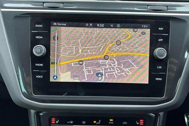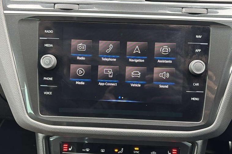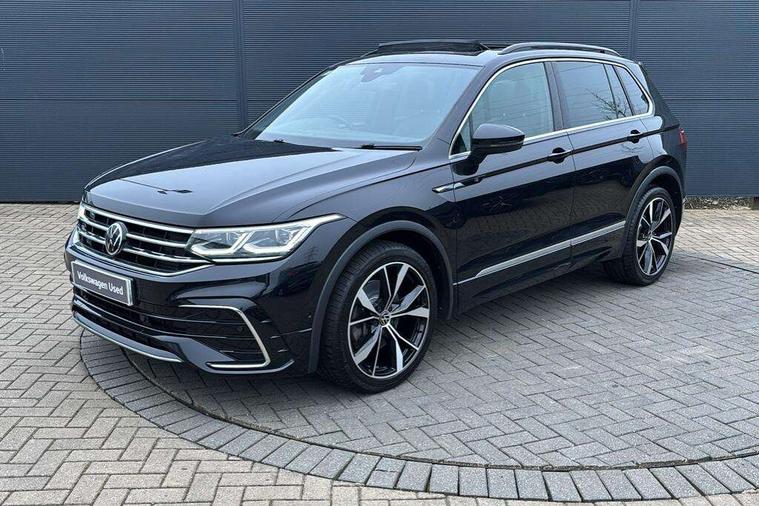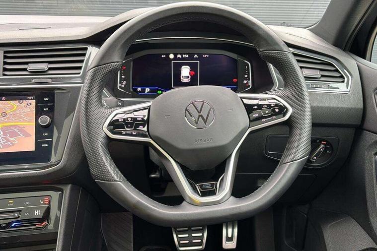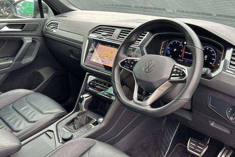 Adaptive cruise control ACC stop and go including speed limiter, App-Connect incl. App-Connect Wireless for Apple CarPlay and Android Auto, Bluetooth phone integration system, Digital Cockpit Pro - Active info display, Distance control assist, Driver alert system, Driver profile selection, Dynamic road sign display, eCall emergency call system, Electromechanical speed sensitive power steering, Engine start/stop button, Lane keeping system Lane Assist, Lights on warning, Multifunction front facing camera, Outside temperature display, Premium multifunction display with multi colour display, Remote control boot opening, Rev counter, Revision / skills operating concept travel assistant, Service interval indicator, Speed limit display, Start/stop system with regenerative braking, Trip computer, Warning sound and light for doors and tailgate open, All wheel drive - 4Motion, Battery regeneration during braking, Diesel particulate filter, Misfuel prevention device for diesel engine, Selective Catalytic Reduction, XDS electronic differential lock for improved traction and handling, 2 USB-C ports in the front, 1 USB-C charging socket on the center console in the rear, Diversity antenna for FM reception, Radio, SD card slot, Simultaneous pairing of 2 compatible mobile devices, SMS functionality - read, compose and send SMS messages using touch-screen display, Title and cover art display, Auto dimming interior rear view mirror, Automatic headlight control system, Black roof rails, Body colour door handles, Body coloured bumpers in R Line style, Body coloured door mirrors with integrated indicators, Chrome moldings on the side windows, Coming/leaving home lighting function, Dynamic headlight range control, Front and rear electric windows, Heated rear window, High level 3rd brake light, Laminated safety glass windshield, heat and sound insulating, LED rear number plate lights, License plate carrier in front and rear, Poor weather light and cornering light, Privacy glass for rear side windows and rear window, R Line body kit, R Line side sills, Rain sensor windscreen wipers, Rear exhaust tailpipe, Rear fog lamp, Rear side wing doors, Rear spoiler in R style, Rear windscreen washer and wiper with interval delay, Side and rear windows in heat insulating glass, Trailer Stability Programme, Unique R Line badging, Windscreen wipers/ intermittent wipe + 4 position delay, 12V outlet in center console rear and in luggage compartment, 12V outlet in front and tray, 2 cup holders in front, 2 LED front reading lights, 2 LED rear reading lights, 3 bench rear seats in 2nd row, 3 rear headrests, 4 load lashing points, 40:20:40 split folding rear seats, Air Care Climatronic 3 zone automatic climate control with enhanced air filter and controls in the rear, Backrest release for left front seat, Black headlining, Brushed stainless steel pedals and footrest, Carpet mats in front and rear with decorative stitching in Gray, Climate control unit rear with touch function, Door and side trim panel in foam film, insert in leatherette, Front centre armrest, Front footwell illumination, Front seats head restraints (x-adjustment), Height adjustable front seats, Height/reach adjust steering wheel, Instrument lighting white adjustable panel illumination, Interior light with delay, Isofix Preparation 2 Rear child seats, Leather gear knob, Lockable cooled glovebox, Luggage compartment lighting, Luggage net, Rear bench seat asymetrically split folding, longitudinally movable and folding with load-through hatch and center armrest, Remote unlocking for rear seat backrest, Removable luggage cover, Removable rear headrests, Safety optimised front head restraints, Single front passenger seat, Sliding/reclining rear seats, Standard rear seat release, Storage compartment in driver's door, Storage compartment in passenger's door, Storage compartment in rear doors, Storage compartments in luggage area left and right, Storage tray on dashboard, Sun visors with illuminated vanity mirrors, Tool kit, Top front comfort seats, Variable boot floor, height adjustable and removable, Ambience pack - Tiguan R Line, Driver assistance pack plus - Tiguan DSG, Park assist pack - Tiguan, 3 point seat belt for centre rear seats, 3 point seat belts with seat belt pretensioners for the outer rear seats, Active bonnet, Curtain airbags for front and rear passengers, Driver/Front Passenger airbags, Drivers knee airbag, Electronic parking brake with auto hold, Electronic Stability Control with driver steering recommendation, ABS, ASR, EDL, EDTC and trailer stabilization, Front assist with autonomous emergency braking (for Adaptive Cruise Control ACC up to 130 mph), Front disc brakes, Front passenger airbag deactivation, Front side airbags, Height adjustable front 3 point seatbelts + pretensioners, Hill hold control, Manual child proof rear door locks, Pedestrian monitoring system, Power assisted brakes, Proactive passenger protection system in combination with front assist, Rear disc brakes, Rigid safety cell with front and rear crumple zones, Two tone horn, Warning sound and light for front seat belts if unfastened, Anti theft alarm system with interior monitoring, backup horn and towing protection, Anti theft wheel bolts, Electronic engine immobiliser, 20" Misano black with diamond turned surface alloy wheels with Airstop tyres,