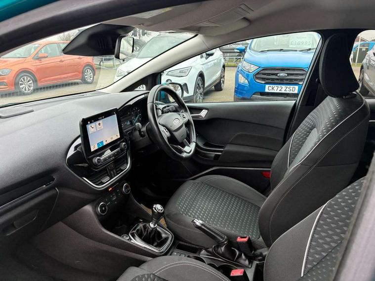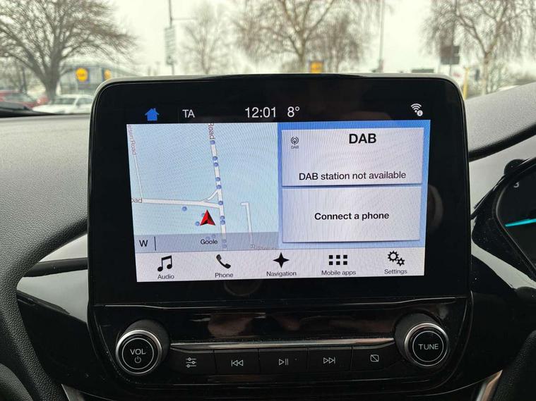Immobiliser, MyKey system, Remote central locking, Thatcham Cat.1 alarm, Auxiliary input socket, Ford SYNC 3 DAB radio, apple car play and android auto with voice control, Steering wheel mounted controls, USB connection, 3 point seatbelts on all rear seats, ABS+EBA, Curtain airbags, Driver and passenger airbags, Drivers knee airbag, ESP + traction control, Front passenger airbag deactivation, Front side airbags, Hill start assist, Seatbelt warning, Tyre pressure monitoring system, Automatic headlights, Body colour bumpers, Body colour door handles, Body colour electric adjustable heated door mirrors, Body colour rear spoiler, Chrome beltline trim, Cornering front fog lights, Electric front windows/one touch facility, LED daytime running lights, Quickclear heated windscreen, Rear wiper, Tinted glass, Upper front grille chrome surround, 12V Accessory socket in centre console, 3 spoke leather steering wheel, 60/40 split folding rear seat, Adjustable head restraints, Ambient lighting, Boot carpet, Chrome inner door handles, Cloth upholstery, Footwell illumination, Front map reading lights, Front seat and rear pockets, Height adjustable driver's seat, Illuminated glovebox, Leather gear knob, Leather trimmed handbrake handle, Load area light, Luxury woven headliner, Manual air conditioning, Overhead console with sunglasses holder, Pollen filter, Rake/reach adjustable steering wheel, Rear centre head restraint, Bluetooth system, Electric power steering, Lane keep assist, Speed limiter, SYNC Emergency Assistance, Trip computer,