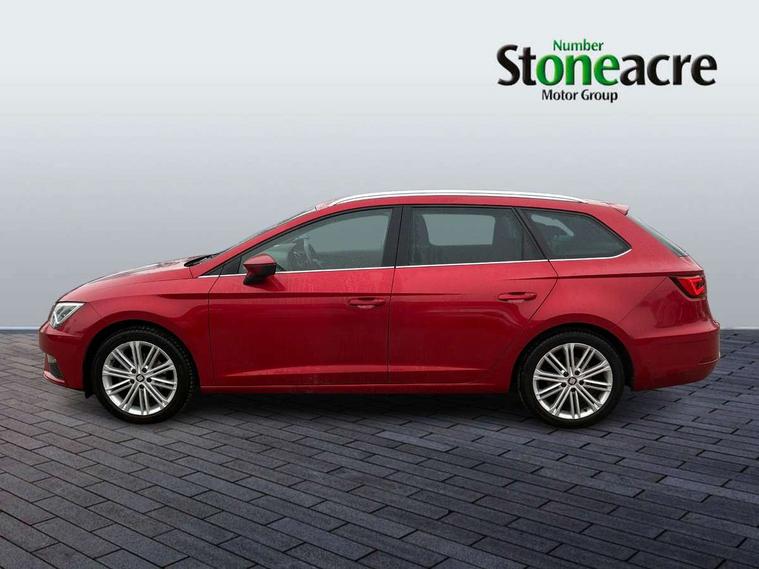'Lights On' Reminder warning buzzer, 3D map display, 8" touch screen, Bluetooth Handsfree Phone Connection, Electro-mechanical power steering, Front and rear parking sensors, Front assist with pedestrian protection, Full Link Smartphone Integration with Mirror Link, Apple Car Play, Google Android Auto, Low fuel warning light, Navigation system (incl. media system plus), Outside temperature gauge, Rear view camera, RPM counter, SEAT logo boot release, Service interval indicator, Trip computer, Voice recognition, Wireless Smartphone charger, Comfort suspension, XDS electronic differential lock, 2x SD card slot, 4 USB, 8 speakers, Auxiliary input socket, Bluetooth audio streaming, CD player, DAB Digital radio, High resolution colour driver display, Media system plus (incl. media system colour), SEAT USB media cable, Steering wheel mounted audio/phone controls, Body colour door handles, Body coloured bumpers, Body coloured exterior mirrors with integrated LED indicators, Chrome roof rails, Chrome window surround, Chromed centre radiator grille, Dark tinted rear windows, Electric front/rear windows, Electrically adjustable door mirrors, Electrically foldable exterior mirrors with parking position and passenger-side mirror with lowering function, Heated door mirrors, High gloss black finish B and C pillars, Illuminated aluminium front door sill with XCELLENCE logo, LED front fog lights, LED headlights with LED day time running lights + LED rear lights + LED number plate lights, Rear wash/wipe, Visible twin exhaust tailpipes, 12v power point in centre console, 60/40 split folding rear seat with armrest, Active front headrests and 3 rear headrests, Additional heating and ventilation outlet in rear of centre console, Boot storage net, Cargo rings in boot, Double boot floor, Driver and passenger seat height adjust, Driver seat lumbar adjustment, Dual zone climate control, Dust/pollen filter, Front adjustable head restraints, Front armrest with storage box, Front cupholders x 2, Front seatback storage pockets, Front sport seats in leather, Front/rear floor mats, Gear shift indicator, Height/reach adjust steering wheel, High centre console with integrated box & cup holder, rear air outlet, with armrest in front seats, Illuminated door sills, Instrument lighting with brightness control, Leather steering wheel with XCELLENCE logo, Luggage compartment cover, Luggage tie-down hooks, Multi-colour ambient interior lighting, Passenger seat lumbar adjust, Rear top tether child seat ISOFIX attachment, Storage box under drivers and passenger seat, Winter pack - Leon, 3 point seatbelts on all rear seats, 7 airbags - 2 front, 2 front side, 2 curtain, 1 knee, ABS + TCS, Child proof door locks, Electric handbrake, Electronic parking brake with auto hold, ESC with tyre pressure warning indicator, ESP+EBA, Front seatbelt pretensioners, Front seatbelt reminder, Hill hold control, Multi-Collision braking, Passenger airbag deactivation system, 2 folding remote keys with window open/close function and boot opening/door mirror folding function, Central locking fuel filler cap, Engine immobiliser, Keyless entry and go, Locking wheel bolts, Remote central locking + deadlocks, Volumetric alarm with back up horn, Chrome interior detailing, 17" Dynamic alloy wheels 30/1,