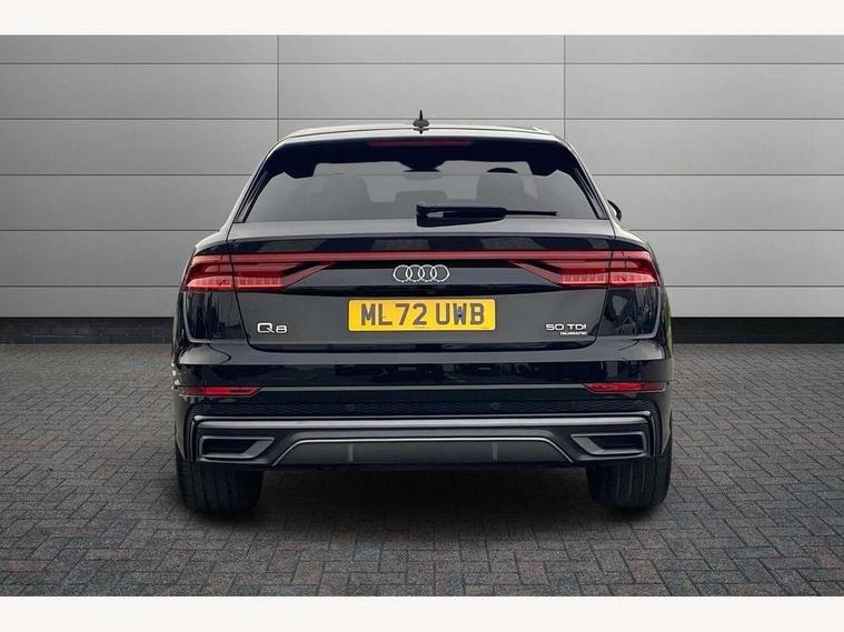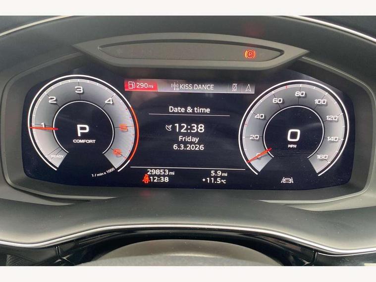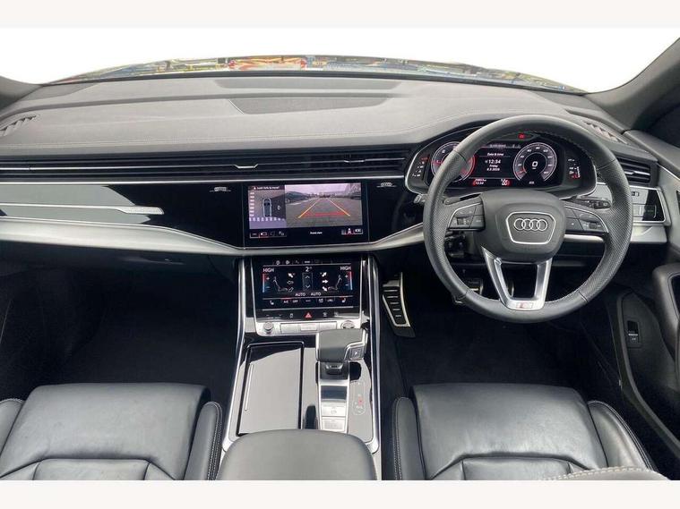 10.1" and 8.6" Dual colour touchscreens, Audi connect safety and service (e-call), Audi connect with Amazon Alexa Integration, Audi drive select, Audi parking system plus includes 360 degree display with front and rear sensors, Audi virtual cockpit - 12.3" high resolution LCD display with fully customisable instrument cluster, Automatic start/stop system, Electro-mechanical PAS, Low washer fluid indicator, MMI - Multi Media Interface control system, MMI navigation plus with MMI touch, Natural voice recognition, On board computer, Operating buttons in black, glass look with haptic feedback, Power operated tailgate, Rear view camera, Service interval indicator, Smartphone interface includes wireless Apple carplay/Android Auto, 48V Mild hybrid technology, Adaptive sport air suspension, Diesel particulate filter, Quattro all wheel drive with self locking centre differential, Audi music interface with 2 USB ports with charge and data functions, Audi sound system with 6 channel amplifier, 180 watt amplifying capacity and 10 loudspeakers including subwoofer, Aux-in socket, DAB Digital radio, 3rd brake light, Acoustic windscreen, Aluminium window trim, Audi HD Matrix LED headlights with dynamic front and rear indicators, Auto dimming frameless rear view mirror, Body colour door mirrors, Coming/leaving home lighting function, Electric front+rear windows, Electrically folding auto dimming/adjustable/heated door mirrors with memory function, LED side indicators and kerb view function for passenger side, Headlight washers, Heat insulating glass in windshield, Illuminated door sill trims with S line logo, LED signature daytime running lights, Platinum grey front spoiler lip and diffuser insert with honeycomb grille in black, Privacy glass - dark tinted rear and rear side windows from B-pillar backwards, Rain and light sensors, Rear side wing doors, Rear wiper, S line badges on front wings, S Line body styling, S line bumpers in full body colour paint finish, S line roof spoiler, S Line side skirts, S line side ventilation grille, 2 zone automatic climate control, 3 bench rear seats in 2nd row, 4-way lumbar support for front seats, 40:20:40 split folding rear bench seat, Black cloth headlining, Comfort front centre armrest, Driver seat memory function, Electrically adjustable front seats, Front head restraints, Front/rear floor mats, Heated front seats, ISOFIX child seat mounting for front passenger seat and 2 outer rear seats with top tether child seat mounting for all 3 rear seats, LED interior ambient lighting, Luggage compartment sill protection in stainless steel, Rear centre armrest with 2 cupholders, Rear headrests, Single front passenger seat, Stainless steel pedals, Sunvisors with illuminated vanity mirrors, 3 point seatbelts on all seats, Audi pre sense front, Child locks on rear doors, Driver and front passenger, front side and curtain airbags, Electromechanical parking brake, Electronic Stability Control (ESC) including ABS, ASR and EDL, Front passenger airbag deactivation, Hill descent control, Hill hold assist, Predictive pedestrian protection, Seatbelt monitoring, Traction control, Tyre pressure loss indicator, Warning triangle and first aid kit, Anti theft alarm with tow away protection, Anti-theft wheel bolts and wheel loosening detection, Immobiliser, Keyless go with remote central locking, Dark matt brushed aluminium inlay, Tool kit, Tyre repair kit,