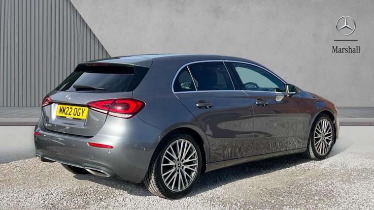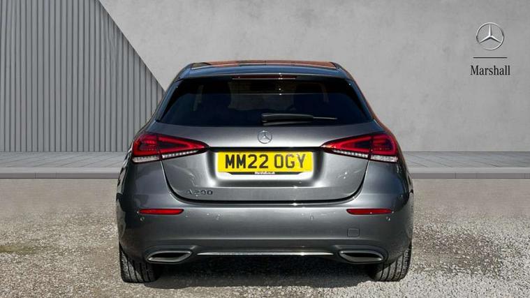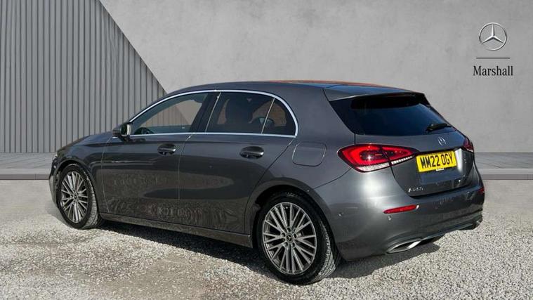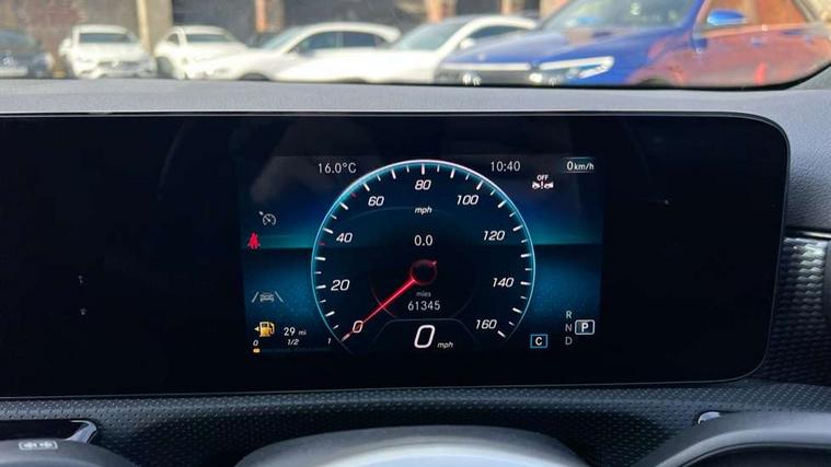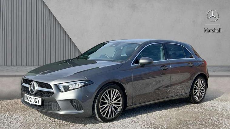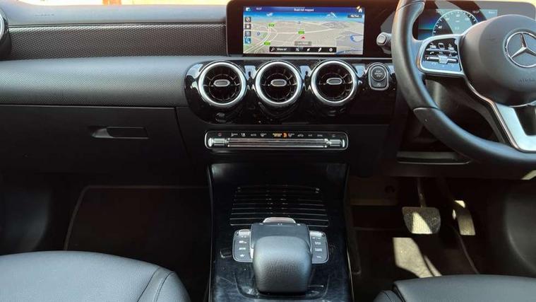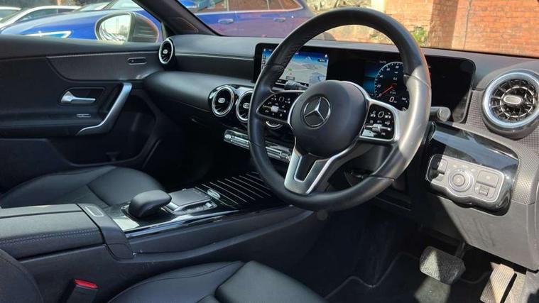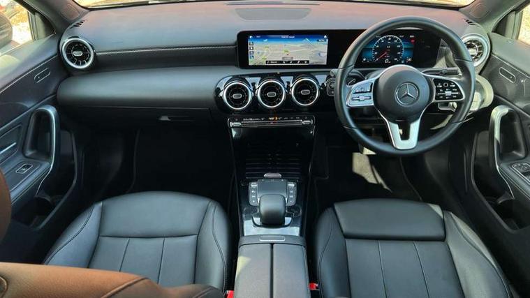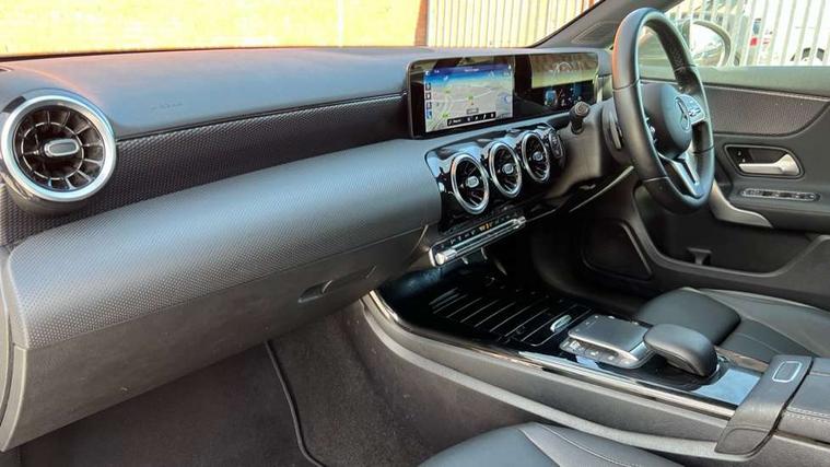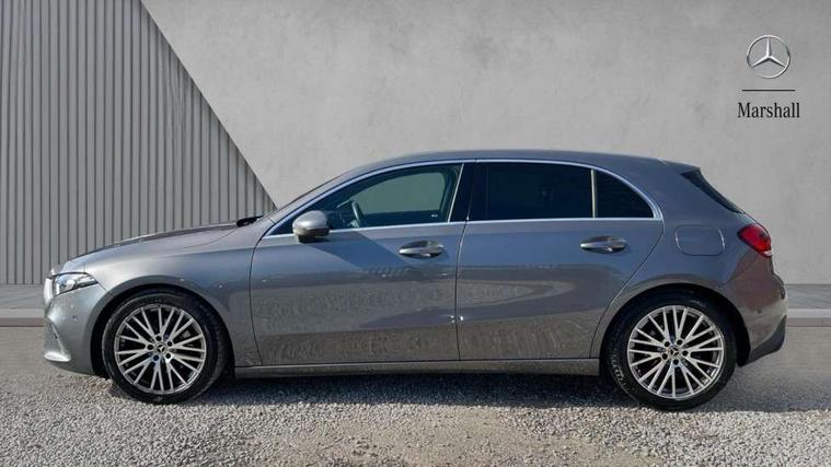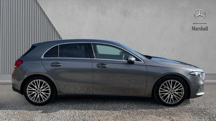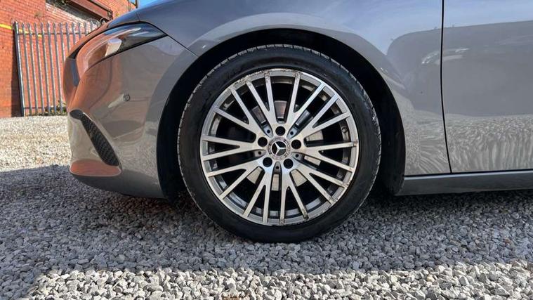 10.25" media display, 180 degree rear view camera with parking guidelines, 7" colour screen in instrument panel, Active parking assist with visual and audible warning of detected obstacles, Attention assist, Brake pad wear indicator warning light, Car wash mode, Cruise control + speed limiter, Direct steering, Dual bluetooth interfaces, DYNAMIC SELECT with a choice of driving modes (ECO, Comfort, Sport and Individual), ECO start/stop function, Fluid level warning indicator for fuel, oil, coolant and washer fluid, Hard-disk navigation, Hey Mercedes Voice activation, Lamp failure indicator, Lane keeping system, Mercedes me connect including emergency call system, accident recovery, breakdown and maintenance management, Mercedes me remote services, Outside temperature gauge, Owners manual in English, Pre-installation for private car sharing, Preinstallation for Mercedes Benz link, Service indicator (ASSYST), Smartphone integration with Apple CarPlay and Android auto, Speed sensitive power steering, Trip computer, Ultrasonic sensors positioned in the front and rear bumpers, Lowered comfort suspension, Rear axle torsion beam, 2 USB ports (type C) in rear stowage compartment and one in front of center console, 6 speakers, DAB Digital radio, MBUX multimedia system with DAB digital radio and touchpad including satellite navigation, Mercedes-Benz sound system - 100W, 4 Electric Front and Rear windows, Adaptive brake lights, Automatic headlights, Black weather strip, Body colour bumpers, Body colour door handles, Body colour side skirt, Body coloured door mirrors, Chrome beltline trim, Diamond radiator grille with black pins with one louvre in silver + chrome insert, Electric adjustable and heated door mirrors with integrated LED side indicators, Exhaust system - Twin visible tailpipes in polished stainless steel, Headlamp assist automatic headlamp activation, Heated glass rear windscreen + timer control, LED High level third brake light, LED high performance headlamps with integrated LED daytime running lights, LED tail lamp, Privacy glass, Radio aerial, Rain sensing windscreen wipers with two sensitivity settings, Rear fog lights, Rear side wing doors, Rear wiper, Window line trim strip in chrome, 3 seat bench in 2nd row, 3 Spoke leather multi function steering wheel, 40:20:40 split folding rear seats, Artico man-made leather upholstery, Auto Mercedes-Benz child seat recognition sensor, Black air vents with surround in silver chrome, Black roof lining, Controller on centre console with chrome surround, Front centre armrest with storage compartment, Front comfort seats with adjustable head restraints, Front door sills with Mercedes Benz lettering, Front seat backs luggage nets, Front seat cushion length adjustment, Gearshift paddles on steering wheel, Heated front seats, Height/reach adjustable steering column, Interior mirror with reading lamps in black and frameless, Manual height adjustable front seats, Rear head restraints, Seat occupancy sensor for front passenger seat, Single front passenger seat, Stowage compartment in centre console with retractable cover, Sunvisors with illuminated vanity mirrors, Touchpad on center console, Twin front cupholders, Two zone thermotronic luxury automatic climate control, Velour floor mats, Light and sight pack - A Class, Mirror package - A Class, Seat comfort pack - A Class, 3 rear 3 point seatbelts, ABS with Brake Assist, Active bonnet, Active brake assist includes forward collision warning system with autonomous braking, Adaptive brake assist with hold function and hill start assist, Black seatbelts, Childproof locks manually operated for rear doors and electrically operated for rear power windows, Crash responsive emergency lighting, Driver and passenger head and side airbags, Drivers knee airbag, Dual stage driver/passenger airbags, Electronic parking brake, ESP curve dynamic assist, ESP with ASR, Front and rear seatbelt reminder, ISOFIX and top tether child seat fixing points in two outer rear seats, Tyre pressure monitoring system, Warning triangle and first aid kit, Window airbags, Alarm system/interior protection/immobiliser, Keyless Go, Remote central locking and crash sensor with emergency opening function, Urban guard vehicle protection system with immobiliser and interior protection, Dark carbon fibre interior trim, 18" multi spoke light alloy wheels painted in himalayas grey with a high sheen finish, Summer tyres, Tirefit sealant kit,