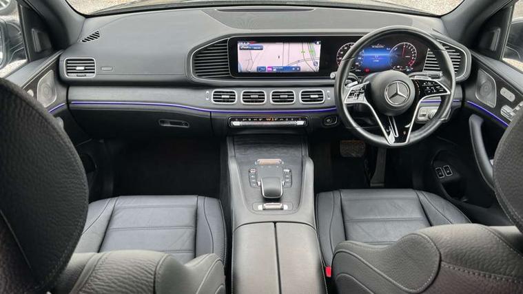 12.3 High resolution wide screen cockpit display with choice of three display styles Classic, Progressive or Sport and unique ambient lighting setting, 360 degree view camera, Acoustic presence indicator, Active lane keeping assist, Active parking assist with PARKTRONIC, Attention assist, Blind spot assist, Brake wear warning display, Direct steer speed sensitive steering, DYNAMIC SELECT with a choice of driving modes (ECO, Comfort, Sport and Individual), Easy-pack tailgate - Powered opening/closing automatically, ECO start/stop function, Geofencing, Hard-disk navigation, MBUX augmented reality for navigation and live traffic, MBUX voice control activated by keywords "Hey Mercedes", Mercedes Benz emergency call system, Mercedes me connect - vehicle set up and monitoring, Outside temperature display, Pre-installation for digital key transfer, Remote boot release, Service indicator (ASSYST), Smartphone integration with Apple CarPlay and Android auto, Speedtronic cruise control with speed limiter, Status display for rear seat belts in instrument cluster, Traffic sign assist, Trip computer in multifunction display showing current fuel consumption, Wireless charging, 65 litre fuel tank, 9G TRONIC 9 speed automatic transmission, AC charging, Airmatic air suspension with adaptive damping system, Charging cable for domestic socket, Charging cable for wallbox and public charging stations 8m straight, Petrol Particulate Filter (PPF), Additional USB connection, Bluetooth interface for hands free and audio streaming, Burmester surround sound system, DAB digital radio tuner, Front and rear USB ports, Sound personalisation, Adaptive brake lights, Aluminium look, illuminated running boards with rubber studs, AMG bodystyling front and rear aprons, Auto headlights, Automatically dimming rear view mirror, Body colour door mirrors, Body coloured bumpers, Electric windows with one touch opening/closing and obstruction sensors, Electrically adjustable, heated, folding exterior mirrors, Exterior styling - front bumper, radiator grille and front air intakes, Heat insulating dark tinted glass, LED 3rd brake light, LED daytime running light signet, LED rear lights, Multibeam LED headlights with adaptive highbeam assist plus, Radio aerial integrated into rear window, Rain sensing windscreen wipers, Rear side wing doors, Rear wiper, Roof rail system, Top surround of side windows in polished aluminium, Transparent Bonnet, Visible twin pipe exhaust system integrated into bumper, Waistline in polished aluminium, 3 spoke nappa leather multifunction sports steering wheel, 4 way adjustable front head restraints and 2 way rear head restraints, 40:20:40 split folding rear seats, AMG floor mats with AMG lettering, Automatic child seat recognition sensor, Black fabric roof liner, Electric height/reach adjustable steering column, Electrically adjustable rear seats, Front centre armrest with stowage compartment and illuminated grab handles, Gearshift paddles on steering wheel, Glove compartment - lockable, air conditioned and illuminated, Heated front seats, Illuminated front door sill with Mercedes Benz lettering, Interior lighting - 64 colour Ambient lighting, Leather upholstery, Luggage compartment cover, Seat occupancy sensor for front passenger seat, Second row three seats, Single front passenger seat, Sports pedals in brushed stainless steel with rubber studs, Sunvisors with illuminated vanity mirrors, THERMATIC 2 zone automatic climate control, Touchpad, Keyless go comfort package with comfort opening - GLE, Memory package with 4 way lumbar support - GLE, Active bonnet, Active brake assist with HOLD function and brake e-drying function, Airbags - driver and front passenger, front sidebag, pelvis bag and window airbags, Anti-lock braking system (ABS), Black seat belts, Childproof locks manually operated for rear doors and electrically operated for rear power windows, Drivers knee airbag, Electronic parking brake, Electronic Stability Programme (ESP), ISOFIX child seat points with automatic child seat recognition, Perforated front brake discs and brake calipers with Mercedes-Benz lettering, Pre safe impulse side, Three point rear seat belts, Tyre pressure monitoring system, Warning triangle and first aid kit, Alarm system/interior protection/immobiliser, Central locking with interior switch, automatic locking and crash sensor with emergency opening function, Chrome surround in electric key, Dashcam, Guard 360 degree vehicle protection plus, Dashboard and door beltlines in ARTICO man made leather with contrast top stitching, Trim - Centre console, anthracite open pore oak wood trim, 20" AMG 5 twin spoke light alloy wheels, TIREFIT with tyre inflation compressor,