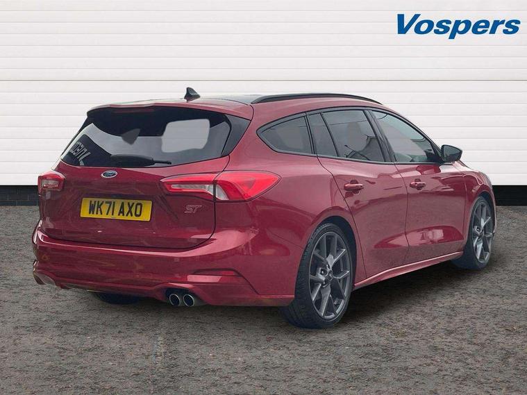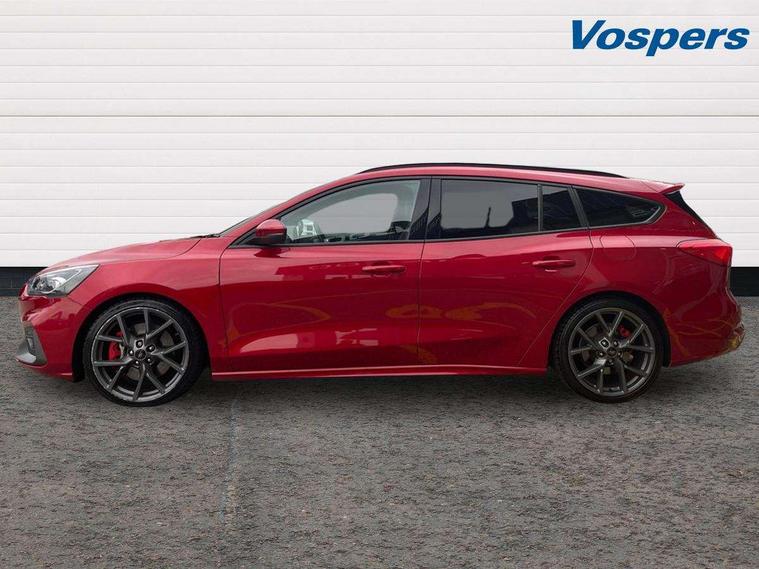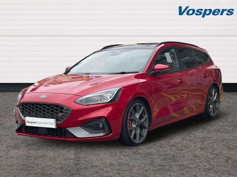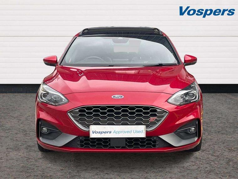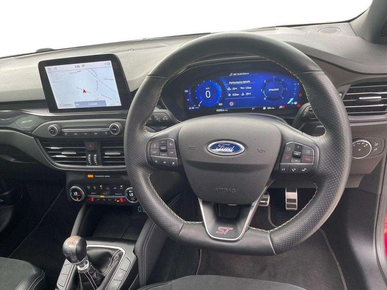 12.3" Digital instrument cluster, Bluetooth system, Digital clock, E-call, Easy fuel capless refuelling system, Eco mode, Ford SYNC 3 navigation with 8" TFT touchscreen, DAB radio and app link Android auto/Apple carplay, Front and rear parking sensors, Hands free power tailgate, Head up Display, Intelligent speed assist, Lane keeping system - lane keeping alert and lane keeping aid, PAS, Rear view camera, Selectable drive mode, Trip computer, Diesel particulate filter, Unique ST sport suspension, 2 USB ports, Aux input, B&O Premium audio system with 360 degree sound, 10 speakers, 675 Watts amplifier power & digital sound processor, Adaptive full LED headlamps with dynamic LED headlights, LED turn indicators, glare-free high beam, LED rear tail lamps and LED front fog lights, Auto dimming rear view mirror, Auto headlamps (on/off), Automatic rain sensing wipers, Body coloured bumpers, Body coloured door handles, Body coloured electrically operated and heated door mirrors with side indicators, Electrically operated front and rear windows with one touch opening and closing, Front variable intermittent wipers with electric wash, Heated rear window, LED daytime running lamp, Performance rear spoiler, Polished twin tailpipe, Power folding door mirrors with puddle lights, Quickclear heated windscreen, Rear bumper extension, Rear privacy glass, Rear side wing doors, Roof rails, Scuff plates front, polished stainless steel with etched ST logo, ST upper and lower grille with full body styling kit and front and rear ST badge, Tailgate wash/wipe, Unique door and instrument panel inserts, 2nd Load floor, 3 seat bench in 2nd row, 3 spoke flat bottomed Sensico steering wheel with red stitching, 6 way power adjustable driver seat, Aluminium gear knob, Auto fold rear seats, Dark headliner, Driver's lumbar support, Dual zone electronic air temperature control, Front and rear floor mats with metal grey stitching, Front passenger seat manual height and lumbar adjust, Heated driver and front passenger seats, Heating for Sensico steering wheel, Height adjustable front headrests, Isofix child seat preparation, Load through ski hatch, Reach + rake adjustable steering column, Rear centre headrest, Recaro part leather upholstery, Single front passenger seat, Soft console knee pads with red stitching, Driver assistance pack with Adaptive Cruise Control - Focus, 3x3 point rear seatbelts, ABS+Electronic Brake force Distribution, Auto hold function, Driver airbag, Electronic parking brake, Electronic stability control, Front and rear seatbelt reminder, Front inertia reel height adjustable seatbelts with pre-tensioners, Front passenger airbag, Front side airbags, Hill start assist, Passenger airbag deactivate switch, Post collision braking, Pre collision assist with autonomous emergency braking and pedestrian/cyclist detection, Red brake calipers, Remote/power child rear door locks, Side curtain airbags, Three rear inertia reel lap/diagonal seatbelts, Tyre pressure monitoring system, Ford keyfree system with Keyless entry and keyless start/sleep mode key fob, MyKey system, Remote central locking & engine immobiliser, Thatcham category 1 alarm, 19" 5x2 spoke alloy wheel with magnetite finish, Mini steel spare wheel,