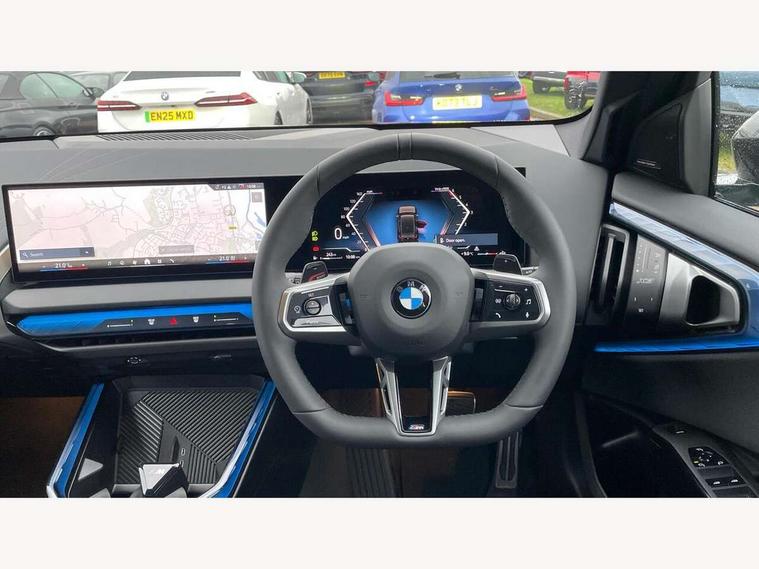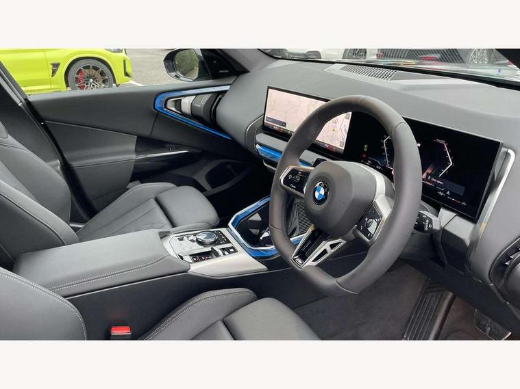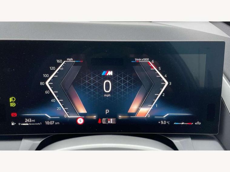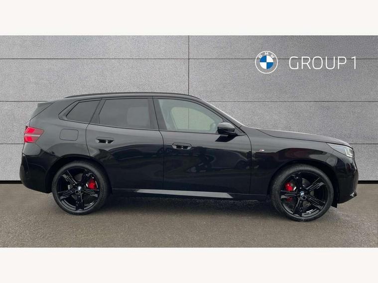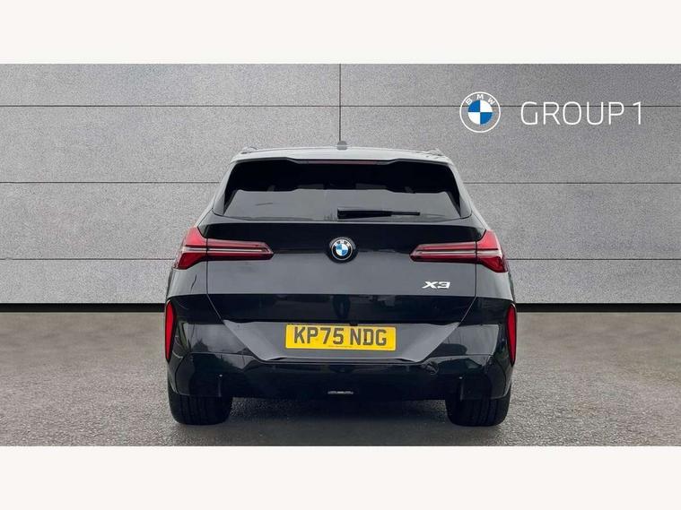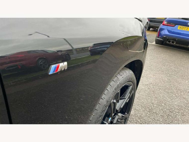 Active guard professional, Attentiveness assist, Automatic operation of tailgate, BMW ConnectedDrive online services, BMW iDrive, BMW Live cockpit plus, BMW Online services, BMW Teleservices, Brake pad wear indicator, Condition based service, Drive off assistant, Flat tyre monitor, Language version English, My Mode - Personal, Efficient, Sport, Relax, Expressive, Parking assistant, Reversing assist camera, Servotronic system, Variable sport steering, Dynamic stability control, Multiple control arm rear axle, Steptronic transmission with gearshift paddles, Two-joint strut-type front axle with tension strut, DAB tuner, Personal eSim, 4 tailpipe tips, B-pillar trim panel in black high-gloss, BMW badge on front and rear, BMW M-specific front/rear bumpers and side sills, BMW M-specific radiator grille with horizontal bars in Dark Silver and M logo, Body colour mirror caps, Daytime running lights, Door handles flush to the surface with lock barrel on driver's side is illuminated and in vehicle colour, Dynamic brake lights, Electric adjustable and heated door mirrors, Electric window trap release and convenient opening/closing feature, Headlight beam throw control, Heated rear window, Heated windscreen washer jets, High beam assistant, LED 3rd brake light, LED rear lights, LED tail lights, LED turning indicators, Locking of the doors, M high-gloss shadowline, M-specific Exterior mirrors, Mirror base and mirror blade in satinised aluminium, Mirror triangle in black high-gloss, Rain sensor with automatic headlight activation, Rear side wing doors, Rear wiper, Reversing light, Side window frame in black high-gloss, Windscreen wipers, 12v power socket in front centre console and luggage compartment, 2 x USB Type C ports for charging and data transmission (front centre console) and 2 x USB Type C ports for charging (rear centre console), 3 rear headrests, 3 seat bench in 2nd row, 3 zone automatic air conditioning, 40:20:40 split folding rear seat with loading system, Ambient lighting, Anthracite headlining, Electric adjustable seats with memory function, Floor mats in velour, Footrest and pedals in black plastic, Four grab handles integrated in roof lining, Front armrest with integrated control panel, Front centre console trim in black high-gloss, Front head restraints, Front passenger seat, Front sports seats, Glove compartment, i-Size / ISOFIX attachment points on both outer rear seats, with covers in black, Interior door handles in dark chrome, Luggage compartment separating net, M sport leather steering wheel, Multifunction steering wheel, Rear side armrests integrated into door trim, Selector lever with toggle operation, Steering column adjustment, Sun visors with illuminated vanity mirrors, Three upper retaining strap clips integrated into the rear panels of the seat backrests, Through loading system, Two front cupholders and two in the rear center armrest, Wireless charging tray, Connected pro package - X3, Driving assistant package - X3, Driving assistant plus pack - X3, Interior and exterior mirror package - X3, 3 point seatbelts, Airbag deployment is controlled with respect to the intensity and scope, Anti-lock braking system (ABS), Automatic hold function, BMW emergency call, Brake assist, Brake drying, Brake energy regeneration, Braking readiness, Central airbag, Child locks on rear doors, Cornering brake control (CBC), Crash Sensor - activation of central locking release, hazard warning light and interior lighting, Driver and front passenger front and side airbags, Dynamic brake control, Electromechanical parking brake, Front and rear disc brakes, Head airbags, Integrated braking system, Post Crash Collision Warning with braking function, Trailer stability control, Tyre pressure sensor, Warning triangle, Alarm system, Closing system with central locking, Comfort access system with BMW digital key plus, Locking wheel bolts, Start/stop button with keyless motor start with acoustic drive, Tyre repair kit plus,