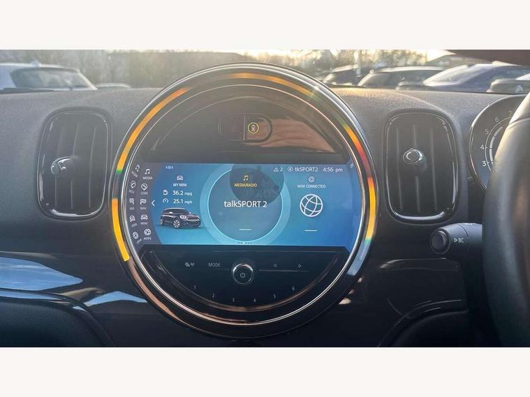 Active Guard incl speed limiting and lane departure functions with auto steering, and front collision warning with brake intervention, Automatic start/stop function with brake energy recuperation, Compatible mobile phone bluetooth with audio streaming, Cruise control with brake assist, Electro-mechanical speed dependant steering assistance, Instrument cluster, Mini E-call, On board computer, Rear parking distance control, 51 Litre fuel tank, Double Vanos system, Fully variable valve control, High precision injection, Performance Control, Steptronic transmission with double clutch, FM tuner and DAB digital radio, 3rd brake light, Body colour fuel filler cap, Day time driving lights, Door sill strips, Dynamic brake lights, Electric windows, Heated rear window, Heated windscreen washer jets, LED fog lights, LED Headlights, Left exhaust tailpipe with chrome finisher, Model logo, Model logo on Tailgate, Radiator grille, Rain sensor with auto headlights, Rear fog lights, Rear side wing doors, Rear window wiper, Side scuttle panel with integrated indicator, Split rear doors, Sun/heat protection glass, White indicator lenses, 12V socket in centre console, 3 seat bench in 2nd row, 3 spoke sport leather steering wheel + limiter function and audio controls, 360L luggage compartment capacity, 4 lashing eyes in luggage compartment, 40:20:40 split folding rear seats, Chrome interior highlights, Colour line - Carbon black, Cupholders, English handbook, Floor mats, Front headrests, Glove compartment, Headliner with grab handles and clothes hooks, Height and length steering column adjustment, Interior lighting with 12 basic colours selectable via toggle switch in roof, Isofix rear child seat preparation, Leather gearshift lever and handbrake gaiters, LED reading lights, vanity mirror lights, front foot well light and spotlight on front seats, Manual air conditioning, Mechanical seat adjustment, driver seat height adjust, forward/back and front seats backrest, Multifunction steering wheel, Passenger seat height adjuster, Rear headrests, Single front passenger seat, Storage compartments in doors, Sunvisors with vanity mirrors, Excitement pack - Countryman, Navigation pack - Countryman, 2 tone horn, 3 point seatbelts on all seats, 6 Airbags - front, side, head and seat belt tensioners, Anti-lock braking system (ABS), DSC - Dynamic Stability Control, Electronic handbrake, Front and rear disc brakes, Hill start assist, Manual rear child locks, Tyre pressure monitoring system, Alarm system with tilt sensor, monitoring doors, bonnet interior and tailgate, Auto drive away locking, Deadlocking function, Electronic vehicle immobiliser, Locking wheel bolts, Start/stop toggle with keyless go, Tool kit,