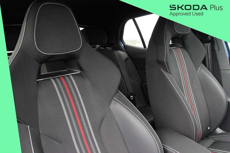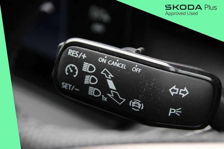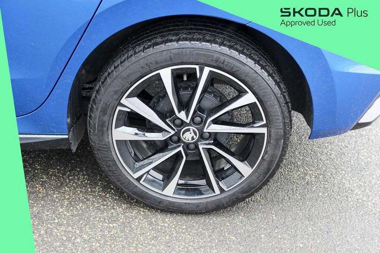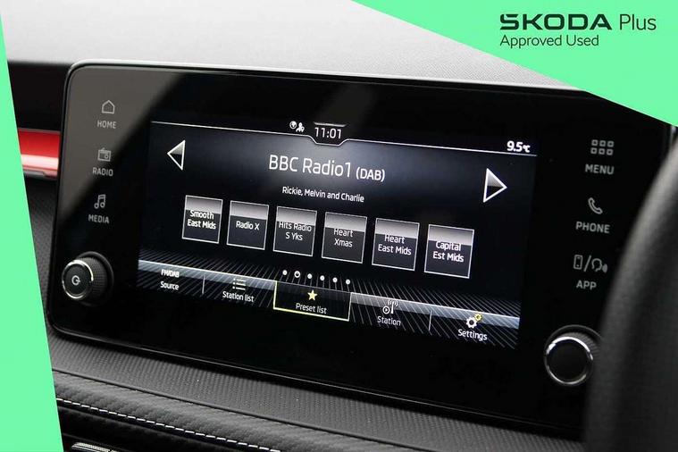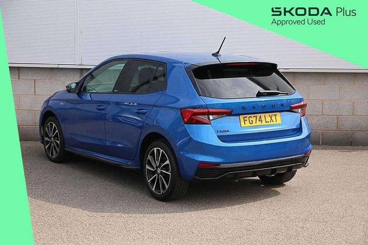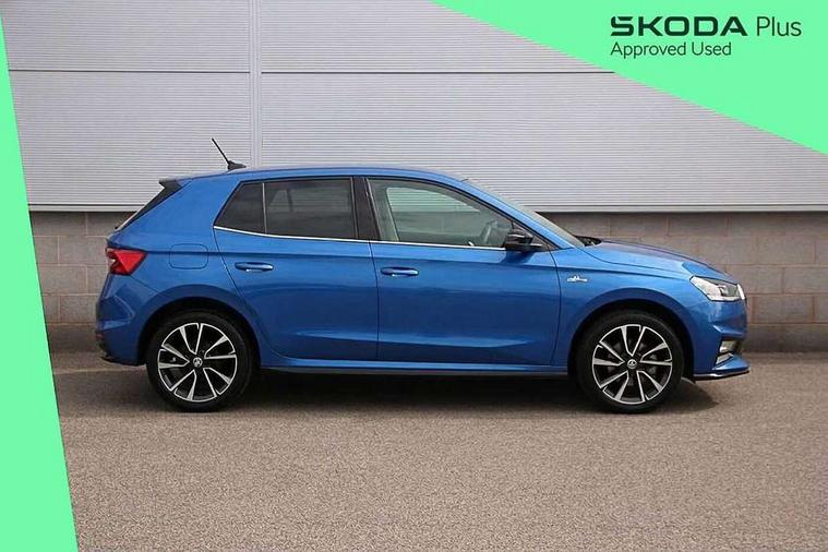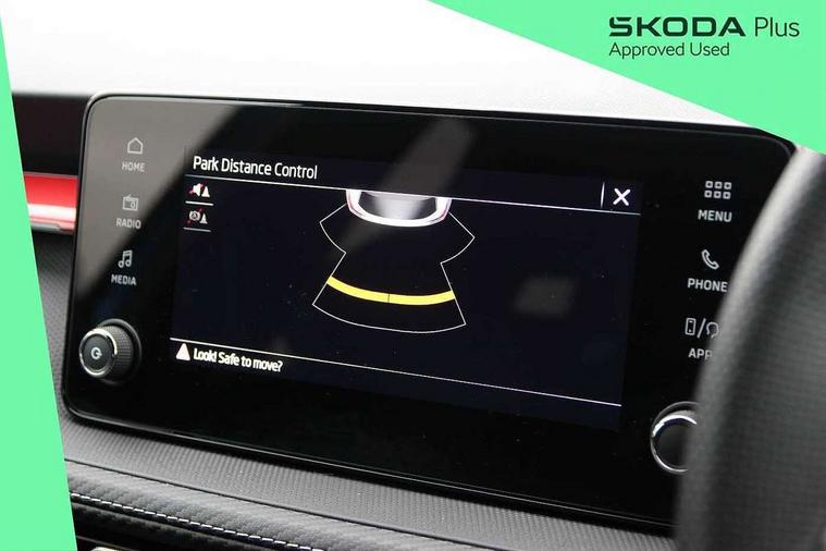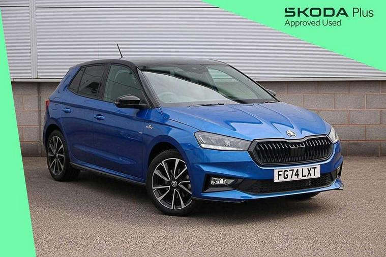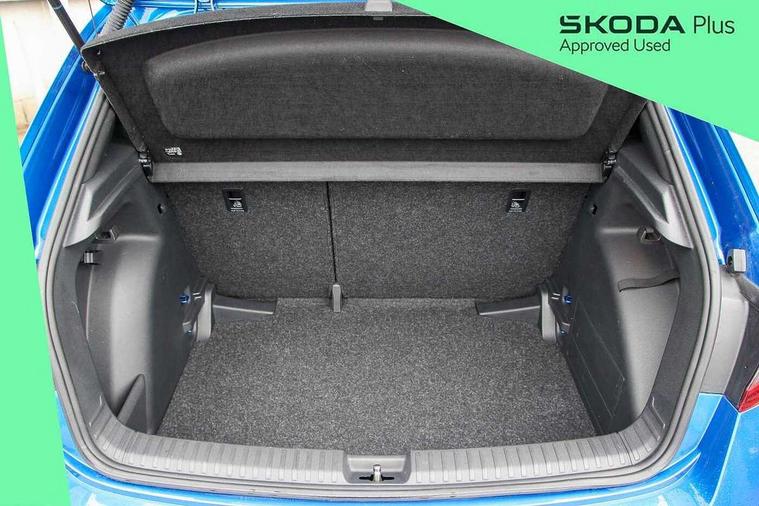 Advanced driver attention and drowsiness monitor, Bluetooth connection, Electromechanical power steering, Exterior temperature gauge, Service interval indicator, Traffic sign recognition, Virtual cockpit with 10.25" colour display, Wireless SmartLink for Apple CarPlay and Android Auto, 6 Speakers (4 in front and 2 in rear), Auxiliary socket for external MP3 player, DAB digital radio reception, Auto dimming rear view mirror, Black radiator grille, Body coloured bumpers, Door mirror integrated indicators, Front and rear electric windows, Front window wiper intermittent control, Headlight range control - Automatic, Ice scraper in fuel cap, LED daytime running lights with coming and leaving home feature, LED rear lights, Monte Carlo badging, Privacy glass, Rear LED fog light, Rear side wing doors, Rear window wiper with washing nozzles, Roof mounted spoiler, SKODA tailgate lettering in black, Sports bumpers, Third brake light, 2 reading lights in front and 2 reading lights in rear, 3 rear headrests, Aluminium pedals, Backrest split and folding, Black headlining, Central console with removable cup holder and storage box, Chrome handbrake release button, Door sills with fabia badging, Dual zone air conditioning with climatronic electronic control, Fabric/artificial leather upholstery, Front centre armrest, Front sports seats, Gearshift knob/handle in leather, Hand brake lever handle in leather, Height adjustable front headrests, Height adjustable front seats, Height adjustable steering wheel, ISOFIX and TopTether anchorage points to the outer rear seats, ISOFIX and TopTether on the front passenger seat, Luggage compartment lighting, Manually adjustable lumbar support in front seats, Metallic painted red central console cover, Metallic red interior door handles, Pollen filter, Rear seat bench unsplit, Single front passenger seat, Sun visors with mirror and airbag label on passenger side, Textile floor mats, Ticket holder, Umbrella in drivers door, 3-point height adjustable front seats belts with pretensioner and force limiter, Automatic warning lights in case of crash, Driver and passengers airbag with switch off function, e-Call+, ESC including ABS, MSR, ASR, EDS, HBA and XDS, Front and rear seat belt warning, FRONT ASSIST (AEB City and AEB Inter Urban), Front side airbags, Head airbags, One tone horn, Pedestrian protection, Three rear 3-points safety seat belts with pretensioner and force limiter including stop function for outer rear seat belts, Tyre pressure monitoring system, Anti-theft alarm system including immobiliser, interior monitoring, backup horn, and towing protection, Central locking with radio remote control, interior controls, SAFE function and 2 foldable keys, Carbon effect door and side trim panels, Carbon effect lower decorative trim with white stitching, Monte carlo air vents, Red metallic upper decorative trim, Anti-theft wheel bolts protection, Super-low rolling resistance tyres,