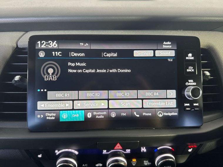Adaptive cruise control, Bluetooth hands free telephone connection, Econ mode, Electric power steering wheel with variable gear ratio steering, Emergency stop signalling system, Forward collision warning, Front and rear parking sensors, Honda CONNECT with HERE Navigation + 9" touchscreen, AM/FM/DAB/Apple Carplay and android auto, Idle stop, Intelligent speed limiter, Lane departure warning system, Lane keep assist system, Low speed following, Multi-information display, Road departure mitigation, Traffic sign recognition, Vehicle stability assist, 'Shark fin' mobile antenna, 2 USB sockets in rear, 2x USB Front socket (1 data & 1 charge), Premium audio with 8 speakers, front tweeter, centre speaker, Remote audio controls on steering wheel, Subwoofer, Aspheric door mirrors, Auto wipers, Automatic headlights with on/off timer, Coming/leaving home function, Body colour door handles, eHEV emblem, Electric adjustable door mirrors, Electrically folding door mirrors, Exclusive styling includes Front and rear bumper, Front fog garnish, Black fender, side sill garnish, Front and rear electric windows, Heated door mirrors, High beam assist, LED daytime running lights, LED front fog lights, LED Headlights, LED rear lights, Privacy glass, Roof rails, Single exhaust tailpipe, 60/40 split rear bench seat, Climate control air conditioning, Driver and front passenger seat armrests, Driver and passenger front seat pockets, Driver's seat height adjustment, Fabric/Water repellent upholstery, Front accessory power socket, Front head restraints, Front map lights, Front/rear courtesy lights, Heated front seats, Isofix child seat restraint mechanism, Isofix points, Leather gearshift knob, Leather steering wheel, Magic seat flexibility system, Paddle shift controls, Plating interior door handles, Rear head restraints, Rear parcel shelf, Sunvisors with vanity mirrors, Tilt/telescopic adjustable steering wheel, Tonneau cover, Trunk light, 3x3 point rear seatbelts, Anti-lock braking system (ABS), Brake assist function, Brake hold function, Collision mitigation braking system, Deflation warning system, Driver knee airbag, Driver SRS airbag (single stage inflation), Driver/Front Passenger airbags, Electric parking brake, Front and rear side curtain airbag, Front side airbags, Hill start assist, Passenger SRS airbag cut-off device, Rear side airbags, Front seat belt with emergency locking retractor, Honda super locks, Immobiliser, Mirrors and windows key fob operation, Remote central locking with 2 remote folding keys, Security alarm, Smart entry + Smart start, Soft pad mesh interior panels, 16" AL Crosstar alloy wheels in mat berlina black, Tyre repair kit,