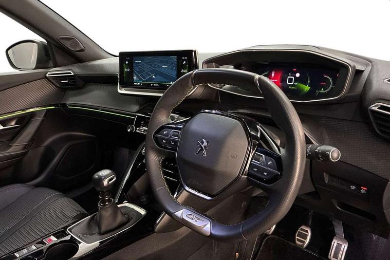 Blind spot monitoring, Bluetooth telephone facility, Connected 3D navigation, Driver attention warning, Exterior temperature indicator with ice warning, Lane keep assist, Mirror screen with mirror link, apple carplay and android auto, Multi function trip computer, PEUGEOT i-Cockpit with 10" capacitive colour touchscreen, PEUGEOT i-Cockpit with compact steering wheel, PEUGEOT i-Cockpit with configurable 3D headup instrument panel, PEUGEOT SOS and assistance, Smart phone docking station, Speed limit recognition and recommendation, Start/stop system, Visio Park 1 with 180 degree Colour reversing camera, 2 front USB socket with USB-C, 2 USB sockets in rear, DAB Radio (Digital Audio Broadcasting), Voice recognition for radio, navigation and telephony features, 2 X Rear number plate lights, Acoustic windscreen, Automatic front windscreen wipers, Automatic hazard light activation upon heavy brake application, Black diamond roof, Black front wing trim with gloss black detail and GT badging, Body coloured exterior door handles, Chrome exhaust tailpipe, Chrome Lion Badge front and rear, Dark tinted rear side and tailgate windows, Diamond black mirror shells, Diamond black rear spoiler (roof), Electric, heated, and power folding door mirrors, Frameless electrochrome interior rear view mirror, Front bumper - Silver lower trim, Full LED headlights with smartbeam assist, Gloss black finish on B pillar, Gloss black longitudinal roof rails, Gloss black rear cluster connecting strip, Gloss black roof bars, Gloss black window surround, GT model designation badging on tailgate, Headlights left on audible warning, LED daytime running lights with 3 claw headlight with distinctive tooth design, LED front fog lamps with remote cornering function, LED side indicator lights integrated into door mirrors, LED third brake light, Model designation badges front and rear, One touch electric front/rear windows with pinch protection, Radiator grille - Dark chrome chequered and gloss black edge trim, Radiator grille - gloss black top edge trim, Rear full LED 3D peugeot signature claw effect lights with daylight function, Rear reversing lights, Rear side wing doors, Rear windscreen wiper triggered automatically in reverse gear, Stainless steel door sill scuff plates, Tailgate with heated rear windscreen and wiper blade, Trailer Stability Programme, Variable front intermittent wipers, Welcome lighting, Wheel arch extensions, 1/3 to 2/3 split folding rear seats, 12v power outlet - front, 12V socket, 3 seat bench in 2nd row, 8 Colour personalisable ambient lighting, Aluminium pedals, Automatic air conditioning with pollen and active carbon filter, Central front armrest with storage compartment, Driver and front passenger sport seats, Electric power steering with reach and rake adjustable steering column, Front and rear carpet mats in black with lime green stitch detail, Front centre armrest, Front LED interior light with 2 reading spotlights and rear interior light with timer, Front passenger seat manual adjustment - height, longitudinal and back rest angle, Gear lever top - manual in full grain leather, Gear shift indicator, Heated front seats, High centre console, ISOFIX child seat mounting points on passenger seat, Lime green contrast stitching to front centre console, door panels and dashboard facia, Mistral full-grain perforated leather steering wheel with Lime Green stitch detail and satin chrome 'GT' emblem, Modular boot floor, Multifunction steering wheel, Piano keys: Gloss black and chrome toggle switches to access main functions of the vehicle and touchscreen functions, Roof lining - Mistral black, Seatbelt unfastened on the move audible and visual alert for front and rear seats, Single front passenger seat, Switch for Push Button Start finished in black with chrome surround, Visibility pack - 2008, 2x 2nd row ISOFIX child seat mountings, ABS (Anti-lock Braking System) with EBD (Electronic Brakeforce Distribution) and EBA (Emergency Braking Assistance), Acoustic vehicle alerting system, Active safety brake with night function/cyclists/pedestrians, Adaptive driver and front passenger airbags with passenger airbag deactivation function, Child locking functionality on rear doors, Driver/front passenger side airbags, Electric parking brake, ESP (Electronic Stability Program) + Hill Start Assist, Front and rear curtain airbags, Front and rear disc brakes, Front and rear three-point retractable seatbelts, with force limiters, Front optimised safety headrests and rear retractable headrests (x3), height adjustable, Tyre pressure sensor, Alarm system with anti-lift sensor, Automatic door locking when moving off, Deadlocks, Electronic code immobiliser, Exterior door lock x1 (Left-hand or passenger’s side), Remote central locking, Carbon effect Dashboard, front and rear door panel finish, 17" Salamanca diamond cut alloy wheels,