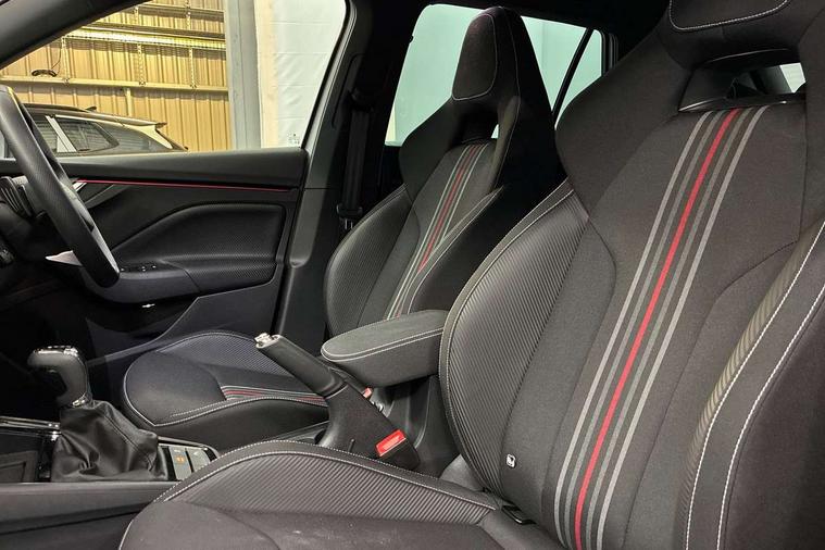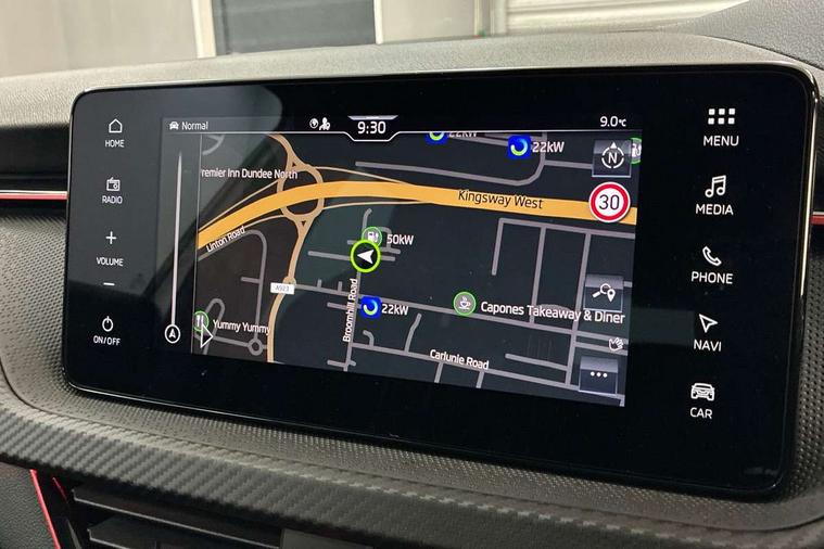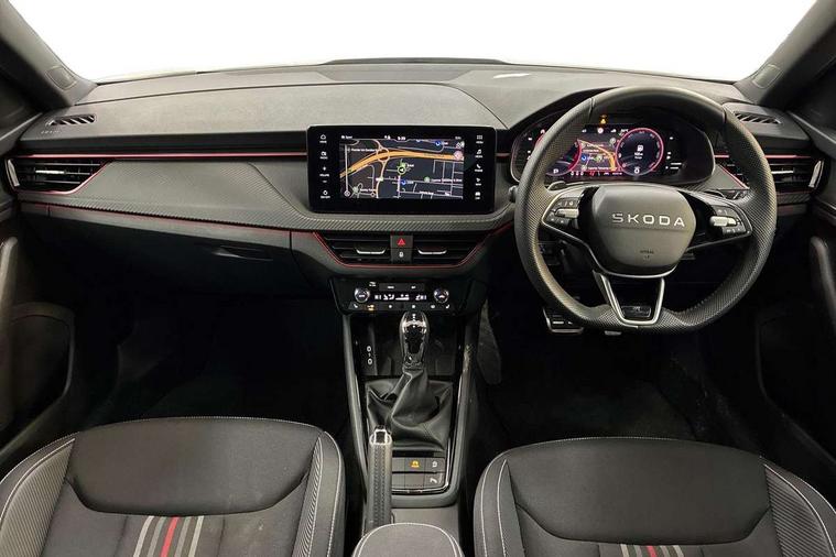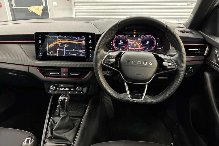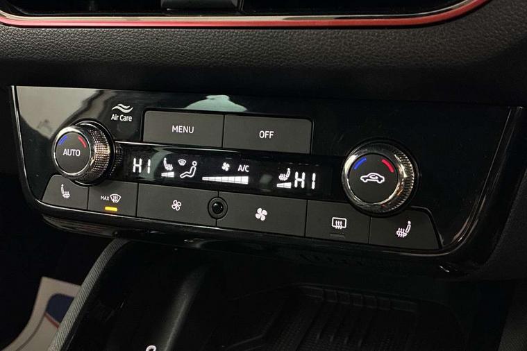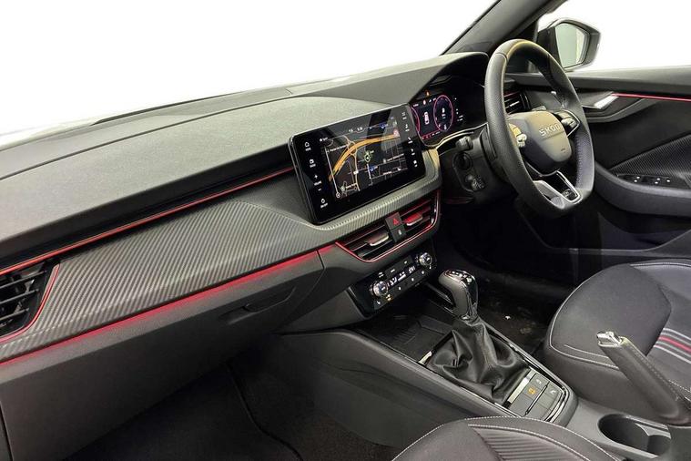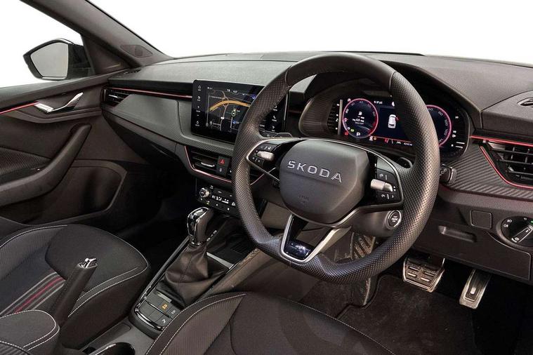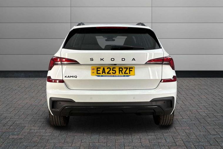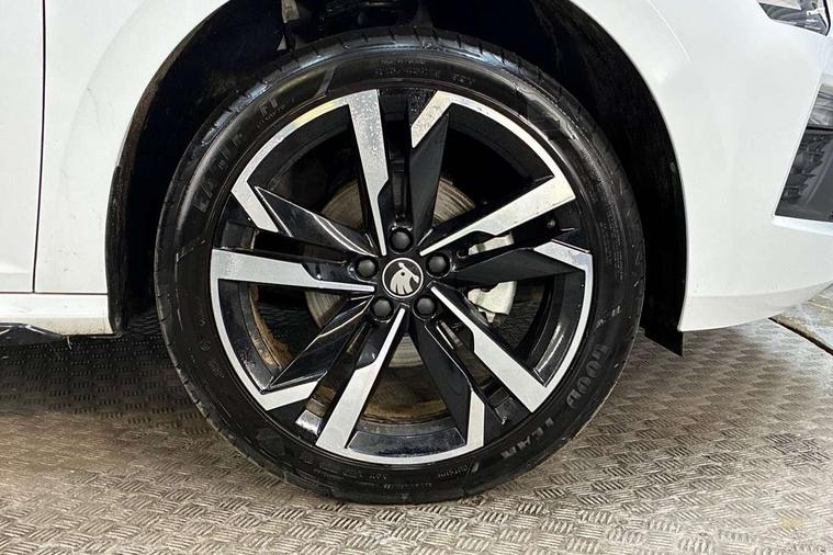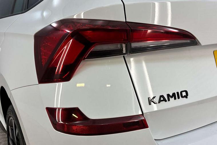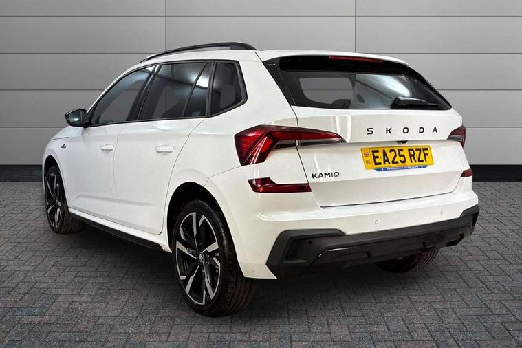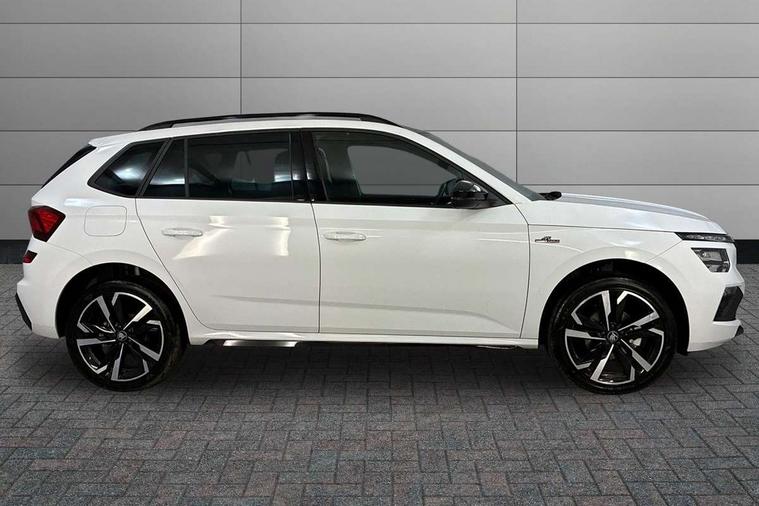 Advanced driver attention and drowsiness monitor, Bluetooth system, E-call, Front assist system, PAS, Rear parking sensors, Rear view camera, Service indicator, Speed limiter, Traffic sign recognition, Virtual cockpit with 10.25" display, Voice control system, Wireless smartlink, 4 USB C ports, 8 Speakers, 9.2" Skoda navigation display, DAB Digital radio, Auto dimming rear view mirror, Automatic headlight control with coming home and leaving home feature, Black door mirrors, Black radiator grille, Black rear diffuser, Black roof spoiler, Body colour bumpers, Body colour door handles, Boot lettering in black, Extended tailgate glass, Fixed panoramic sunroof with black roof rails, Front and rear electric windows, Heated rear window, LED daytime running lights, LED high beam, LED low beam, LED third brake light, Light sensors, Monte carlo plaque, Privacy glass, Rear side wing doors, Rear wiper, Ticket holder inside windscreen, 12V socket in luggage compartment, 3 seat bench in 2nd row, Aluminium pedals, Ambient lighting in white/red, Art leather carbon decor inserts, Art leather carbon door inserts, Black roof lining, Cargo elements, Chrome inner door handles, Driver and passenger sun visors with vanity mirror, Dual zone climate control, Front and rear roof lights, Front centre armrest, Front head restraints, Glove compartment with illumination, Height adjustable driver seat, Height adjustable front passenger seat, Ice scraper, Inner circulation control with pollen filter, ISOFIX on front passenger seat, Isofix preparation for back seats, Leather gearknob and handbrake lever, Manual lumbar support for front seats, Monte Carlo cloth upholstery, Net package and top tether hooks in boot space, Net under rear shelf, Pocket on the back of both front seats include mobile phone pockets, Rake/reach adjustable steering wheel, Reading lights, Rear centre armrests, Red hotstamping, Single front passenger seat, Sports seats, Textile floor mats, Third rear headrest, Top tether for front passenger seat, Umbrella in driver's door, Light and view plus package - Kamiq, 3x3 point rear seatbelts, Airbags - driver and front passenger, Disc brakes, ESP, Extended and predictive pedestrian/cyclist protection, Front passenger airbag deactivation switch, Front side airbags with curtain airbags, Hill hold control, Manual leather parking brake, Manual rear child locks, One tone horn, Seatbelt reminder for driver an co-driver, Traction control, Tyre pressure monitor, Anti-theft alarm system with interior monitoring, backup horn, towing protection and remote central locking with SAFE system, Anti-theft wheel bolts, Electronic engine immobilizer, 18" Ursa black diamond cut alloy wheels,