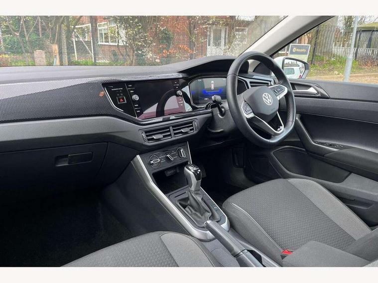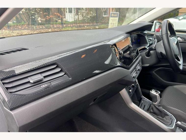 Adaptive cruise control with follow-to-stop and speed limiter, Advanced driver attention and drowsiness monitor, Bluetooth mobile phone interface, Dynamic road sign display, Emergency call service, Power assisted speed sensitive steering, Preparation for navigation system with media and internet package, Preparation for We connect and We connect plus, Speedo and rev counter, electronic odometer, trip, service interval display and exterior temperature gauge, Standard rear axle, Travel Assist - Lane keeping system and traffic jam assist, Travel assist including emergency assist, Trip computer, Warning signal and warning light for front and rear seatbelts not fastened, Washer fluid level indicator, Wireless app connect, Front wheel drive, Rear shock absorpion, Start-stop system with battery regeneration (recuperation - energy recovery during braking), DAB Digital radio, Diversity antenna for FM reception, Front and rear 6 speakers, Automatic dimming interior rear view mirror, Automatic headlight control with LED separate daytime running lights with coming/leaving home function, Body colour bumpers with chrome inserts, Body colour door handles, Body colour door mirrors, Electric front windows, Engine badge deletion, Headlight range adjustment, Heat insulating and laminated safety glass windshield, Heat insulating darkened glass in side and rear windows, Heat insulating glass windscreen, LED Headlights, LED rear combination lamps, Power folding adjustable/heated exterior mirrors and front passenger exterior mirror lowering function, Rain sensor, Rear electric windows, Rear fog light, Rear side wing doors, Rear windscreen washer and wiper with interval delay, Third brake light, 12V power socket in centre console, 2 front and 2 rear reading lights with switch off delay and dimmer, 2 USB-C ports in the front, 2 USB-C charging sockets on the center console in the rear, 3 rear head restraints, 60/40 split folding rear seat and rear seat bench not split, Ceramique roof lining, Chrome plated radiator grille inserts, air vent surrounds and light switch surrounds, Door and side trim panel, Driver and front passenger seat height adjustment, Driver/passenger sunvisors with illuminated vanity mirrors, Front centre armrest, Front seat backrest storage pockets, Front standard seats, Handbrake lever handle in leather, Hartley/Thomas cloth upholstery, Headliner in recycled material, Isofix child seat preparation easy-fit (for two outer rear seats, and front passenger seat) compatible with I-size, Leather trimmed gear knob, Luggage compartment cover, Luggage compartment lighting, Removable luggage compartment floor, Single front passenger seat, Standard climatic zones, Standard pedal cluster, Three spoke leather wrapped multifunction steering wheel with shifting paddles, Light and vision pack - Polo, 3 point height adj front seatbelts + pretensioners, 3x3 point rear seatbelts, ABS, Driver and front passenger airbag with front passenger airbag deactivation, Drivers and front passengers safety optimised head restraints, ESC (Electronic stability control) + EDL (Electronic Differntial lock) and ASR (Traction control), Extended and predictive pedestrian/ cyclist protection, Front assist with autonomous emergency braking (for Adaptive Cruise Control ACC up to 130 mph), Front curtain and side airbags with center airbag, Front disc brakes, Hill hold control, Manual child lock in rear doors, Rear drum brakes, Single tone horn, Tyre pressure loss indicator, Alarm with interior protection, Anti-theft alarm system with interior monitoring, backup horn, and towing protection, Anti-theft wheel bolts, Electronic engine immobiliser, Lava stone black gloss/matt decorative inserts in dash and front door panels, Low rolling resistance tyres,