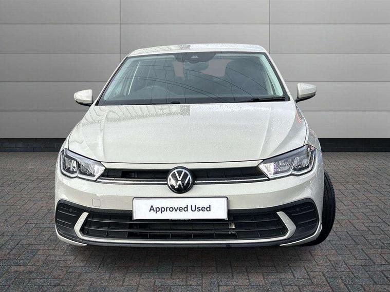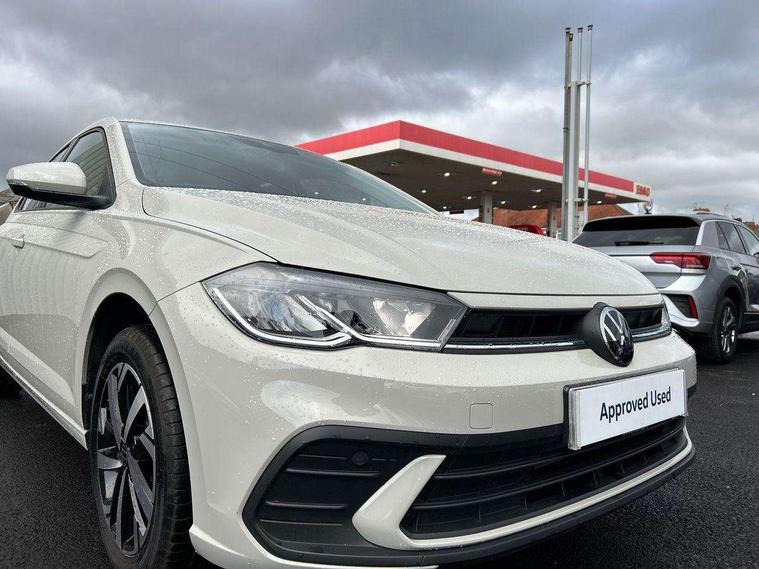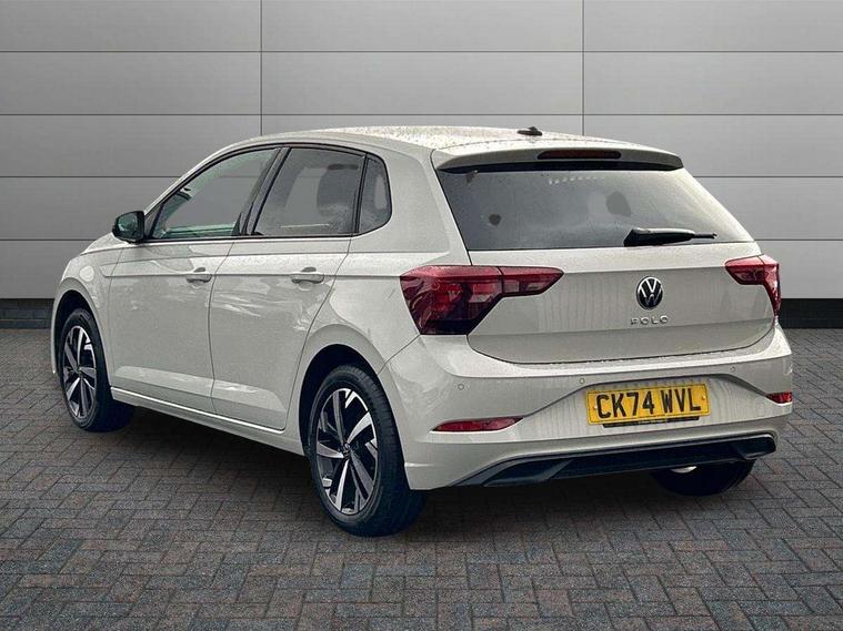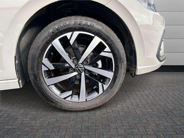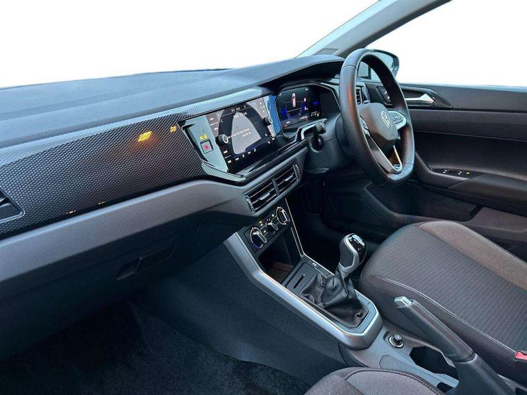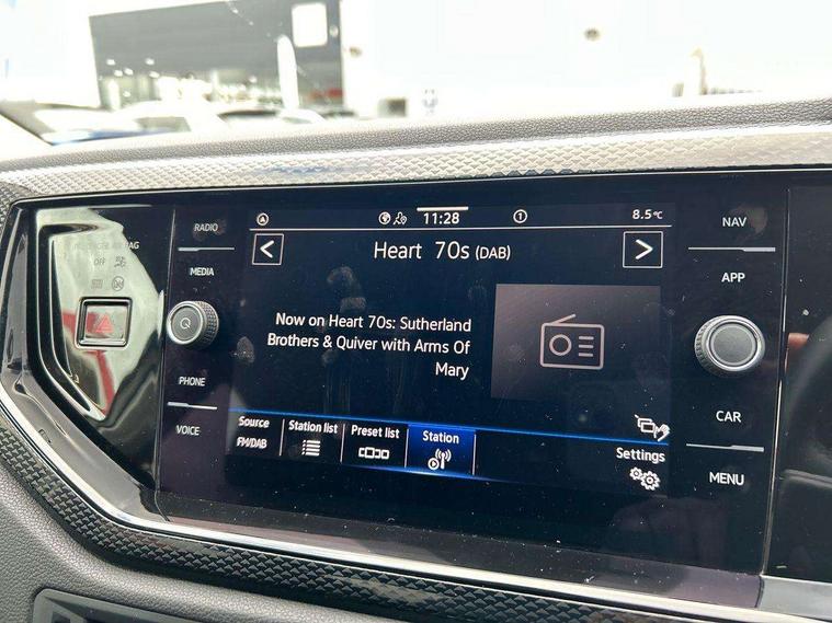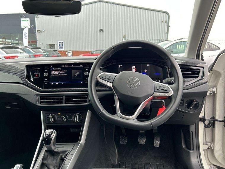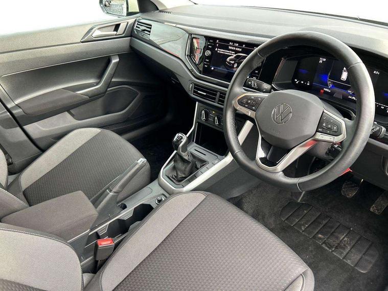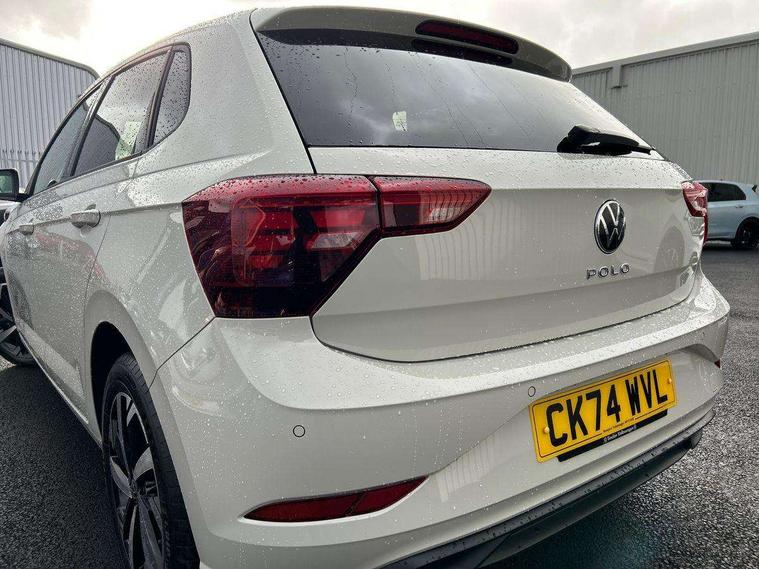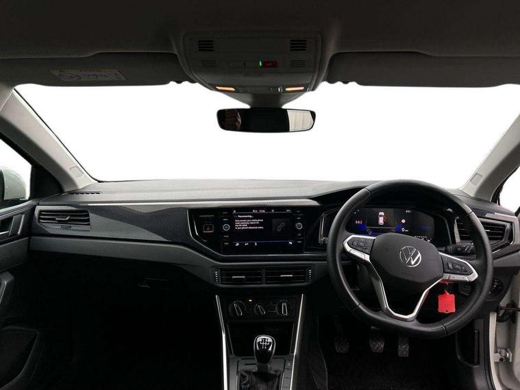 Adaptive cruise control without follow-to-stop and speed limiter, Advanced driver attention and drowsiness monitor, Bluetooth mobile phone interface, Dynamic road sign display, Emergency call service, Multifunction front facing camera for distance control, Park distance control, Power assisted speed sensitive steering, Preparation for navigation system with media and internet package, Preparation for We connect and We connect plus, Rear view camera, Speedo and rev counter, electronic odometer, trip, service interval display and exterior temperature gauge, Standard rear axle, Travel Assist - Lane keeping system and traffic jam assist, Travel assist including emergency assist, Trip computer, Warning signal and warning light for front and rear seatbelts not fastened, Washer fluid level indicator, Wireless app connect, Front wheel drive, Rear shock absorpion, Start-stop system with battery regeneration (recuperation - energy recovery during braking), DAB Digital radio, Diversity antenna for FM reception, Front and rear 6 speakers, Automatic dimming interior rear view mirror, Automatic headlight control with LED separate daytime running lights with coming/leaving home function, Body colour bumpers with chrome inserts, Body colour door handles, Body colour door mirrors, Electric front windows, Engine badge deletion, Headlight range adjustment, Heat insulating and laminated safety glass windshield, LED Headlights, LED rear combination lamps, Power folding adjustable/heated exterior mirrors and front passenger exterior mirror lowering function, Rain sensor, Rear electric windows, Rear fog light, Rear side wing doors, Rear tinted glass from B-pillar backwards approx 65% tinted, Rear windscreen washer and wiper with interval delay, Third brake light, 12V power socket in centre console, 2 front and 2 rear reading lights with switch off delay and dimmer, 2 USB-C ports in the front, 2 USB-C charging sockets on the center console in the rear, 3 rear head restraints, 60/40 split folding rear seat and rear seat bench not split, Ceramique roof lining, Chrome plated radiator grille inserts, air vent surrounds and light switch surrounds, Door and side trim panel, Driver and front passenger seat height adjustment, Driver/passenger sunvisors with illuminated vanity mirrors, Front centre armrest, Front seat backrest storage pockets, Front standard seats, Handbrake lever handle in leather, Hartley/Thomas cloth upholstery, Headliner in recycled material, Isofix child seat preparation easy-fit (for two outer rear seats, and front passenger seat) compatible with I-size, Leather trimmed gear knob, Luggage compartment cover, Luggage compartment lighting, Removable luggage compartment floor, Single front passenger seat, Standard climatic zones, Standard pedal cluster, Three spoke leather wrapped multifunction steering wheel, Light and vision pack - Polo, 3 point height adj front seatbelts + pretensioners, 3 point seat belt for centre rear seat, 3 point seatbelts, outer rear with ECE lable, ABS, Driver and front passenger airbag with front passenger airbag deactivation, Drivers and front passengers safety optimised head restraints, ESC (Electronic stability control) + EDL (Electronic Differntial lock) and ASR (Traction control), Extended and predictive pedestrian/ cyclist protection, Front assist with autonomous emergency braking (for Adaptive Cruise Control ACC up to 130 mph), Front curtain and side airbags with center airbag, Front disc brakes, Hill hold control, Manual child lock in rear doors, Rear drum brakes, Single tone horn, Tyre pressure loss indicator, Alarm with interior protection, Anti-theft alarm system with interior monitoring, backup horn, and towing protection, Anti-theft wheel bolts, Electronic engine immobiliser, Lava stone black gloss/matt decorative inserts in dash and front door panels, 16" Torsby alloy wheels, Low rolling resistance tyres,