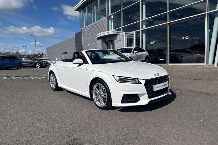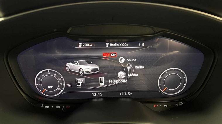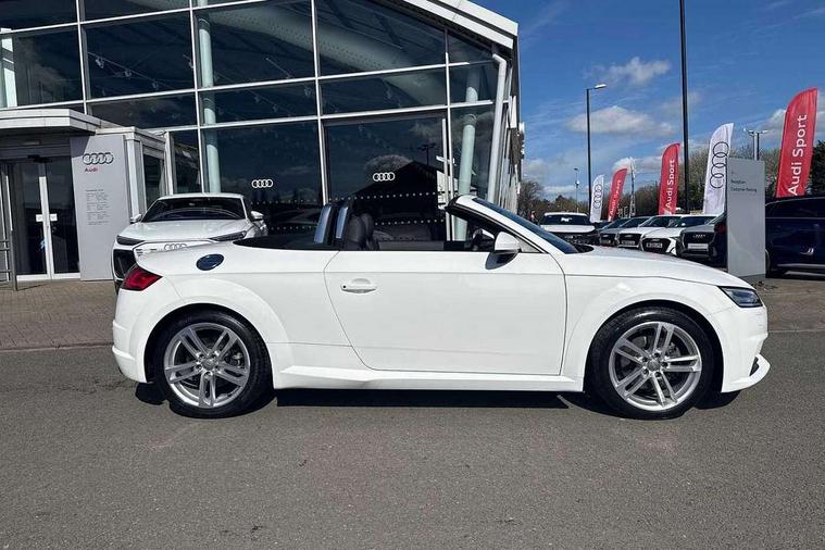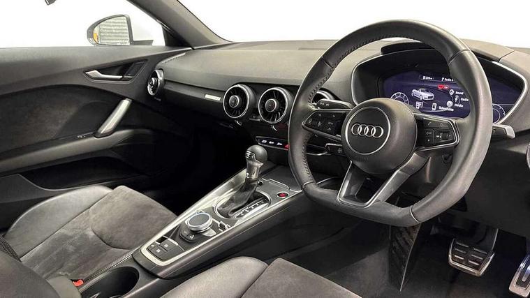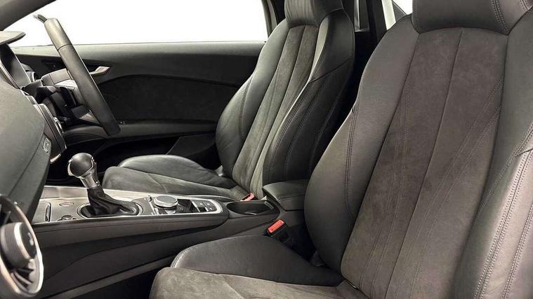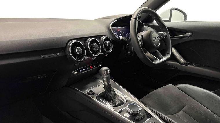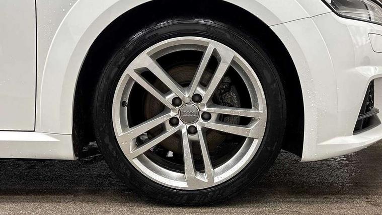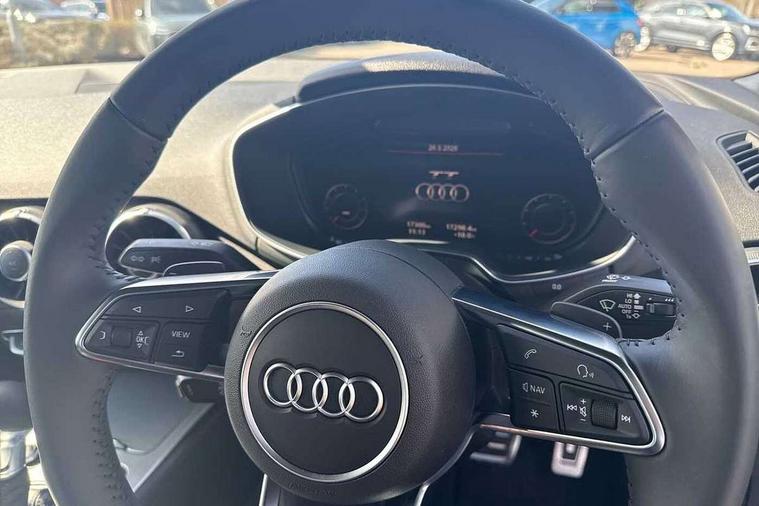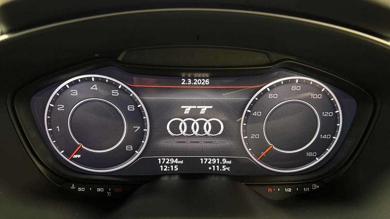 Audi drive select with 4 Pre configured modes, Audi smartphone interface, Audi virtual cockpit - 12.3" high-resolution LCD display with fully customisable instrument cluster, Cruise control + speed limiter, MMI touch panel, Mobile phone preparation with bluetooth interface, Progressive power assisted steering, Seat belt microphone, Service interval indicator, Start/Stop system with energy recuperation, TP memo, Sports suspension, AM/FM radio, Bluetooth audio streaming, DAB Digital radio, MMI Radio with CD player and SD/XC card slot, Auto dimming rear view mirror, Body colour bumpers, Body colour electrically adjustable and heated door mirrors with built in LED side indicators, Electric folding door mirrors, Electric front windows, Front fog lights, Fully automatic acoustic hood, Green tinted heat insulating glass, Light and rain sensors, Retractable rear boot spoiler, Sunband for windscreen, Xenon headlights with LED daytime running lights with automatic headline range control + LED rear lights, brake lights and rear indicators, 12V socket, 3 spoke flat bottomed high multi-function leather sport steering wheel with gearshift paddles, Air conditioning, Alcantara/Leather upholstery includes seat centre panels, door trim inserts in black Alcantara with side bolsters, head restraints in black leather, Aluminium door sill trims, Front centre armrest, Front sports seats, Heated front seats, Height adjustable driver's seat, Height adjustable front head restraints, Height/reach adjust steering wheel, ISOFIX child seat mounting for front passenger seat with airbag deactivation, Reading lights, Non smoking pack - TT/TT RS, 3 point front seat belts, ABS, ASR traction control, Brake energy regeneration, Curtain airbags, Driver and front passenger airbag with front passenger airbag deactivation, EDL traction control, Electromechanical parking brake, ESP, First aid kit, Front side airbags, Hill hold assist, Roll over bars, Seatbelt warning, Tyre pressure warning, Warning triangle, Anti theft alarm, Anti theft wheel bolts, Immobiliser, Keyless Go, Remote central locking, Aluminium design inlays, Tool kit, Tyre repair kit,