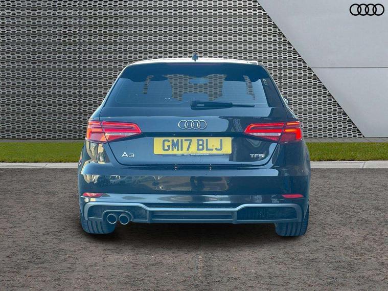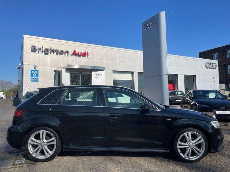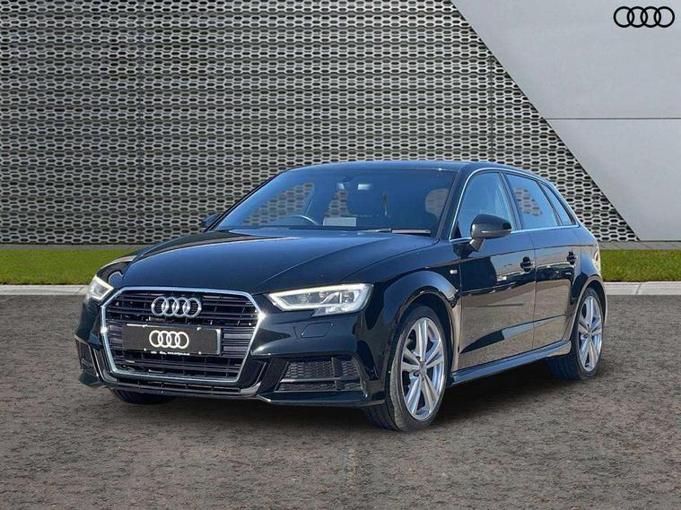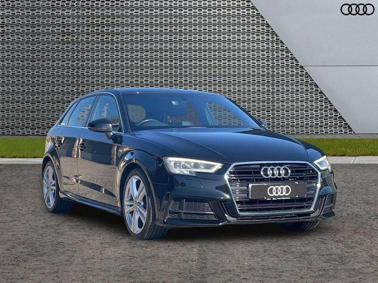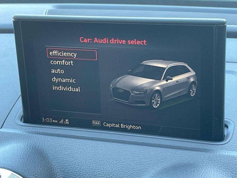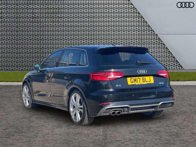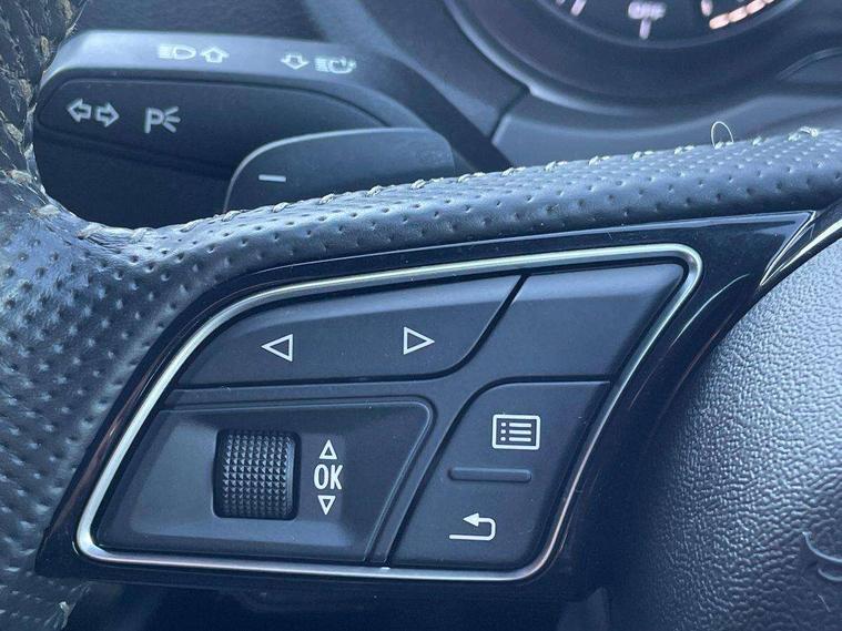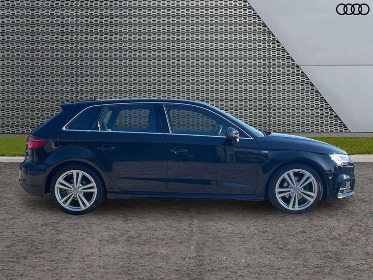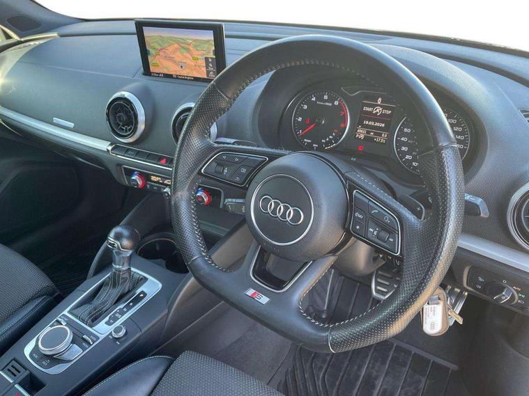 Audi connect, Audi drive select, Audi smartphone interface, Colour driver's information system display, Mobile telephone preparation - bluetooth interface, Service interval indicator, Speed limit display, Voice control system, 2 USB ports, Audi music interface, Auxiliary input socket, DAB Digital radio, Aluminium window trim, Body colour bumpers, Body colour door mirrors with integral indicators, Body colour roof spoiler, Chrome exhaust tailpipes, Electric front windows, Electric operated/heated door mirrors, Electric rear windows, Heated windscreen washer jets, LED daytime running lights, Matt black radiator grille, Rear wiper, S Line body styling, Sport specific side air inlet grille and diffuser insert, 3 adjustable rear headrests, 3 spoke flat bottomed multi-function leather steering wheel, 4 lashing points to secure luggage, Adjustable front armrest, Black cloth headlining, Dual zone electronic climate control, Front and rear interior lights with delay, Front passenger seat isofix location point, Front/rear floor mats, Height/depth adjustable steering column, Illuminated door sills, Illuminated glovebox, ISOFIX child seat preparation+airbag deactivation, Jack and tool kit, Stainless steel pedals, Steering wheel gearshift paddles, Storage compartment in centre console, Storage compartment under front seats, Storage compartments in doors, LED interior light pack - A3/RS3, Light and rain sensor pack - A3 Hatchback/Sportback, Storage and luggage pack - A3/RS3, 3 point seatbelts on all seats, ABS/EBD, Active bonnet, Active front headrests, ASR, Curtain airbags, Driver and passenger side airbags, Driver/Front Passenger airbags, Drivers knee airbag, EDL, Electromechanical parking brake, ESC - Electronic Stability Control + traction control, Front passenger airbag deactivation, Manual rear child locks, Multi-Collision braking, Seatbelt warning, Tyre pressure monitor, Warning triangle and first aid kit, Anti theft alarm, Anti-theft wheel bolts, Remote control central locking, Thatcham category 1 alarm + immobiliser, Aluminium air vent surrounds, Aluminium trim elements, Space saver spare wheel,